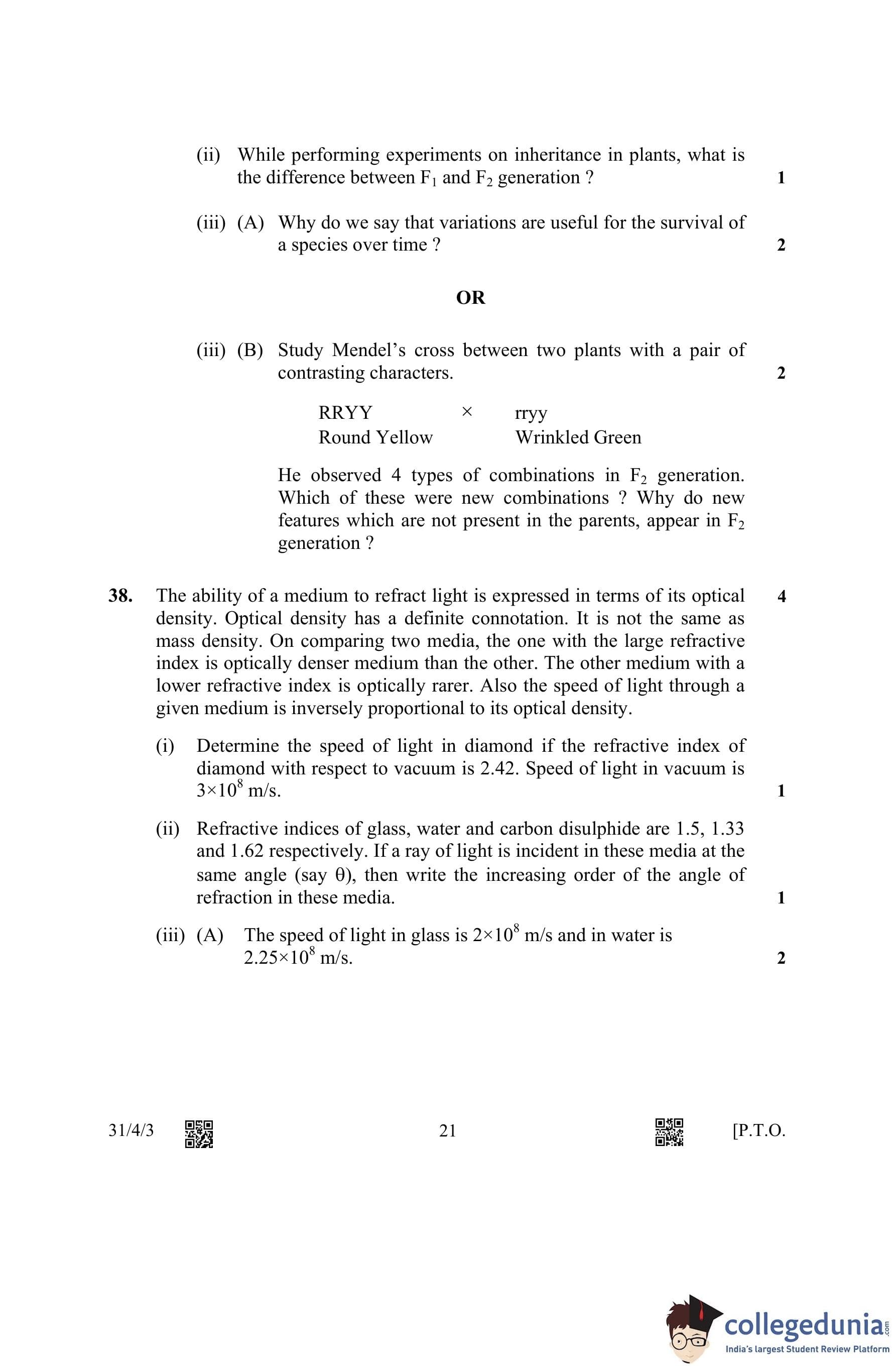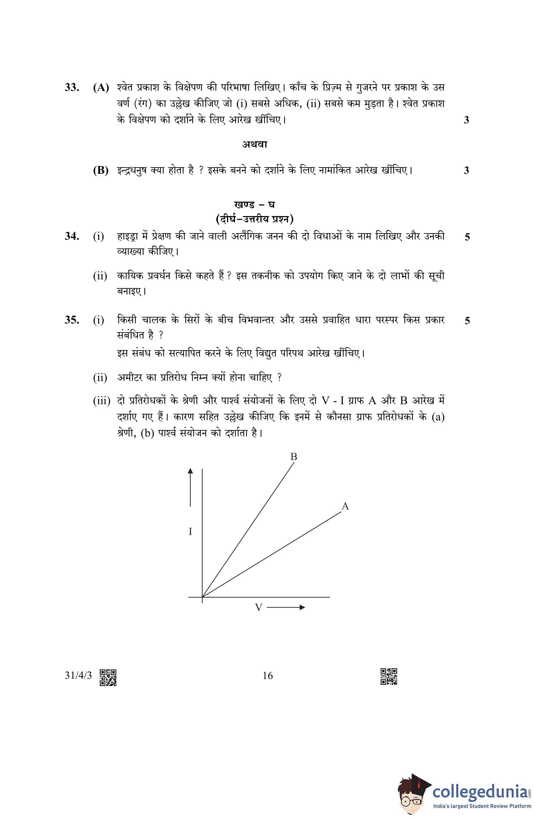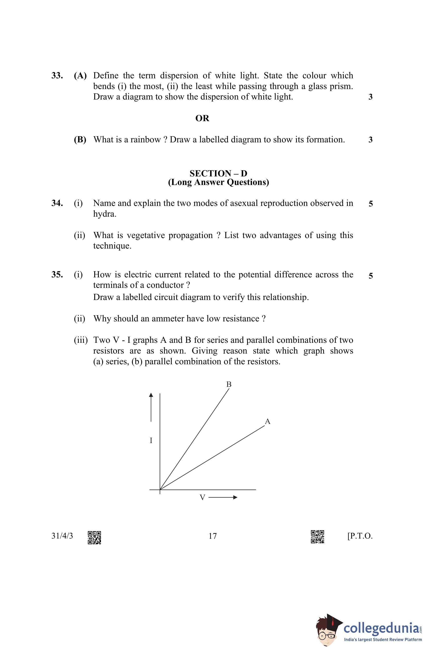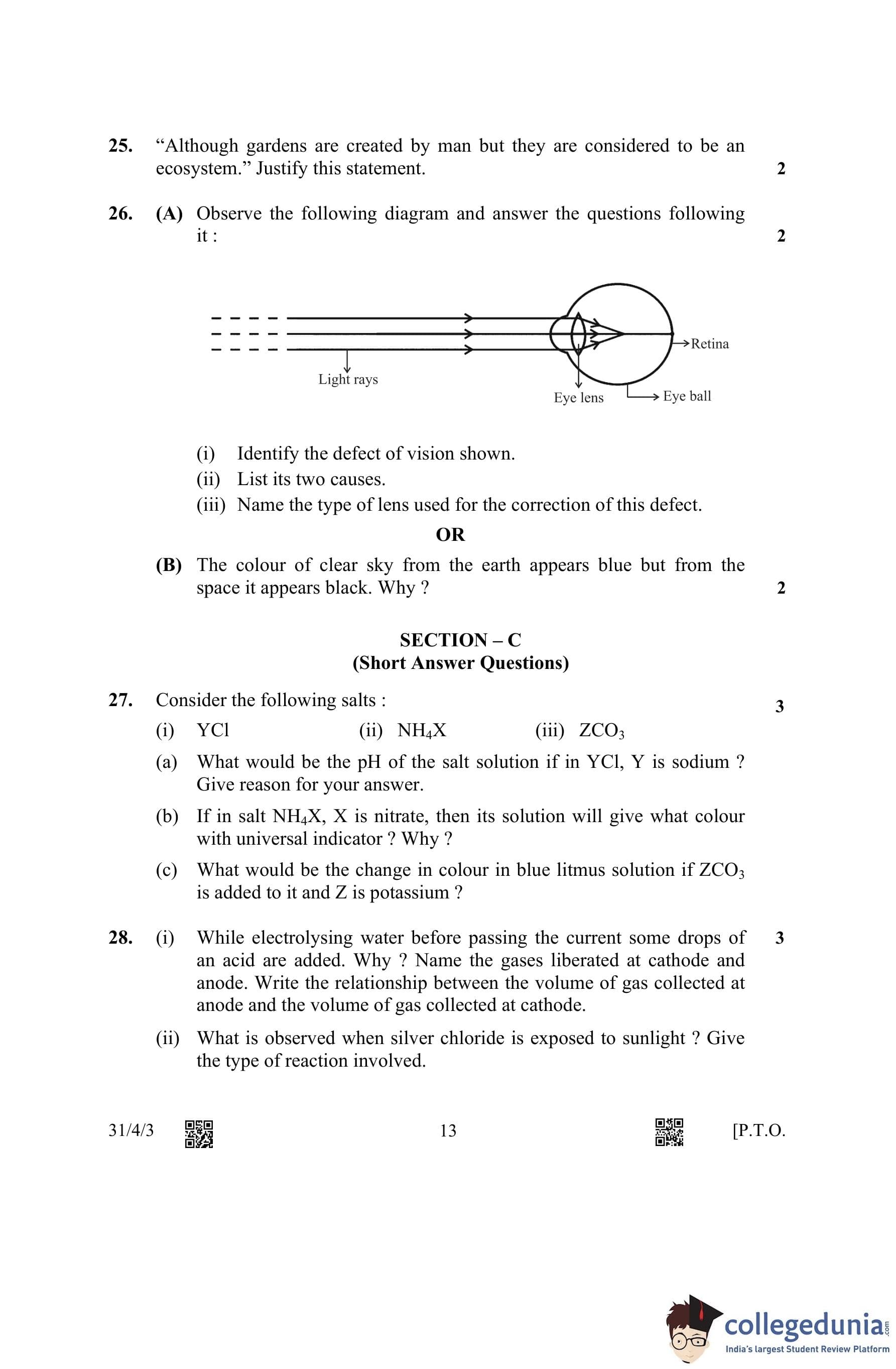 CBSE Class 10 Science (Set 3- 31/4/3) Question Paper 2023 with Answer Key