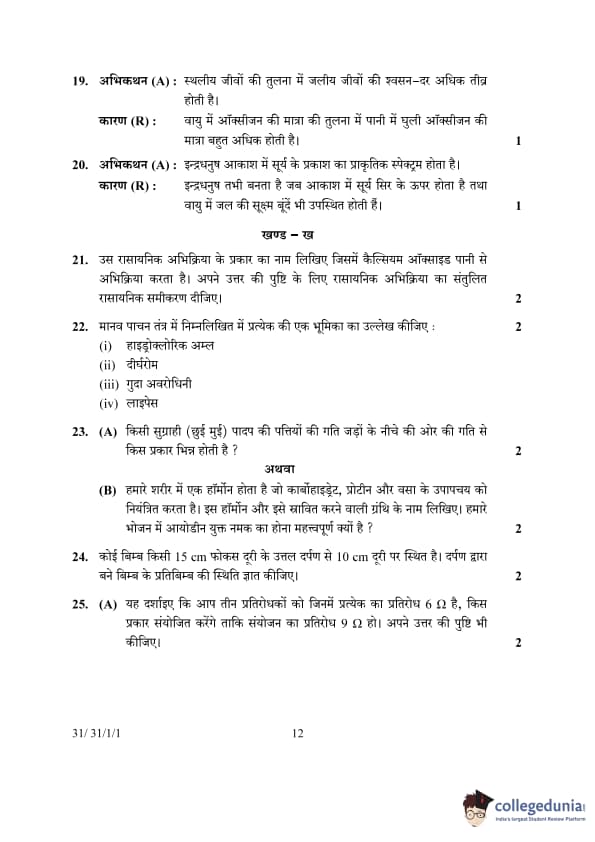 | CBSE Class 10 Science Question Paper 2024 (Set 1 - 31/1/1) with Answer Key | Check Solutions |