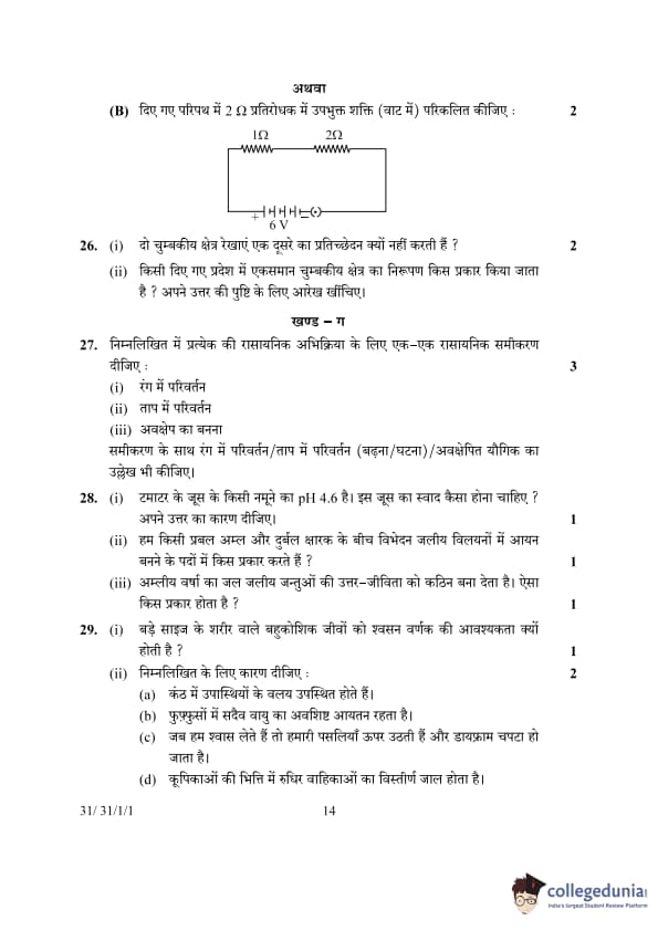 CBSE Science Question Paper (Set 1 – 31/1/1) 2024 Solution