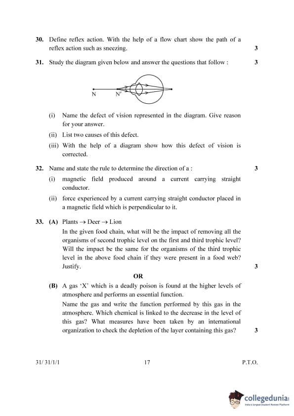 | 33. (A) Plants – Deer – Lion In the given food chain, what will be the impact of removing all the organisms of the second trophic level on the first and third trophic levels? Will the impact be the same for the organisms of the third trophic level in a food web? Justify. |