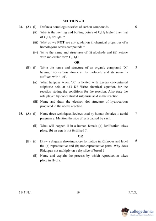 | 34.(A)(ii) Why do we NOT see any gradation in chemical properties of homologous series compounds? | Because the chemical properties are determined by the functional group, which remains constant in a homologous series. | The chemical properties of compounds in a homologous series do not show gradation because they all contain the same functional group. This functional group dictates the chemical reactivity and behavior of the compounds, ensuring that despite differences in molecular size or the number of -CH₂- groups, their chemical properties remain similar. | ||||||||||||||||