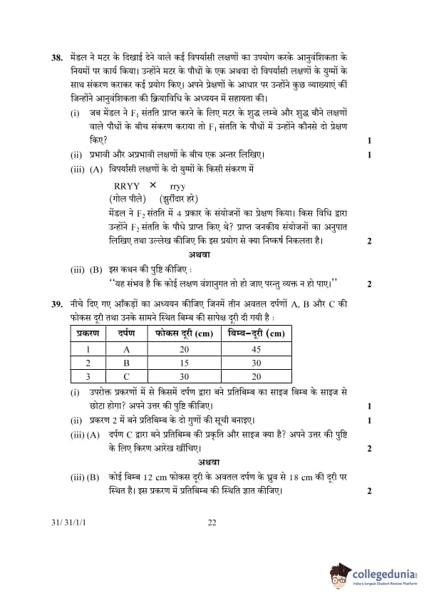 | 38. (B) Justify the statement: "It is possible that a trait is inherited but may not be expressed." | A recessive trait may be inherited but not expressed if the individual has a dominant allele. | A trait can be inherited but not expressed if it is recessive and the individual possesses a dominant allele for that trait. In heterozygous conditions, the dominant trait masks the recessive trait, making it unexpressed but still inheritable. | ||||||||||||||||