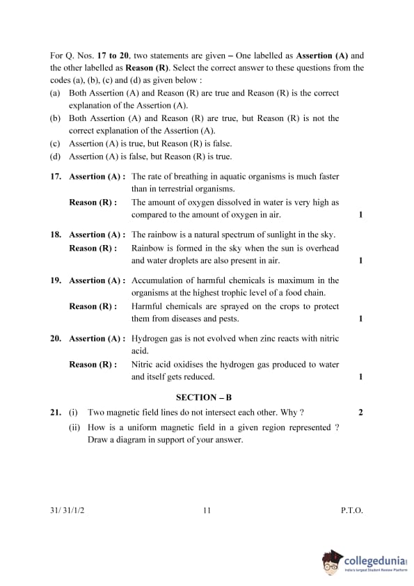 17. Assertion (A): The rate of breathing in aquatic organisms is much faster than in terrestrial organisms.