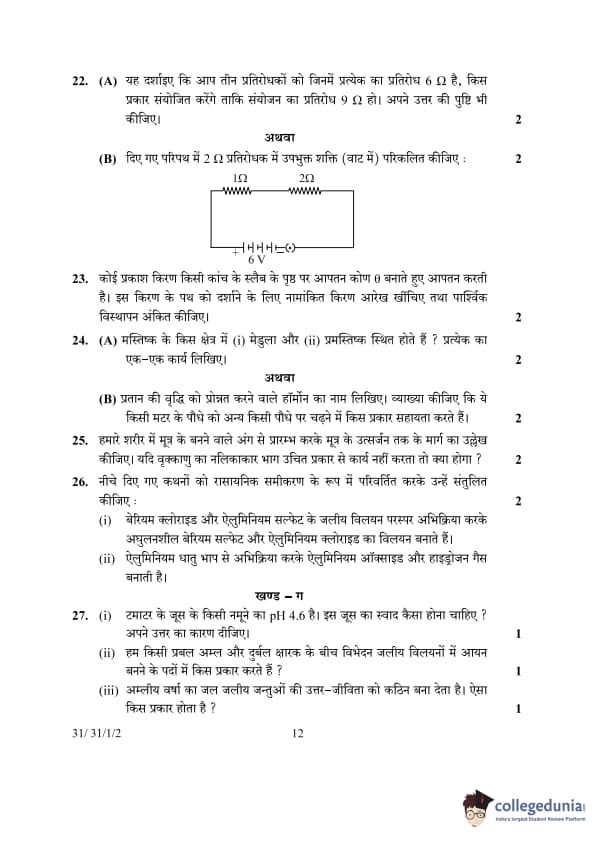 | CBSE Class 10 Science Question Paper 2024 (Set 2 - 31/1/2) with Answer Key | Check Solutions |
