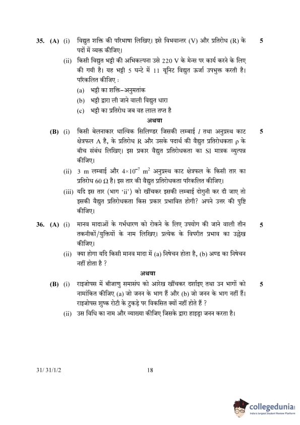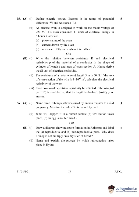 | 35. (A) (i) Define electric power. Express it in terms of potential difference (V) and resistance (R). (ii) An electric oven is designed to work on the mains voltage of 220 V. This oven consumes 11 units of electrical energy in 5 hours. Calculate: (a) Power rating of the oven. (b) Current drawn by the oven. (c) Resistance of the oven when it is red hot. |