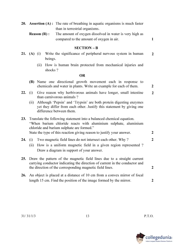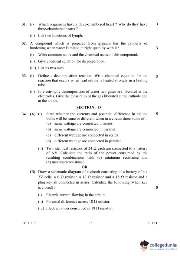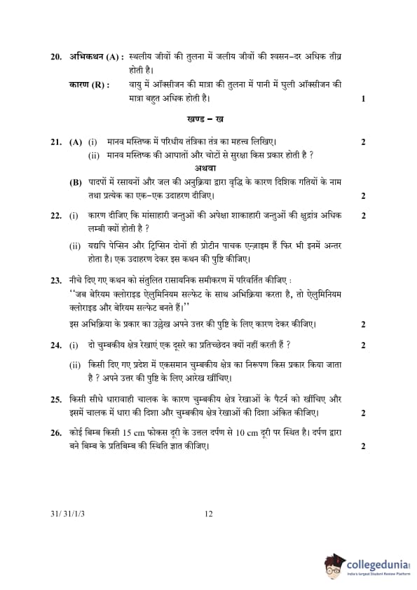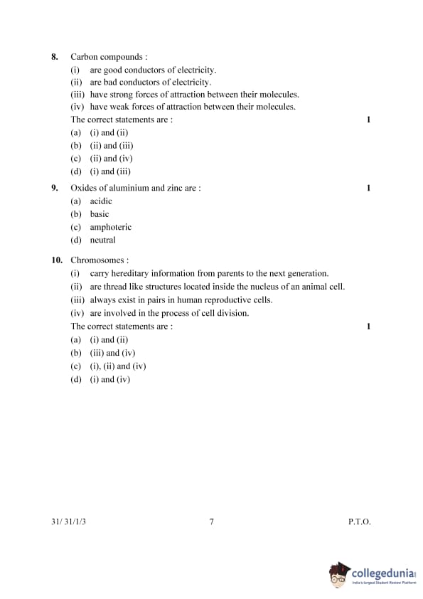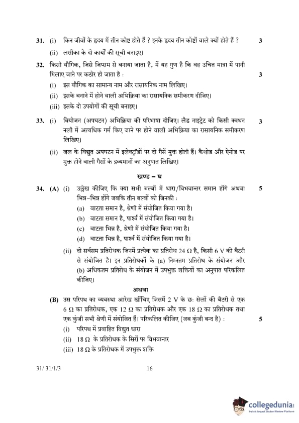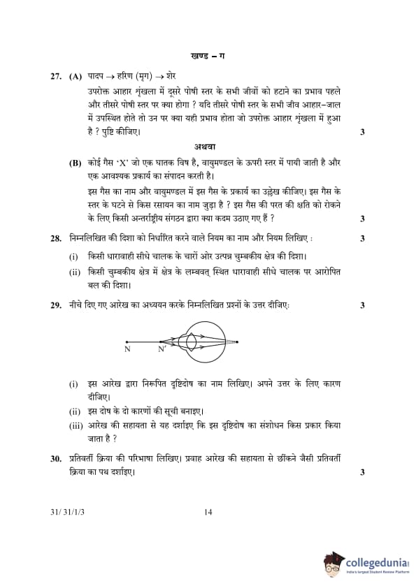 | CBSE Class 10 Science Question Paper 2024 (Set 3 - 31/1/3) with Answer Key | Check Solutions |
