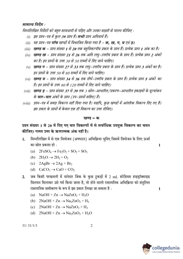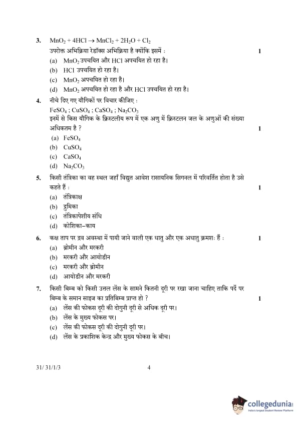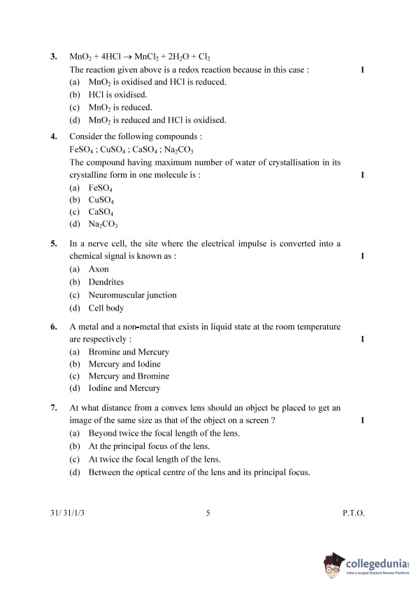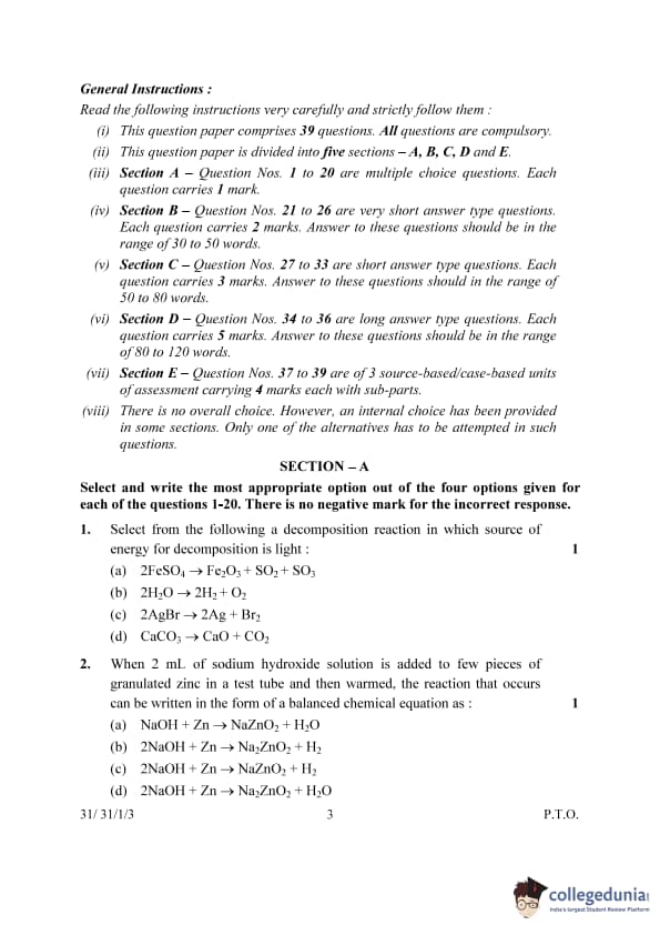 CBSE Class 10 Science Question Paper 2024 PDF (Set 3 - 31/1/3) is available for download here. CBSE conducted the Science exam on March 2, 2024, from 10:30 AM to 1:30 PM. The total marks for the theory paper are 80. The question paper contains 20% MCQ-based questions, 40% competency-based questions, and 40% short and long answer type questions. Students reported the paper to be easy to moderate.