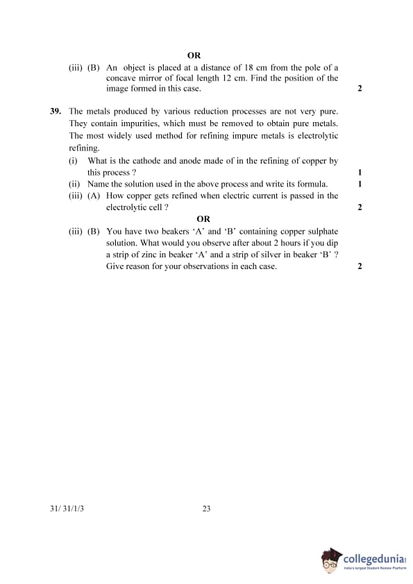 CBSE Class 10 Science Question Paper 2024 (Set 3 - 31/1/3) with Answer Key