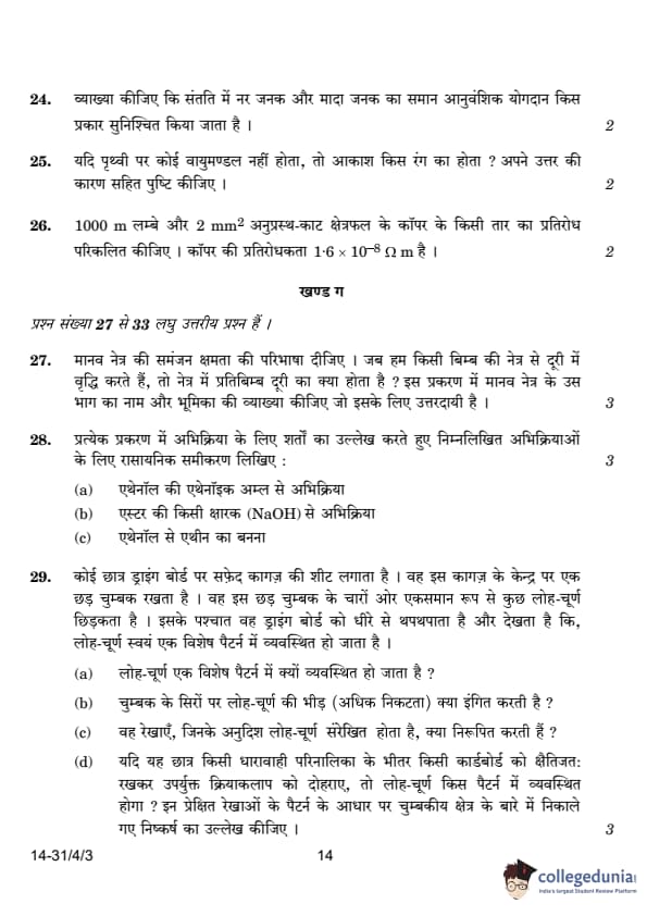 | CBSE Class 10 Science Question Paper 2024 (Set 3 - 31/4/3) with Answer Key | Check Solutions |
