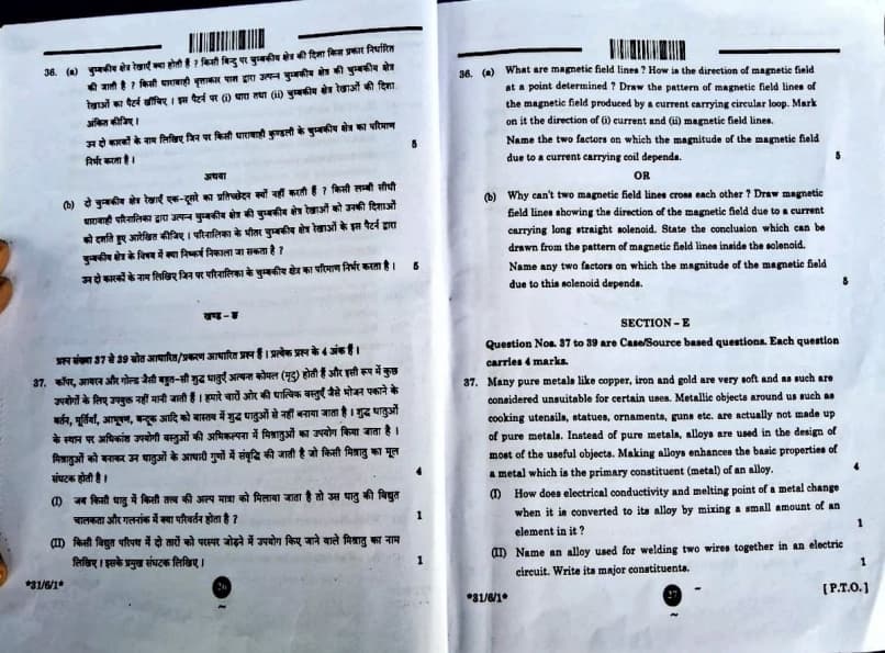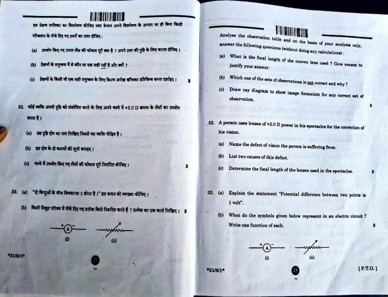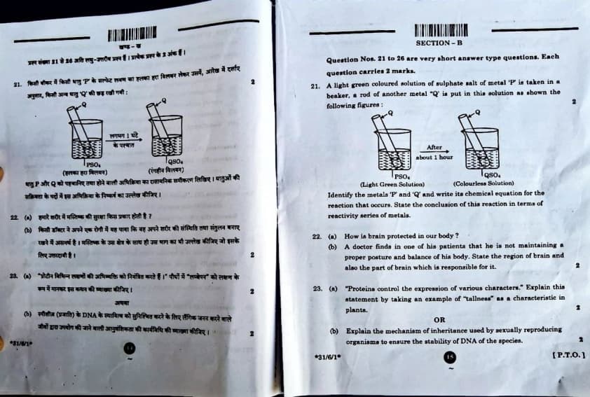 CBSE Board Class 10 Science Question Paper 2025 Set 1(31-6-1) with Solutions