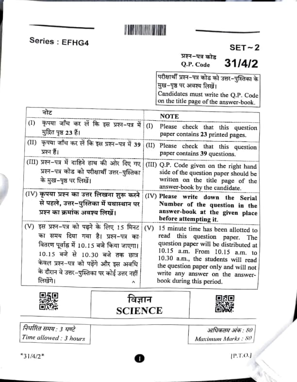 | CBSE Class 10 Science 2024 Question Paper with Answer Key (Set 2 31/4/2) | Check Solution |