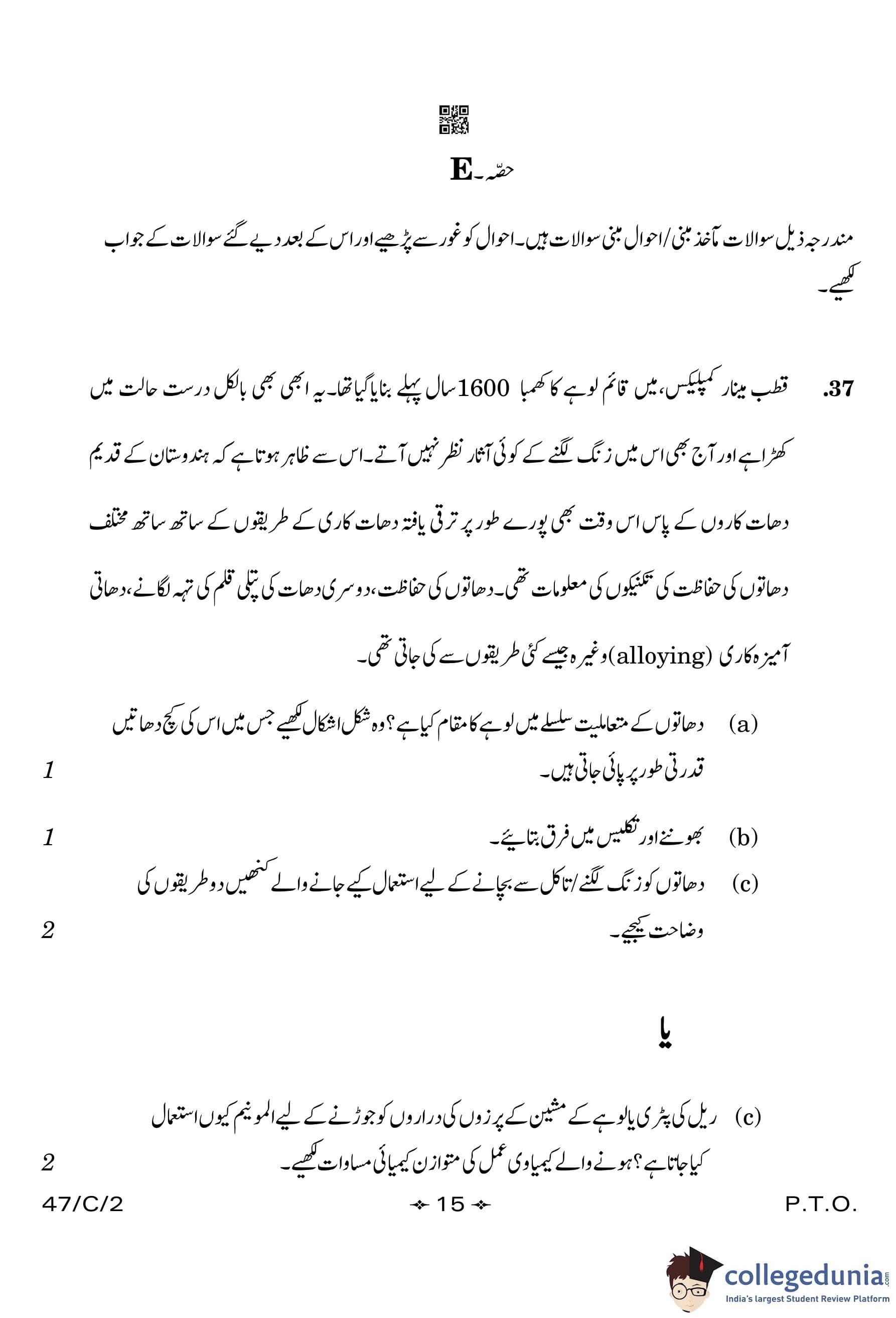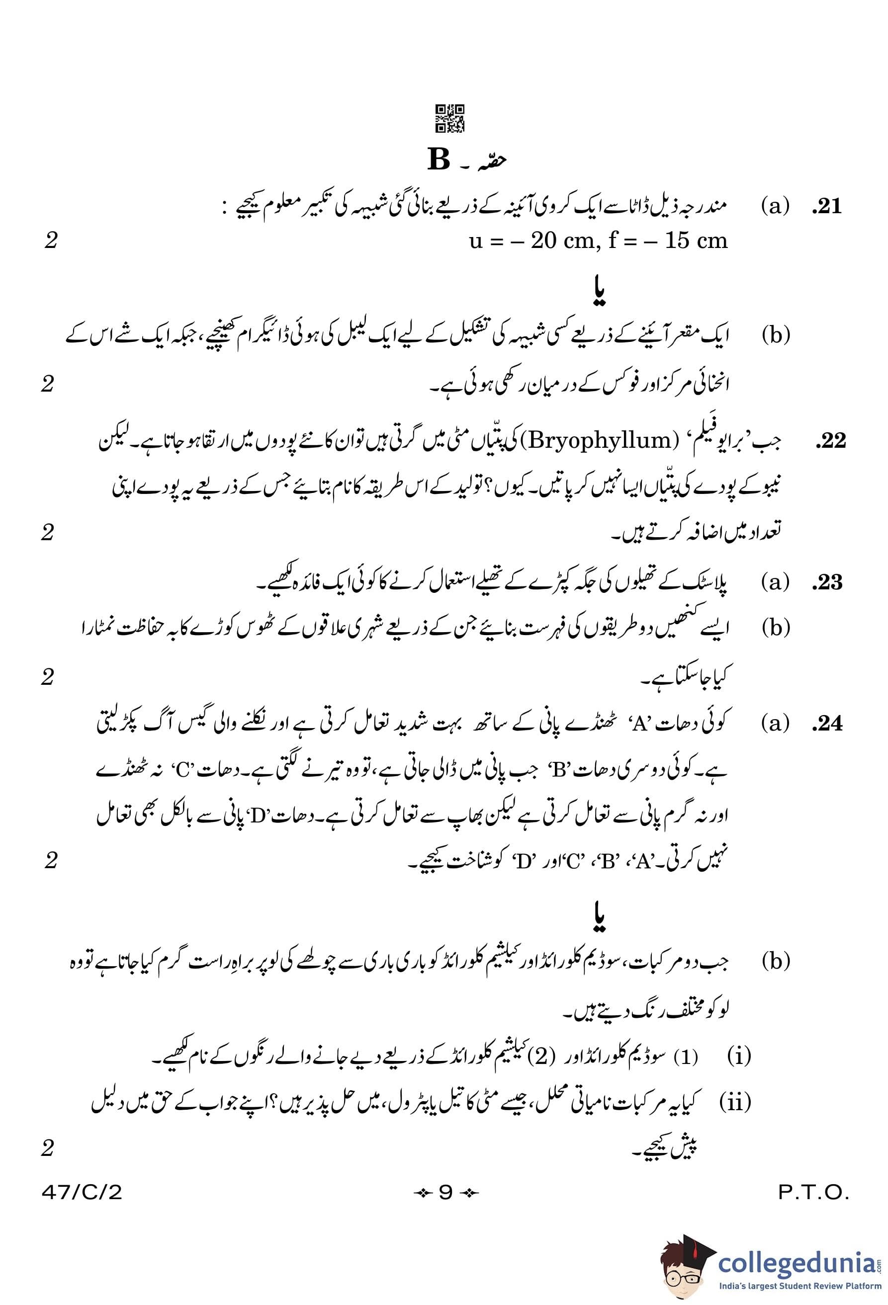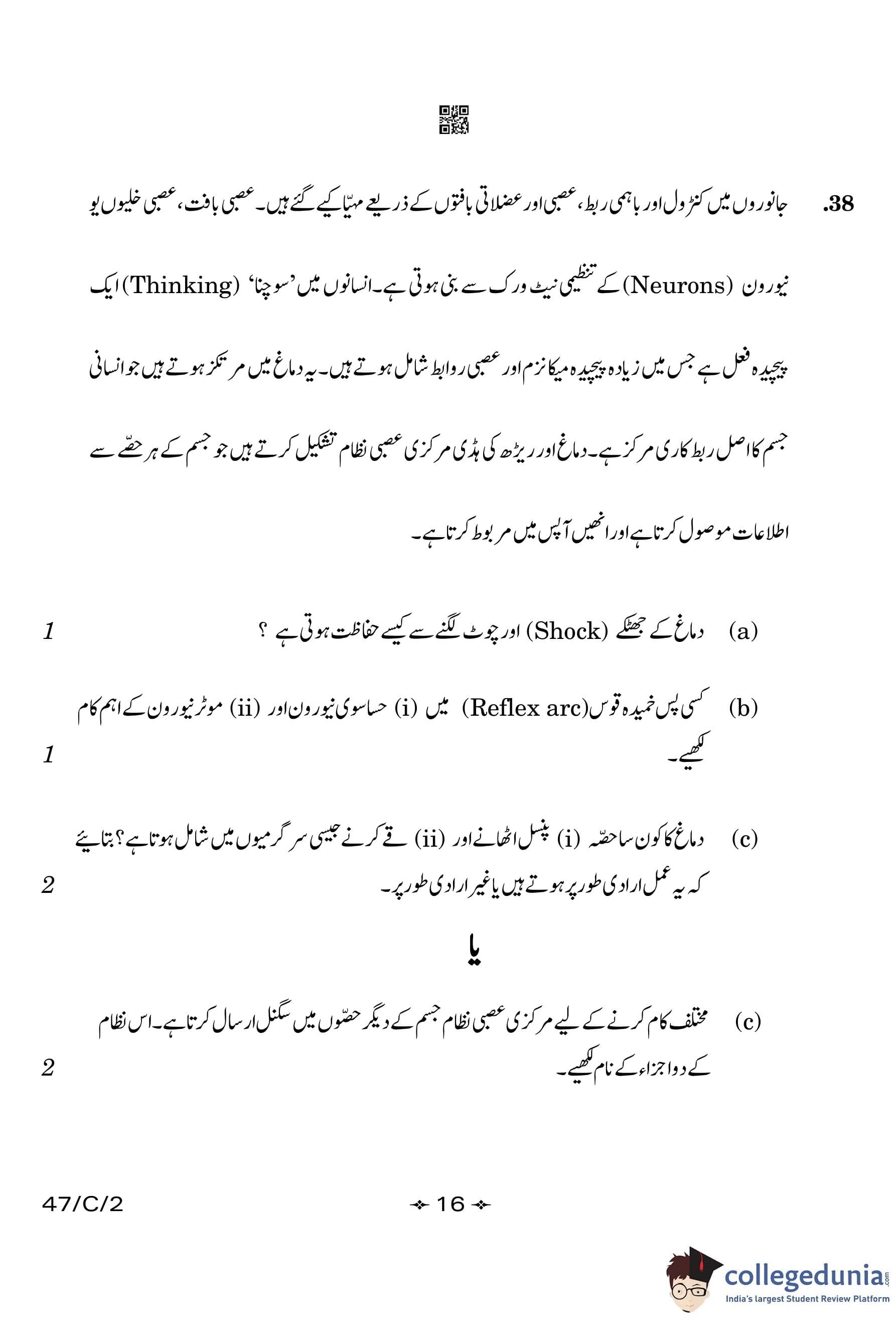 CBSE Class 10 Science (Urdu) (Set 2- 47/C/2) Compartment Question Paper 2023 with Answer Key