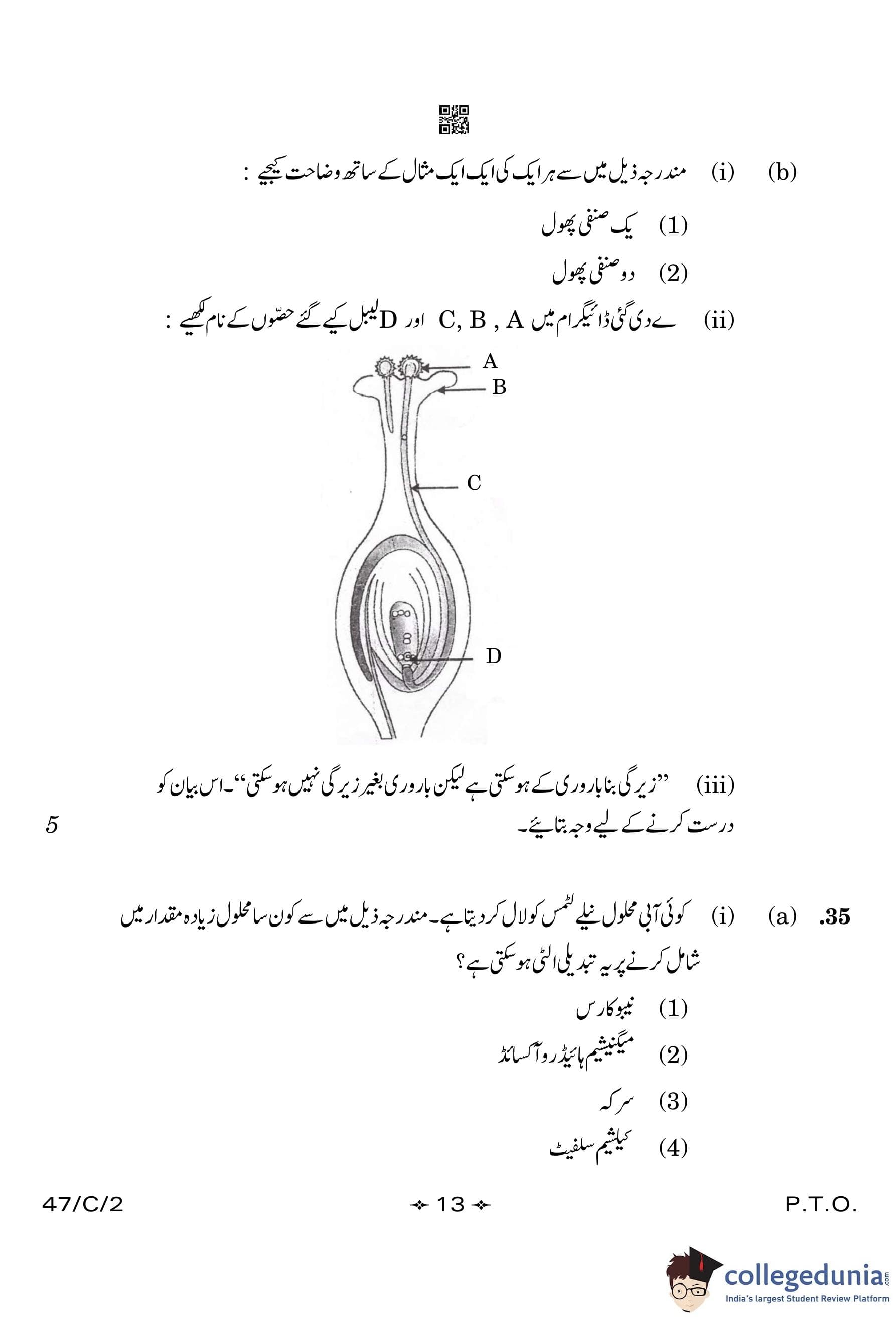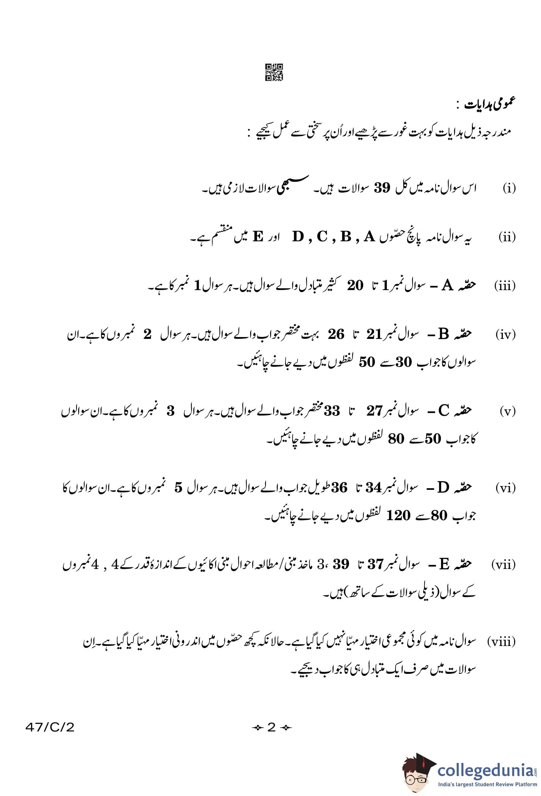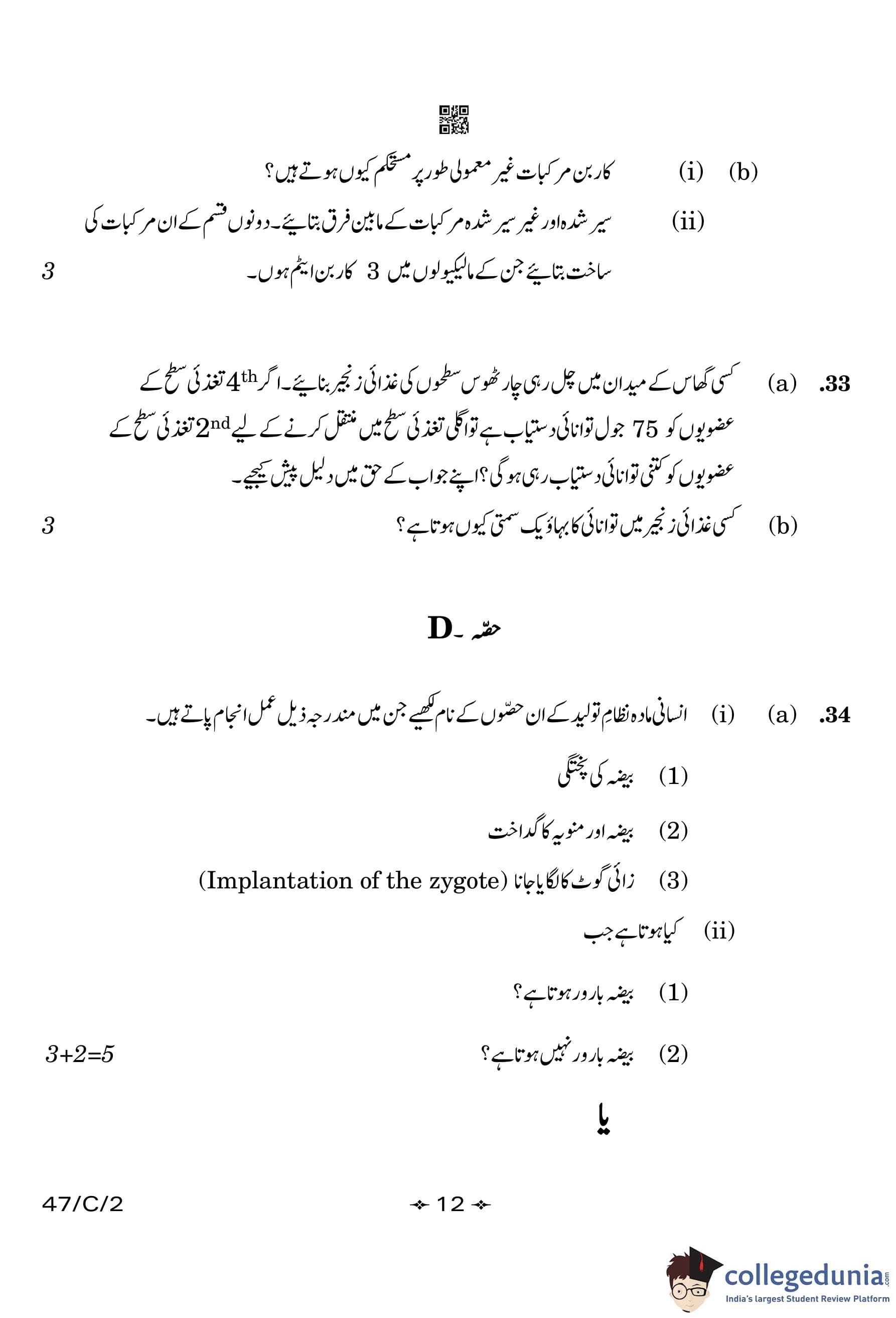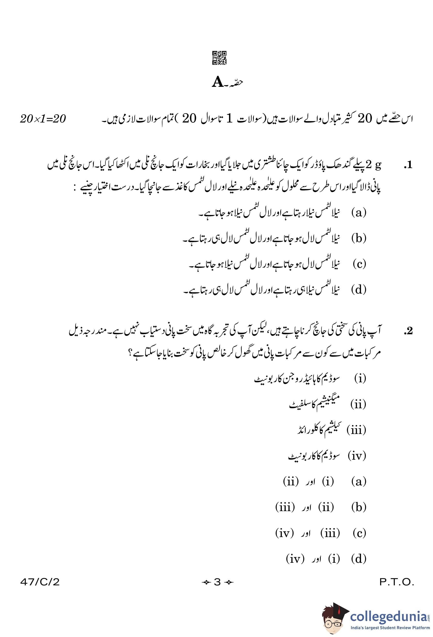 CBSE Class 10 Science (Urdu) (Set 2- 47/C/2) Compartment Question Paper 2023 with Answer Key