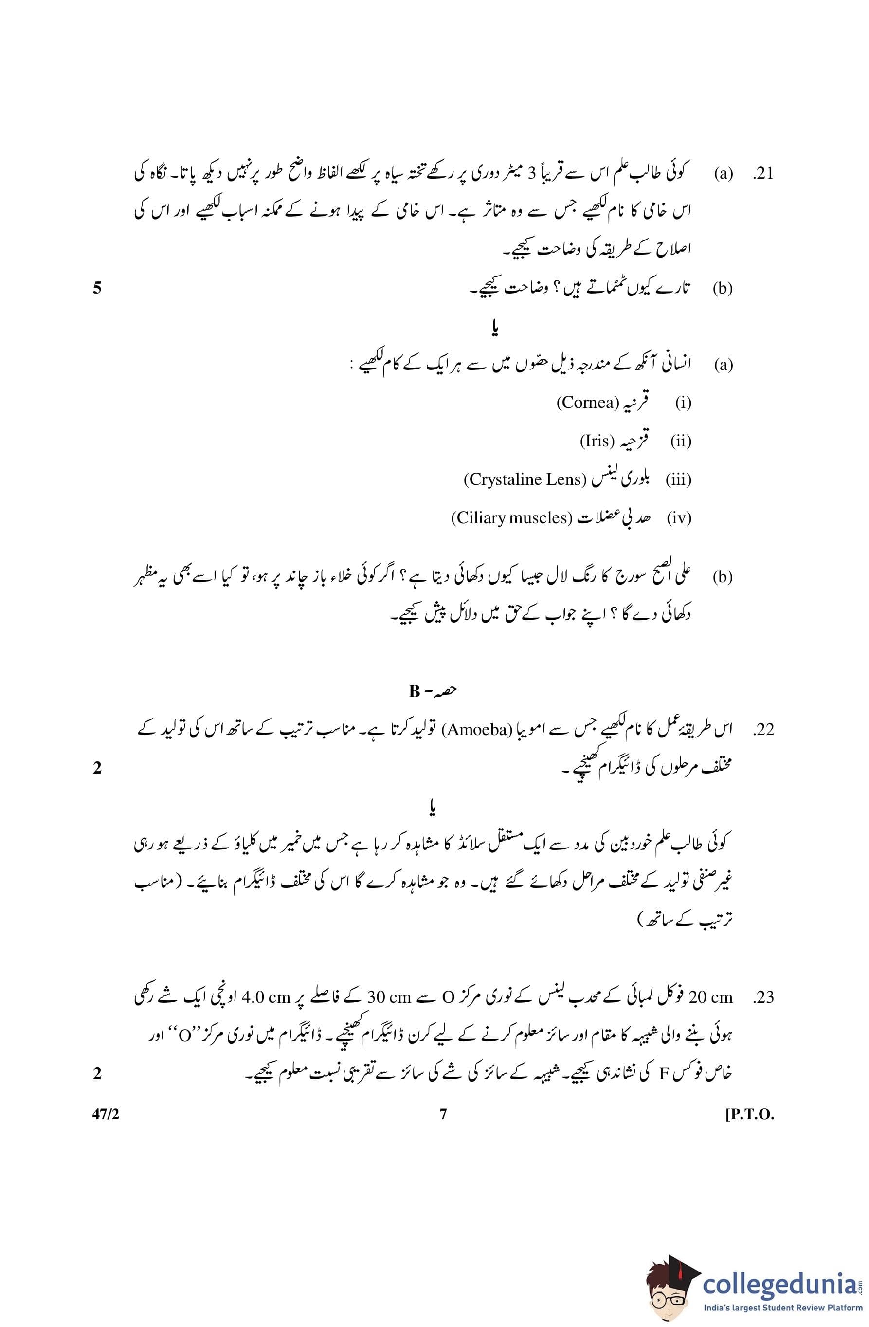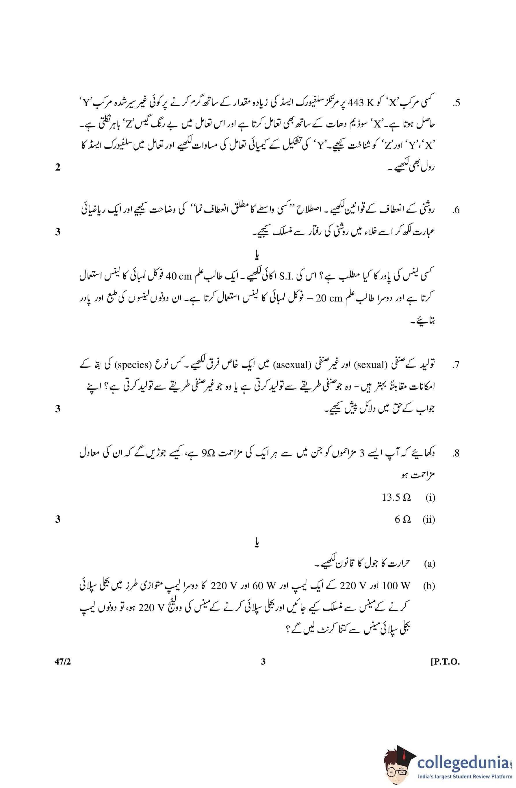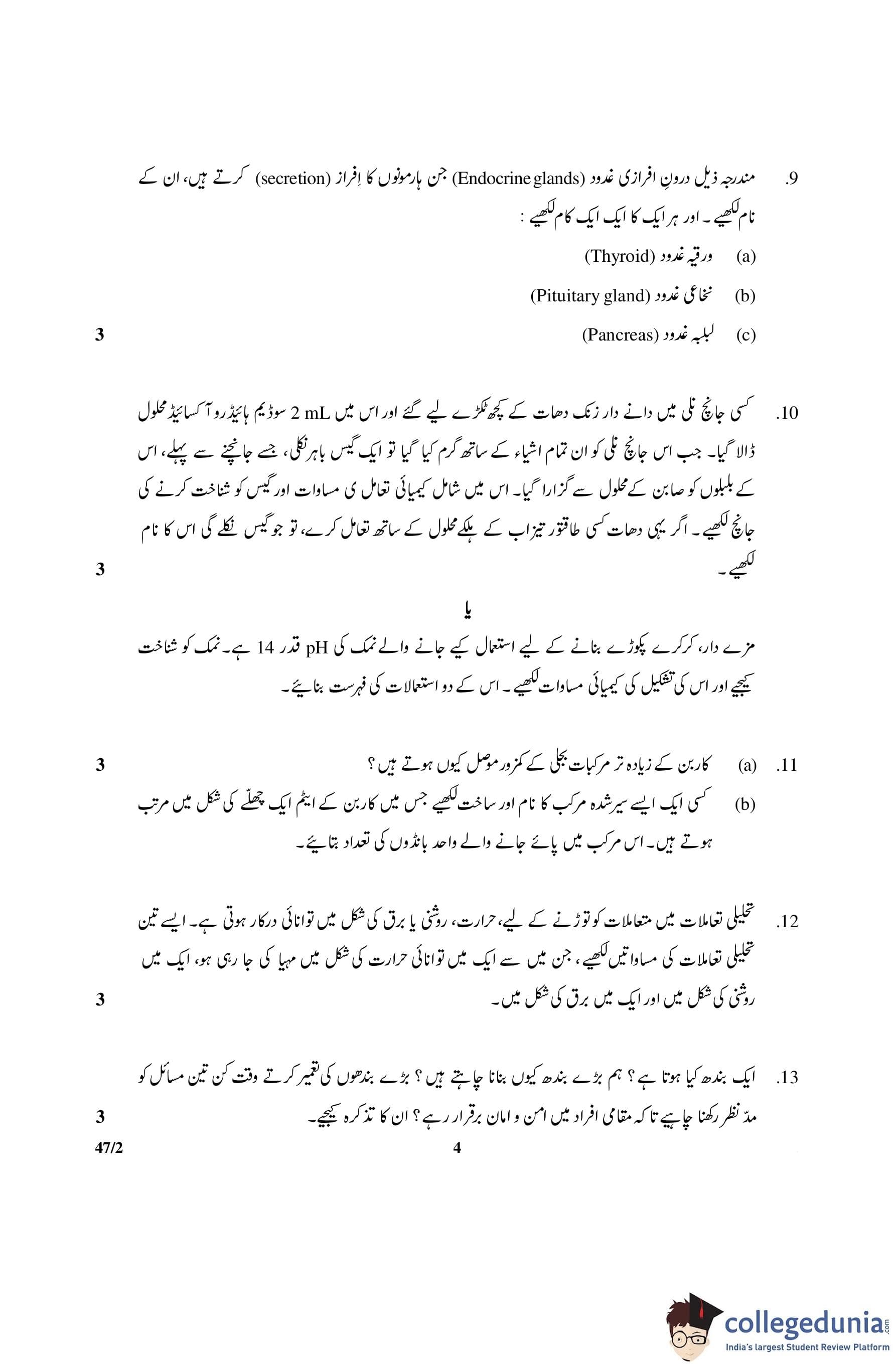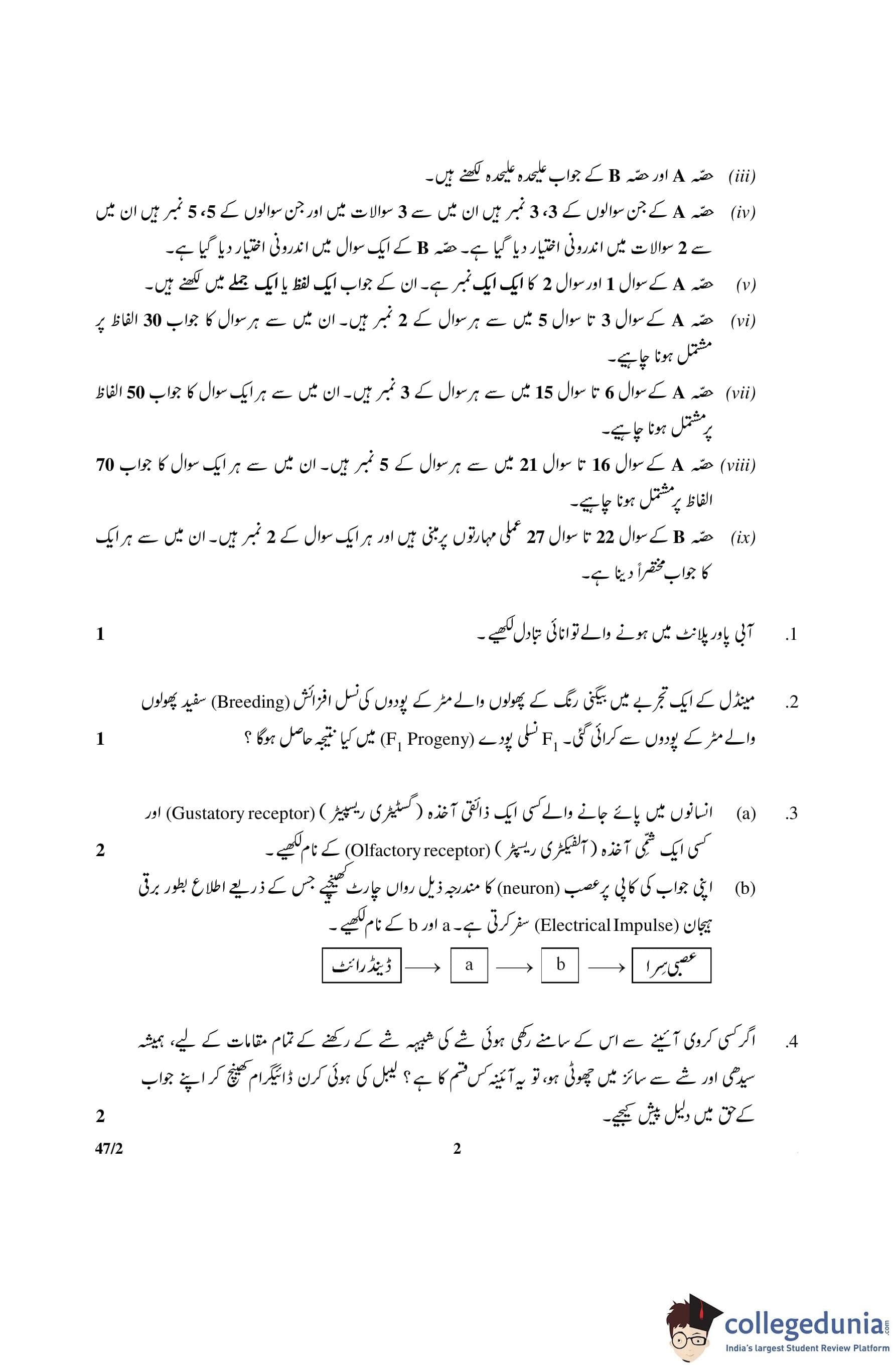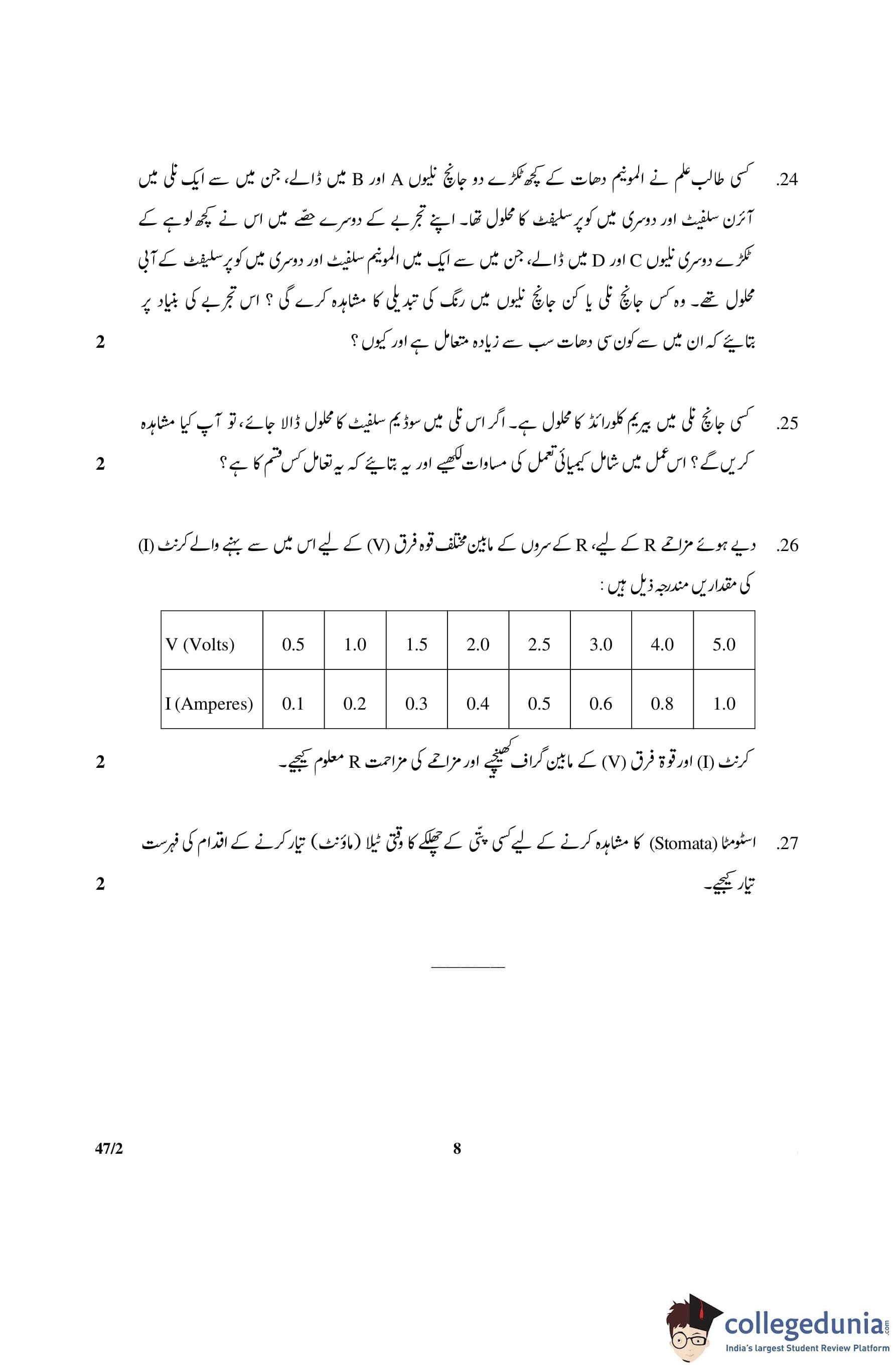 CBSE Class 10 Science Urdu Question Paper 2018 with Answer Key Set 2 - 47/2 is available for download. The exam was conducted by the Central Board of Secondary Education on March 16, 2018 in the Morning Session 10:30 AM to 1:30 PM. The medium of paper was Urdu. The question paper comprised a total of 27 questions divided among 2 sections.