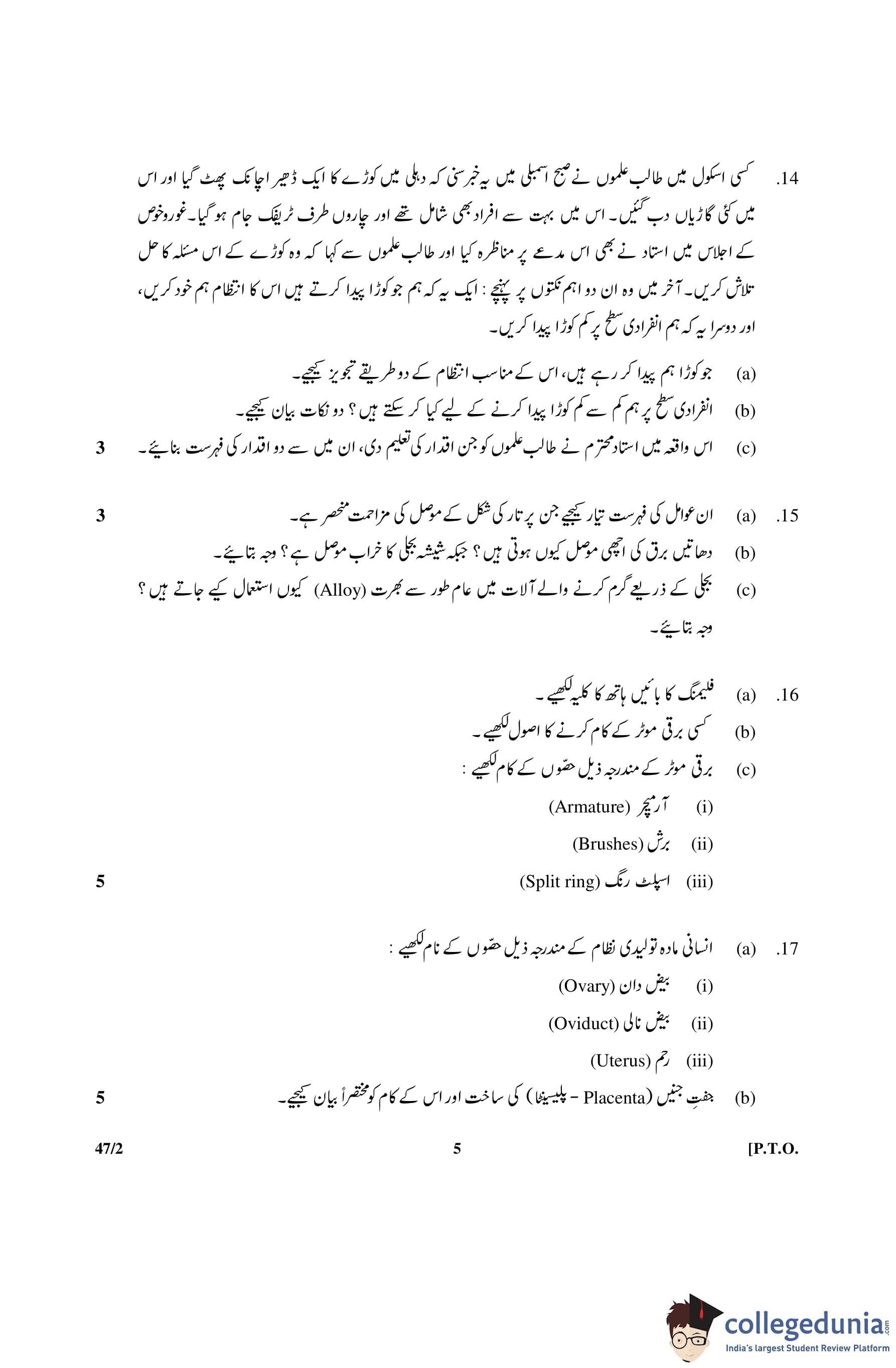 CBSE Class 10 Science Urdu Set 2 - 47/2 Question Paper 2018 with Answer Key (March 16)