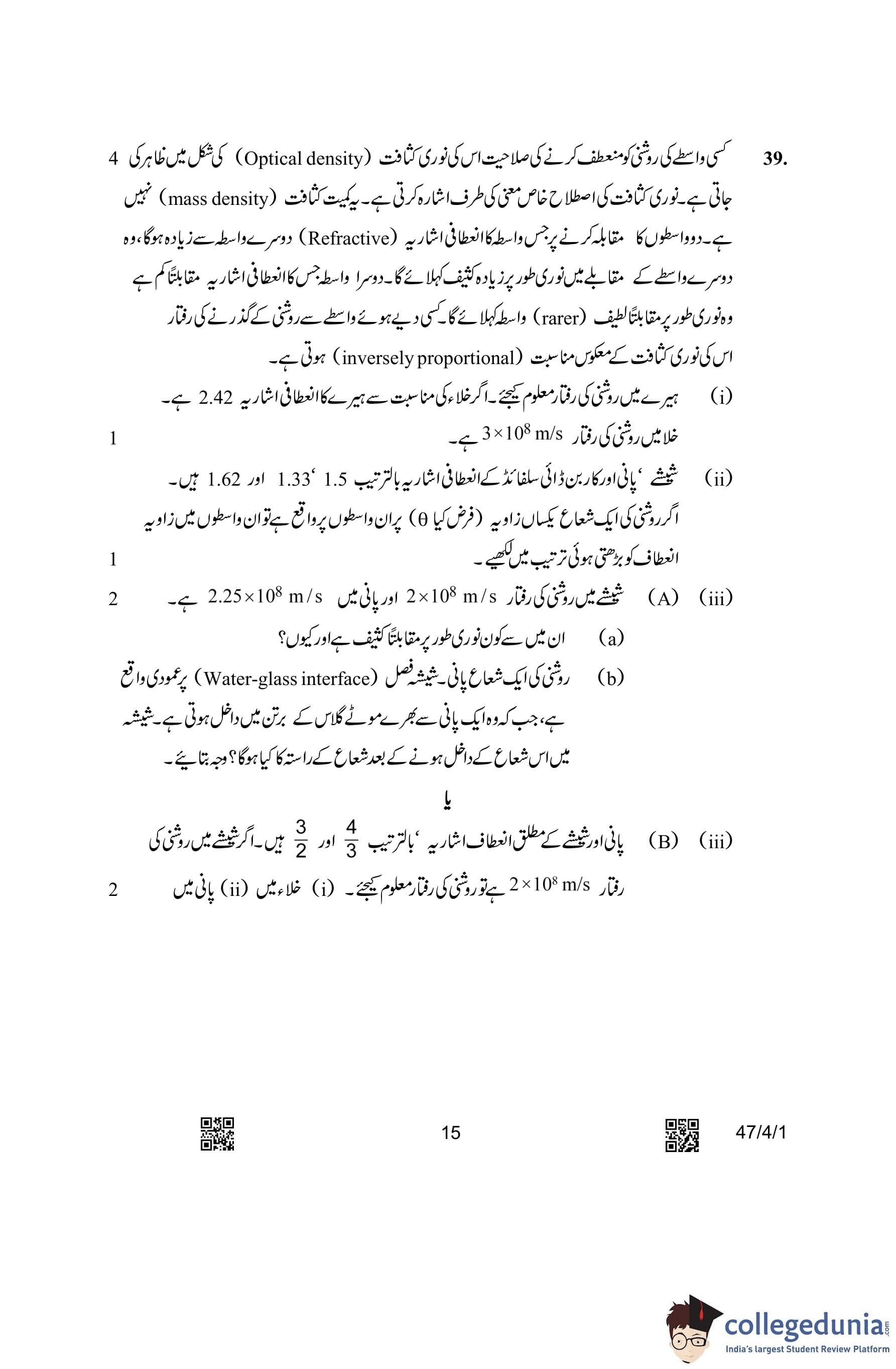 CBSE Class 10 Science Urdu Question Paper 2023 with Answer Key (Set 1- 47/4/1) is available for download here. The exam was conducted by the Central Board of Secondary Education on March 4, 2023 in the Morning Session 10:30 AM to 1:30 PM. The medium of paper was Urdu. According to initial student reaction, the CBSE Class 12 Science Paper was rated as Moderate in difficulty level. The question paper comprised a total of 39 questions divided among 5 sections.
