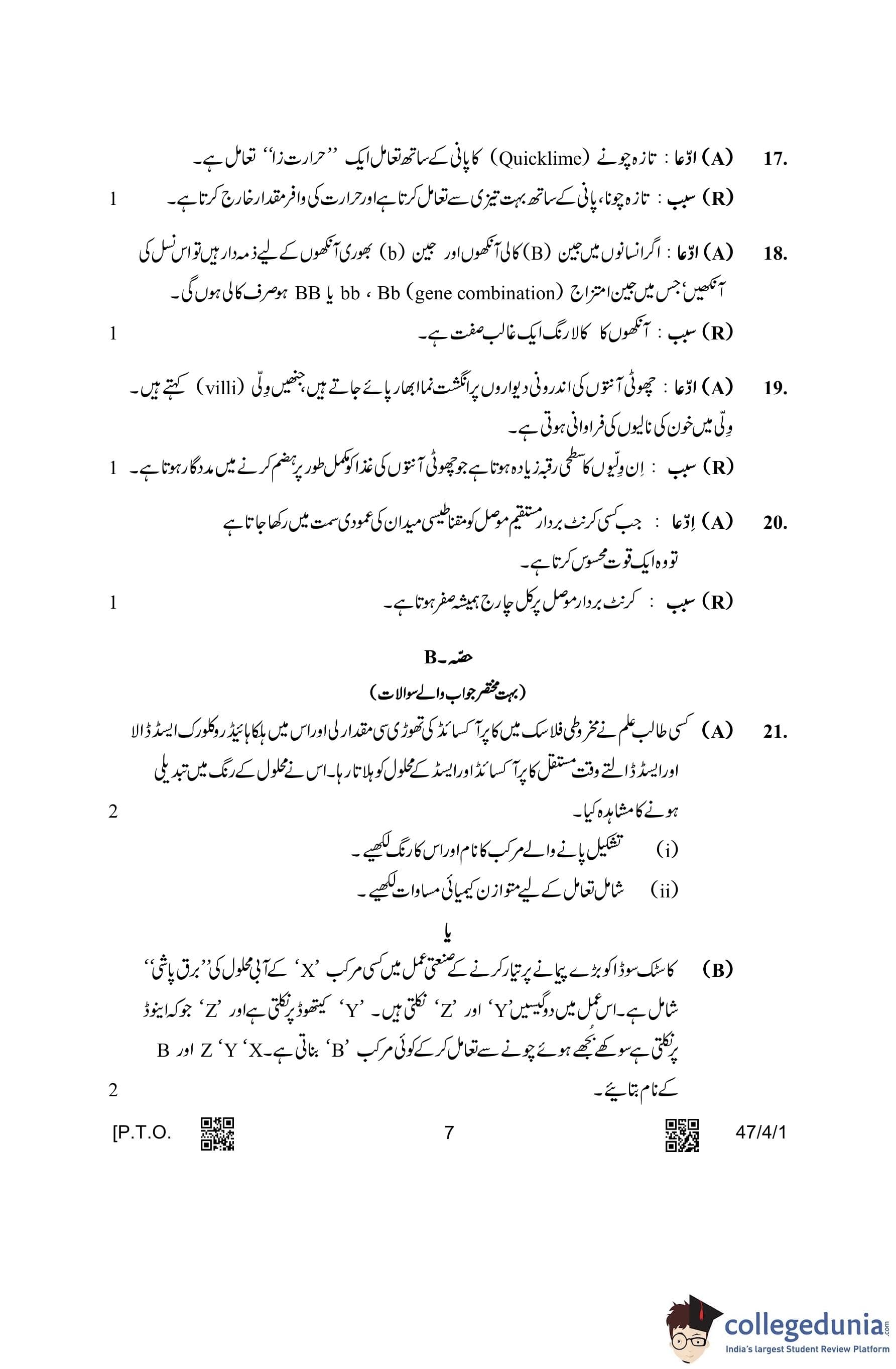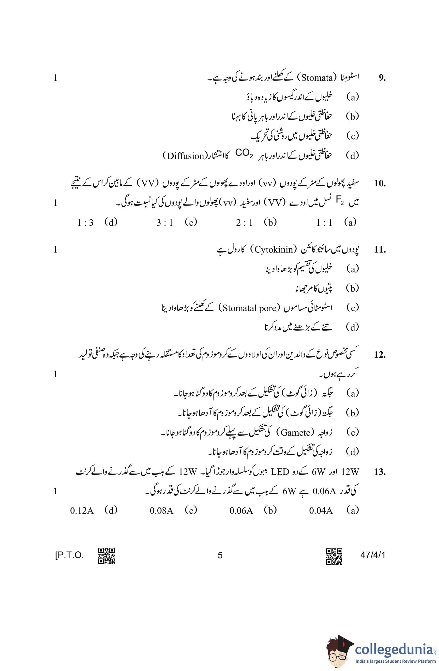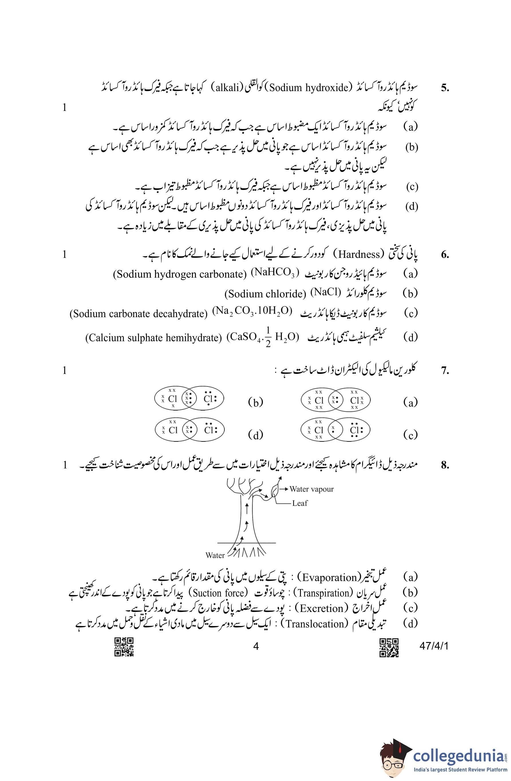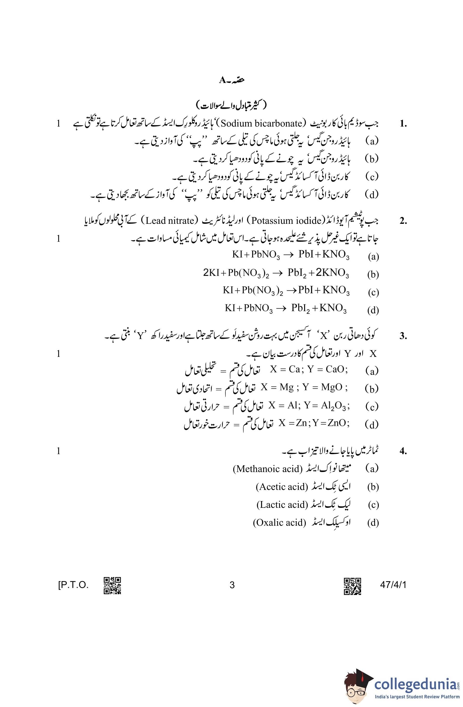 CBSE Class 10 Science (Set 1- 47/4/1) Urdu Question Paper 2023 with Answer Key