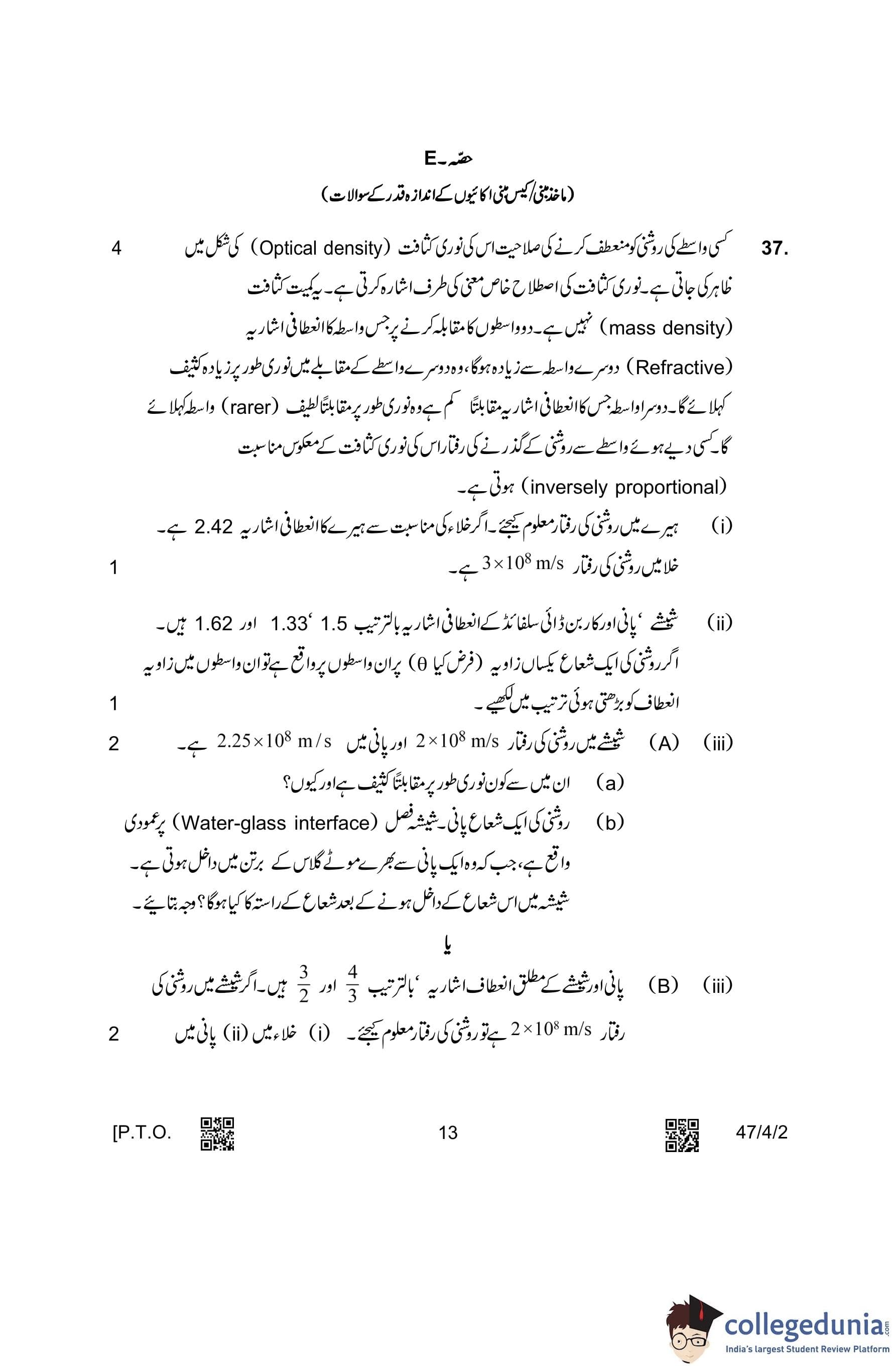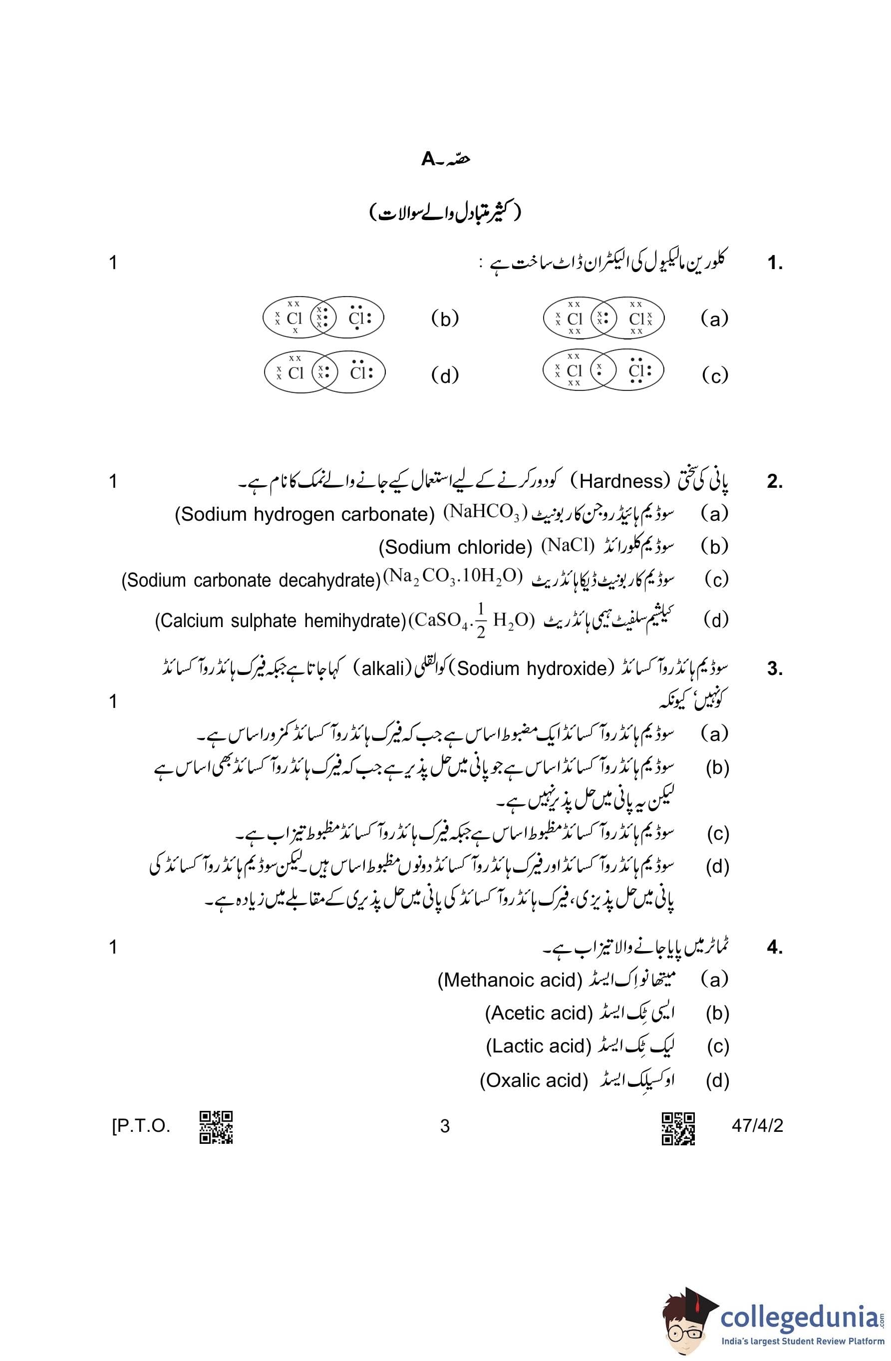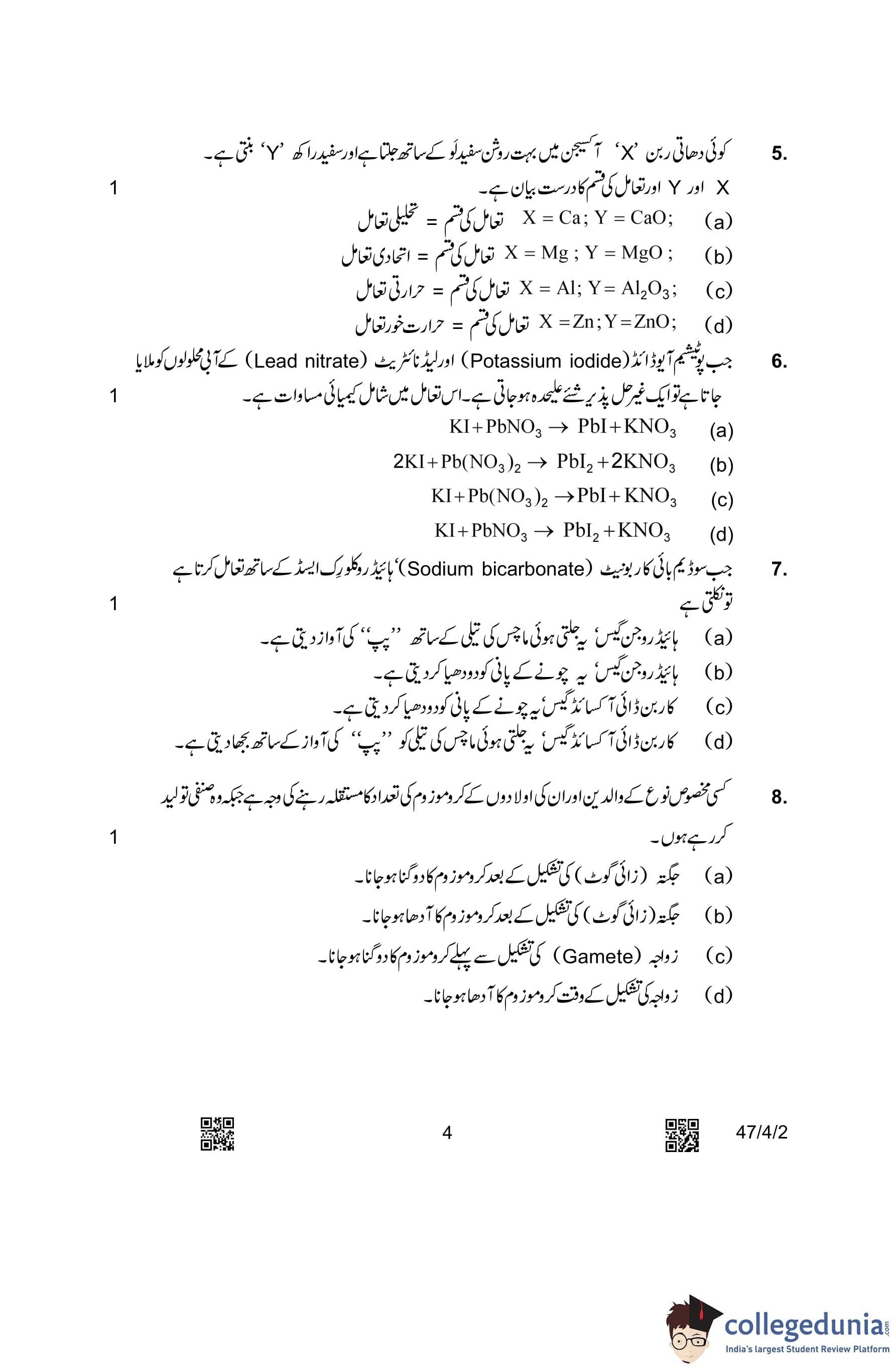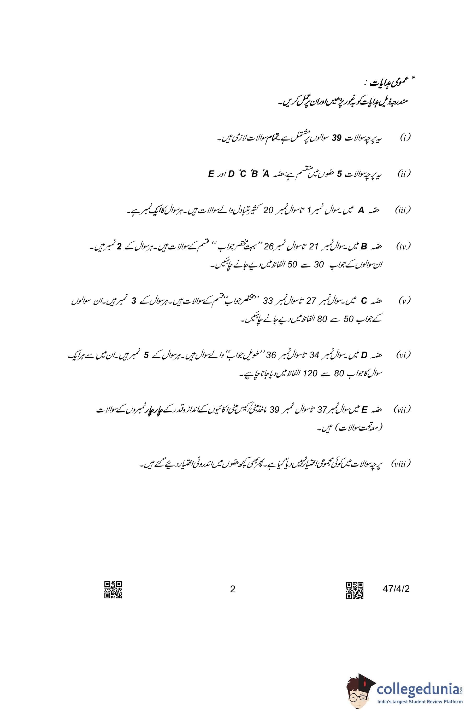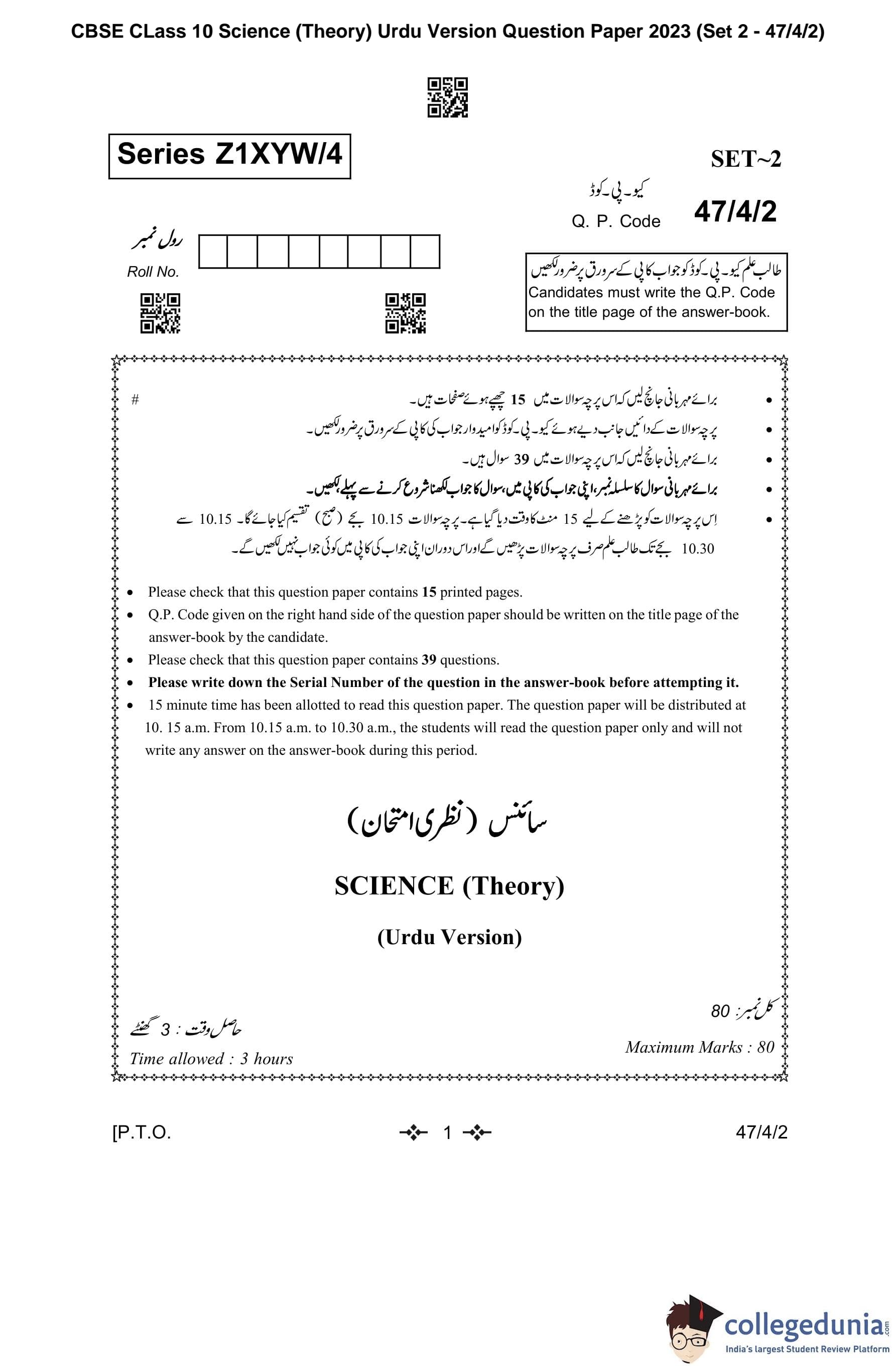 CBSE Class 10 Science Urdu Question Paper 2023 with Answer Key (Set 2- 47/4/2) is available for download here. The exam was conducted by the Central Board of Secondary Education on March 4, 2023 in the Morning Session 10:30 AM to 1:30 PM. The medium of paper was Urdu. According to initial student reaction, the CBSE Class 12 Science Paper was rated as Moderate in difficulty level. The question paper comprised a total of 39 questions divided among 5 sections.