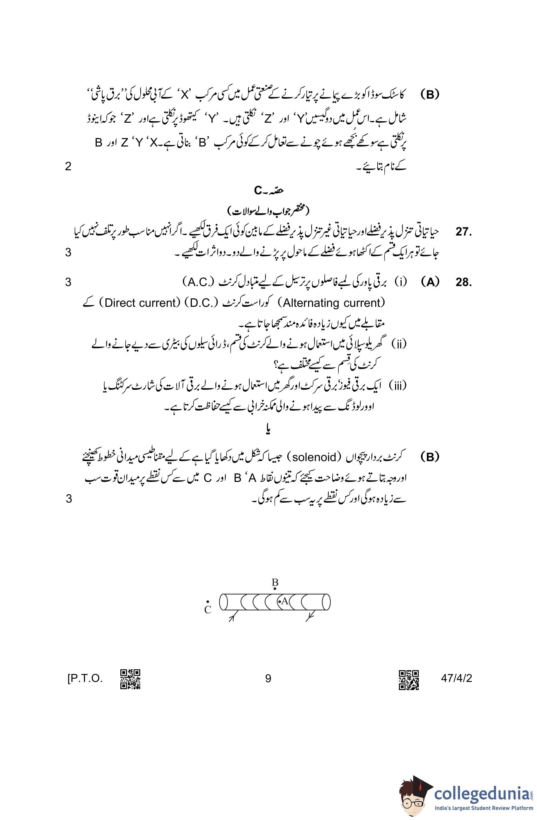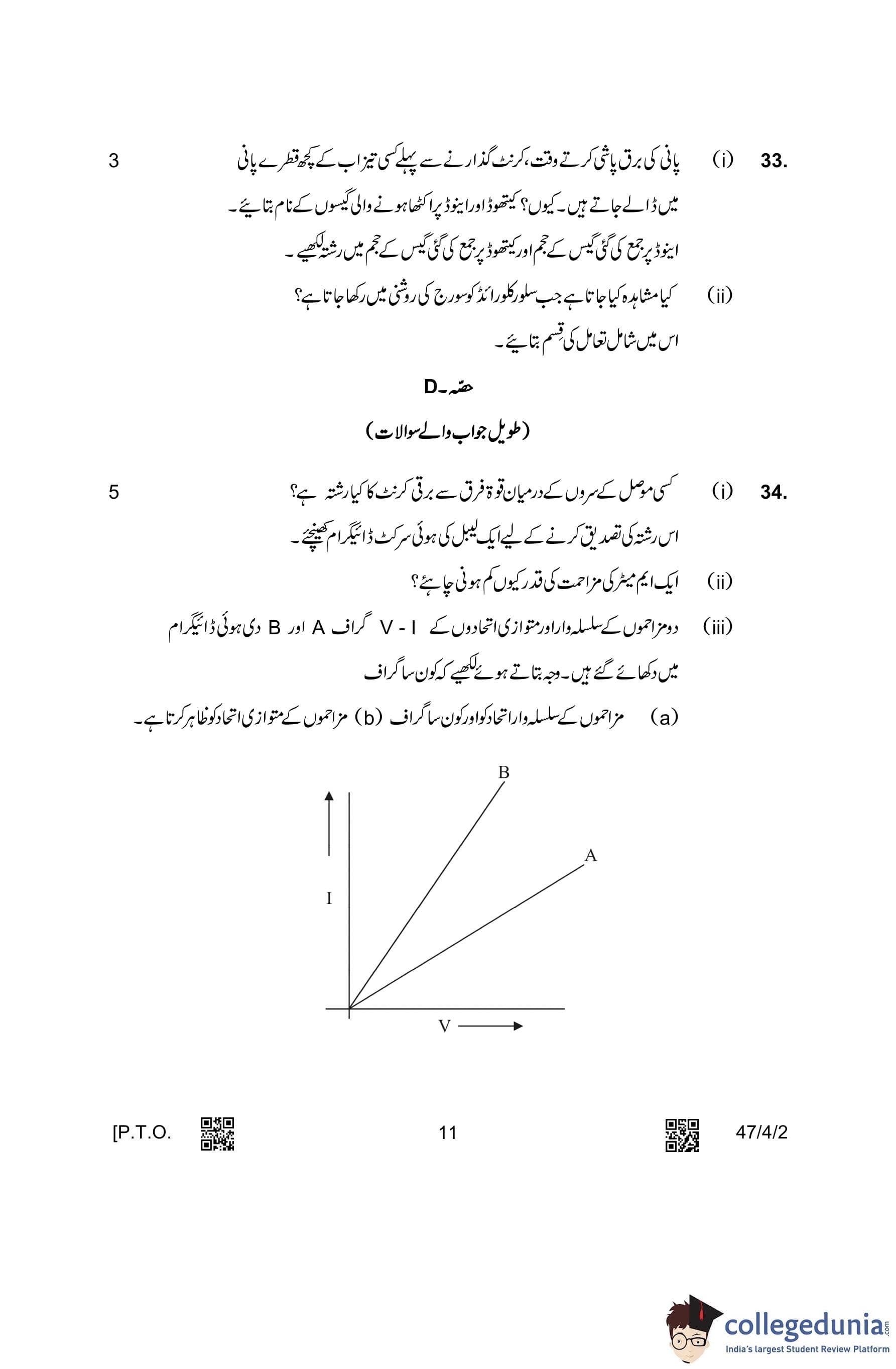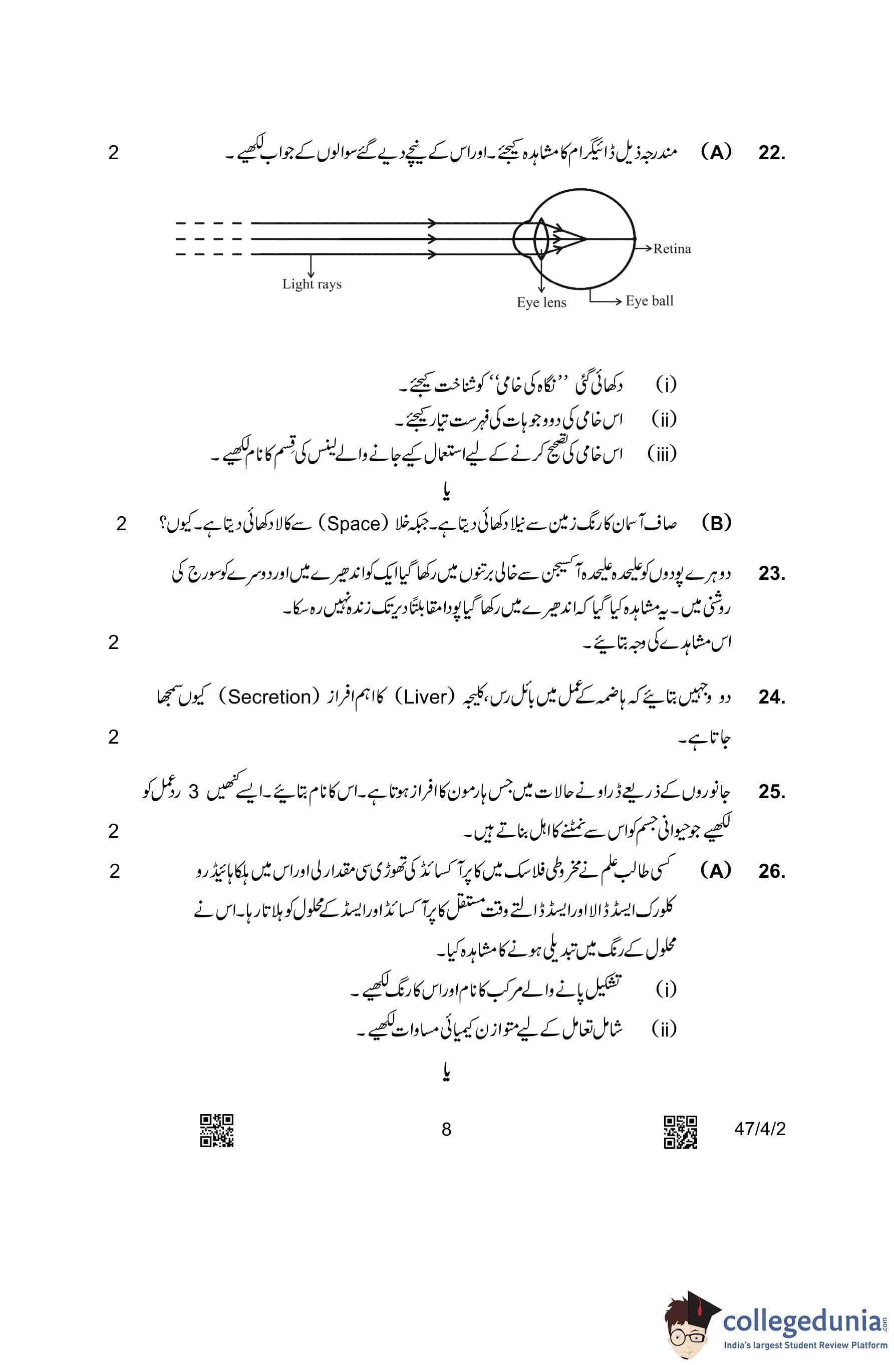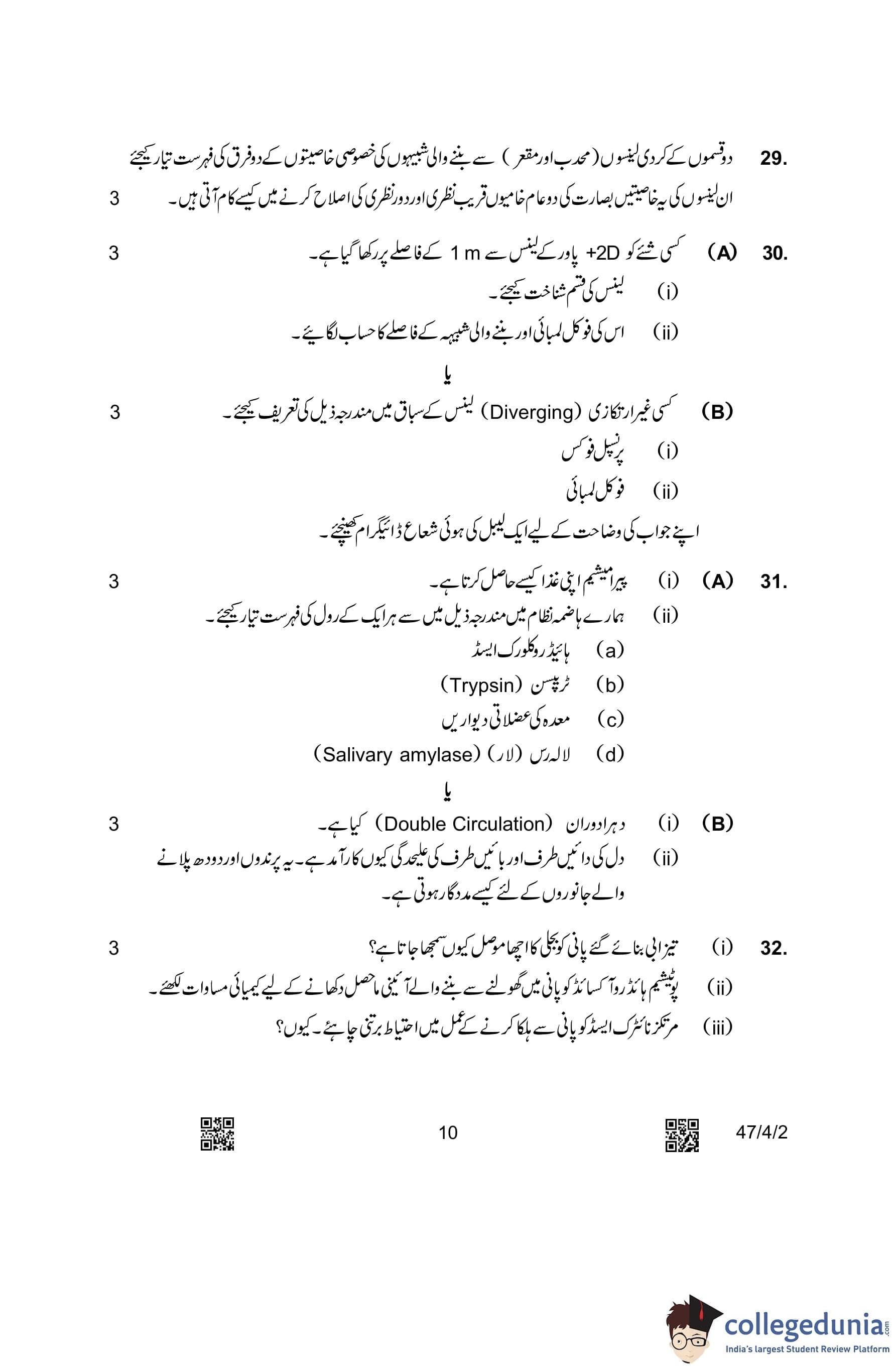 CBSE Class 10 Science (Set 2- 47/4/2) Urdu Question Paper 2023 with Answer Key