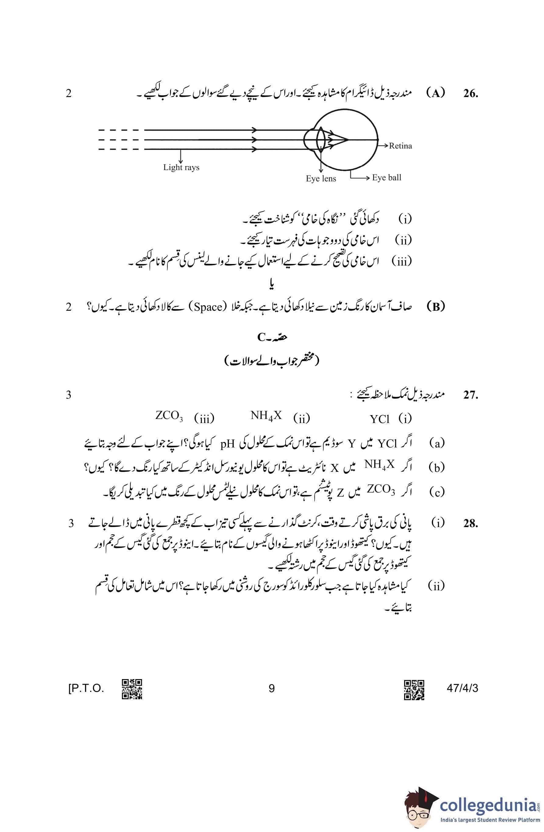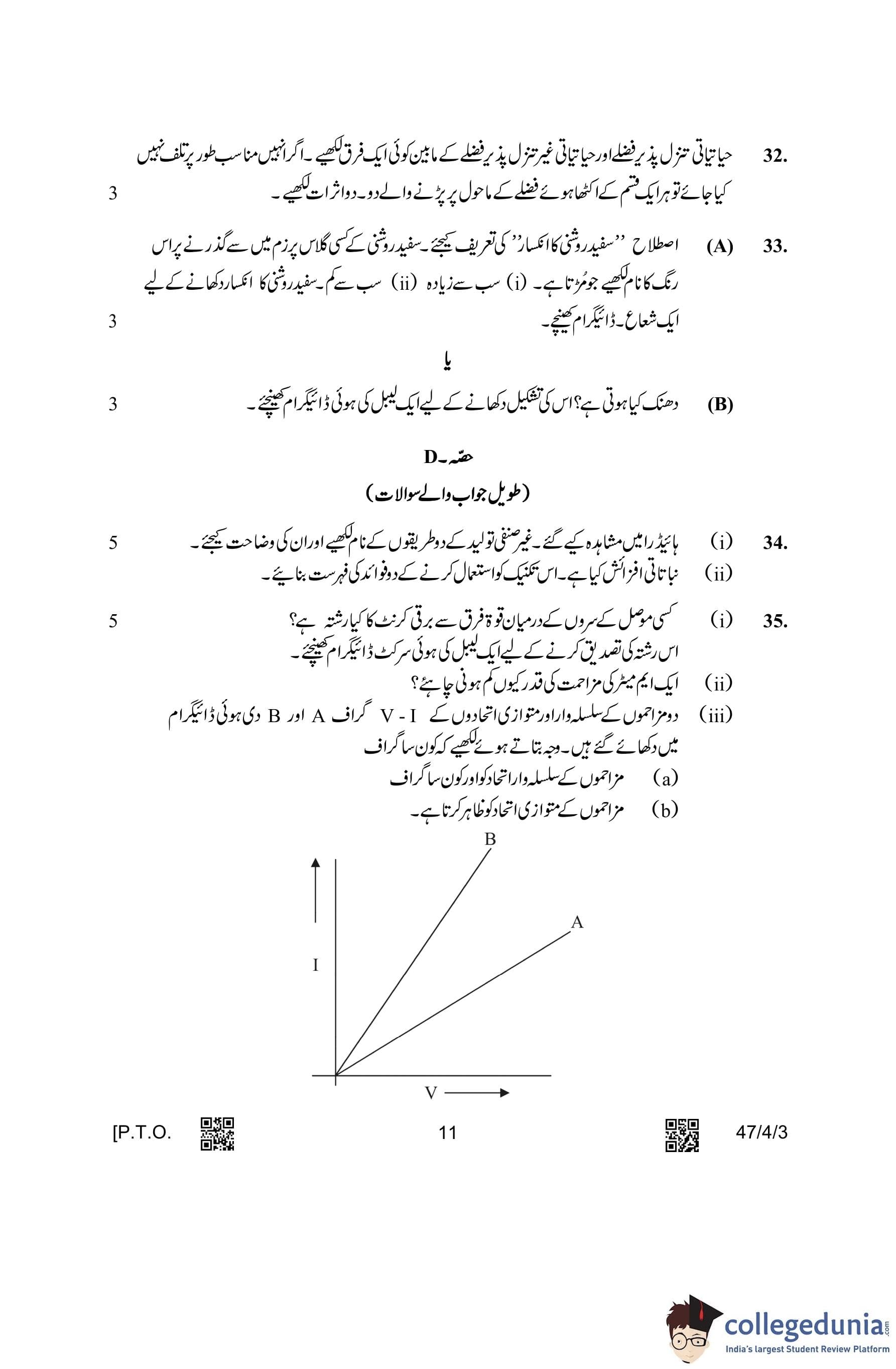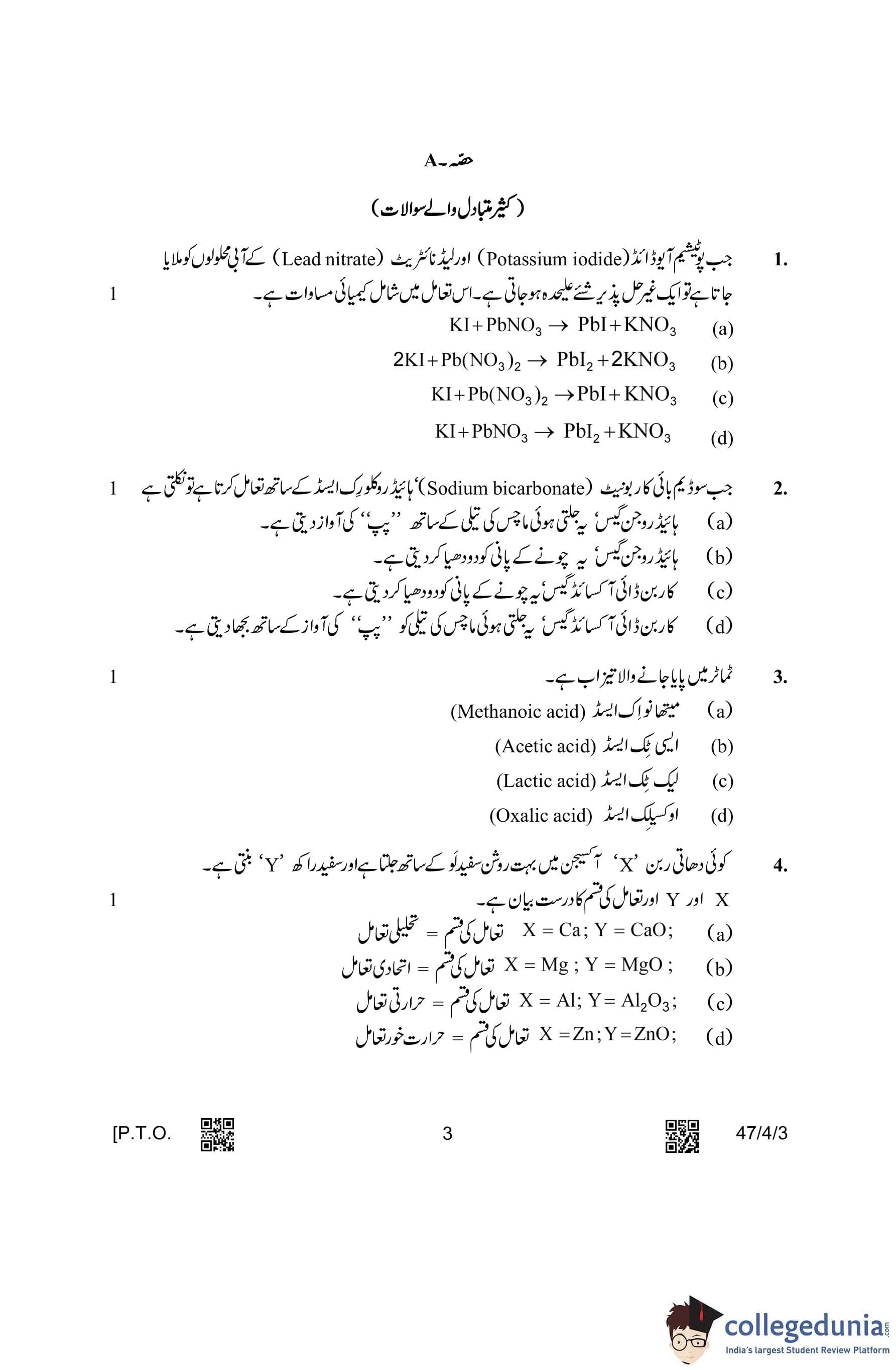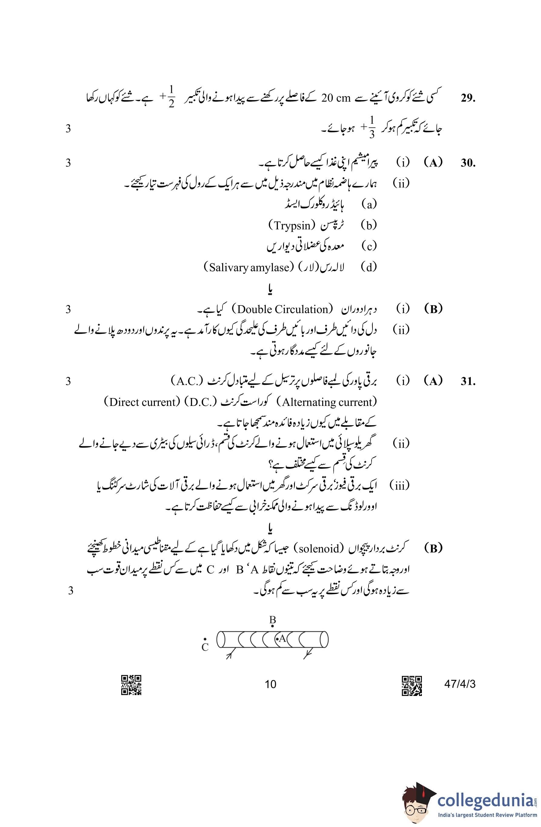 CBSE Class 10 Science (Set 3- 47/4/3) Urdu Question Paper 2023 with Answer Key