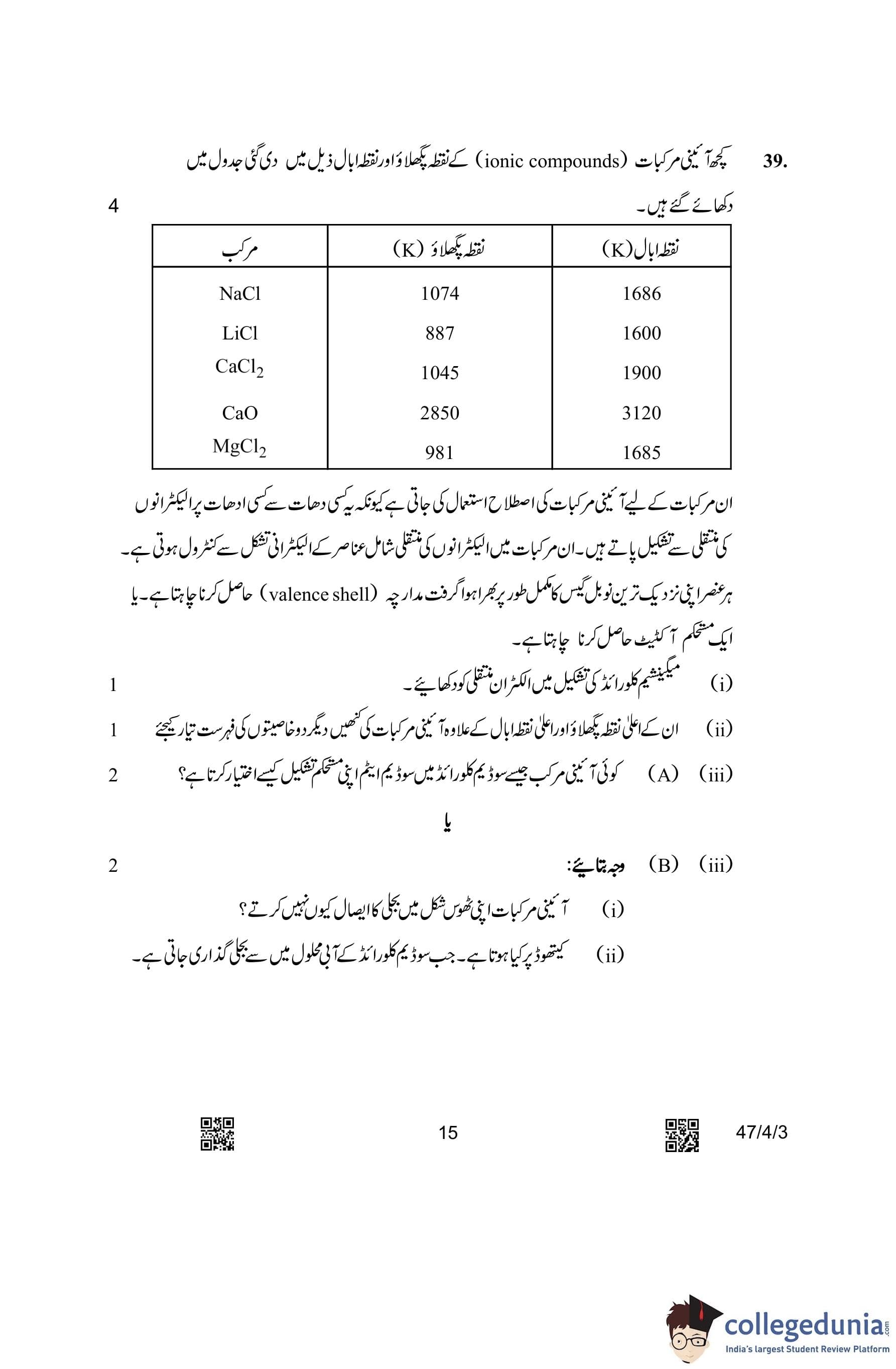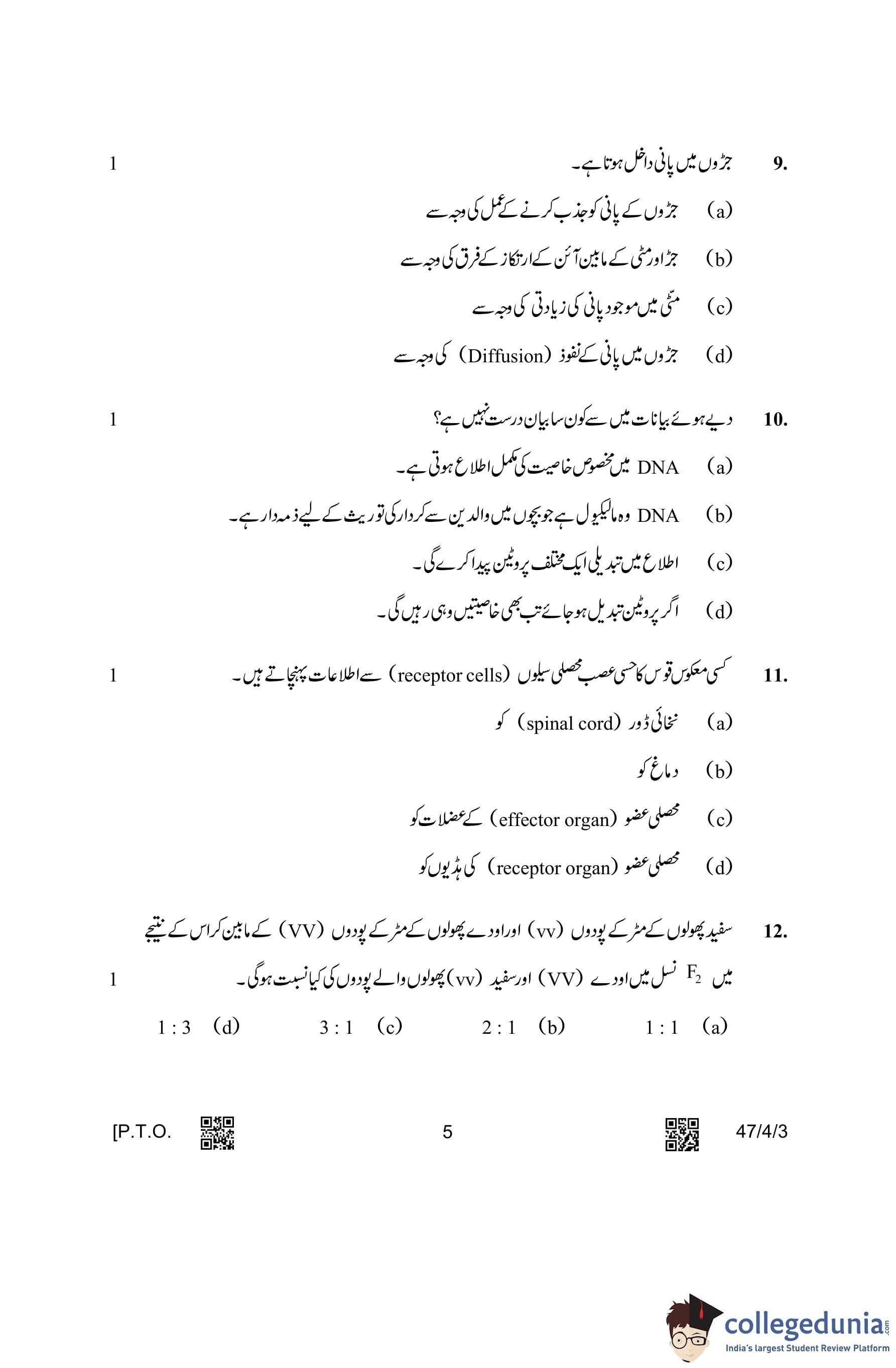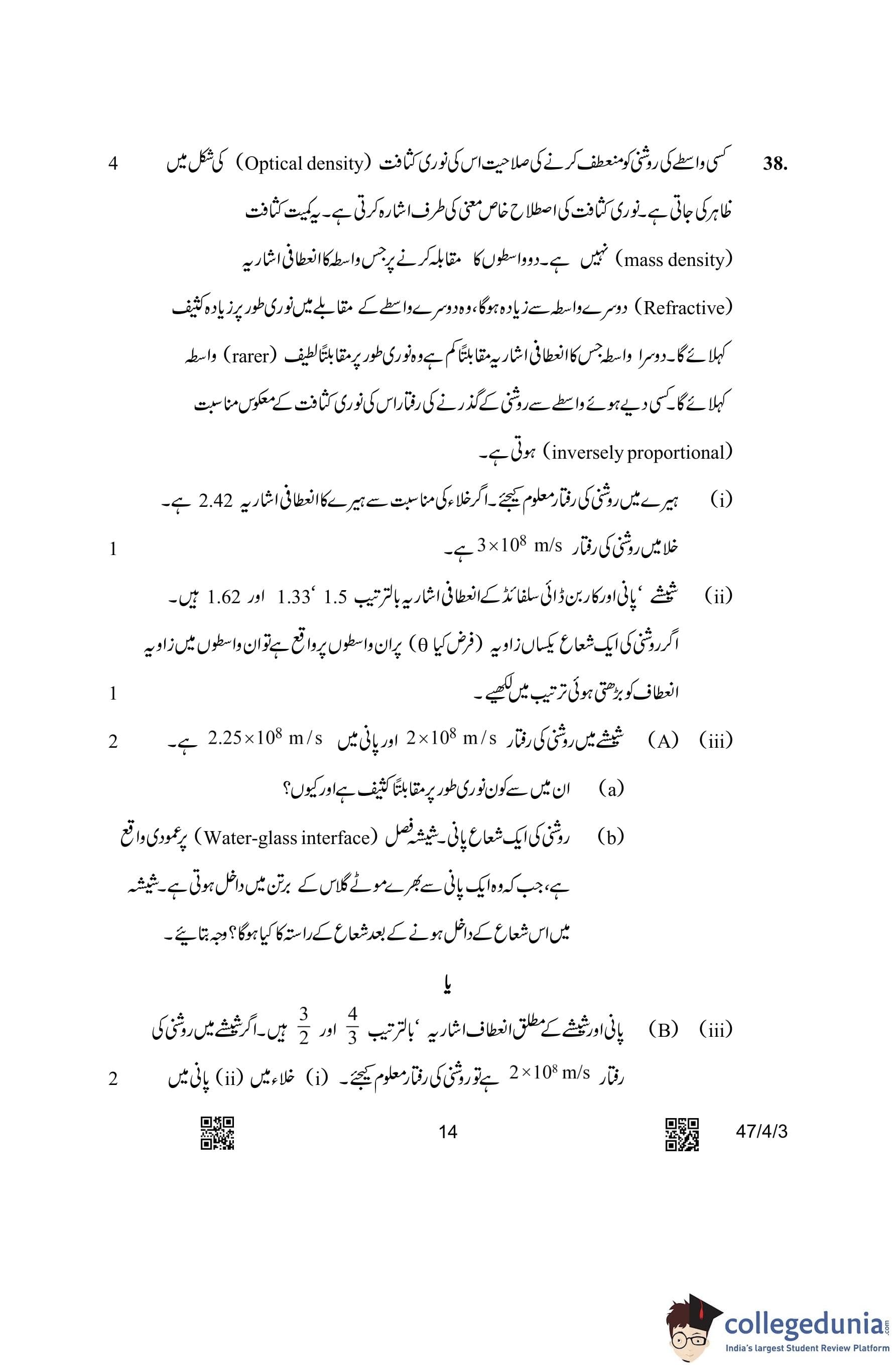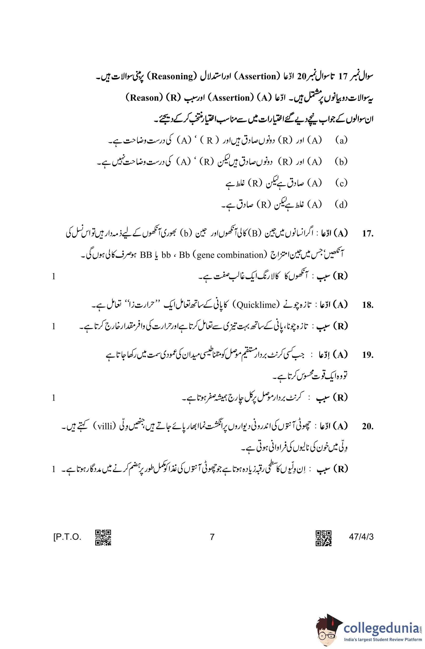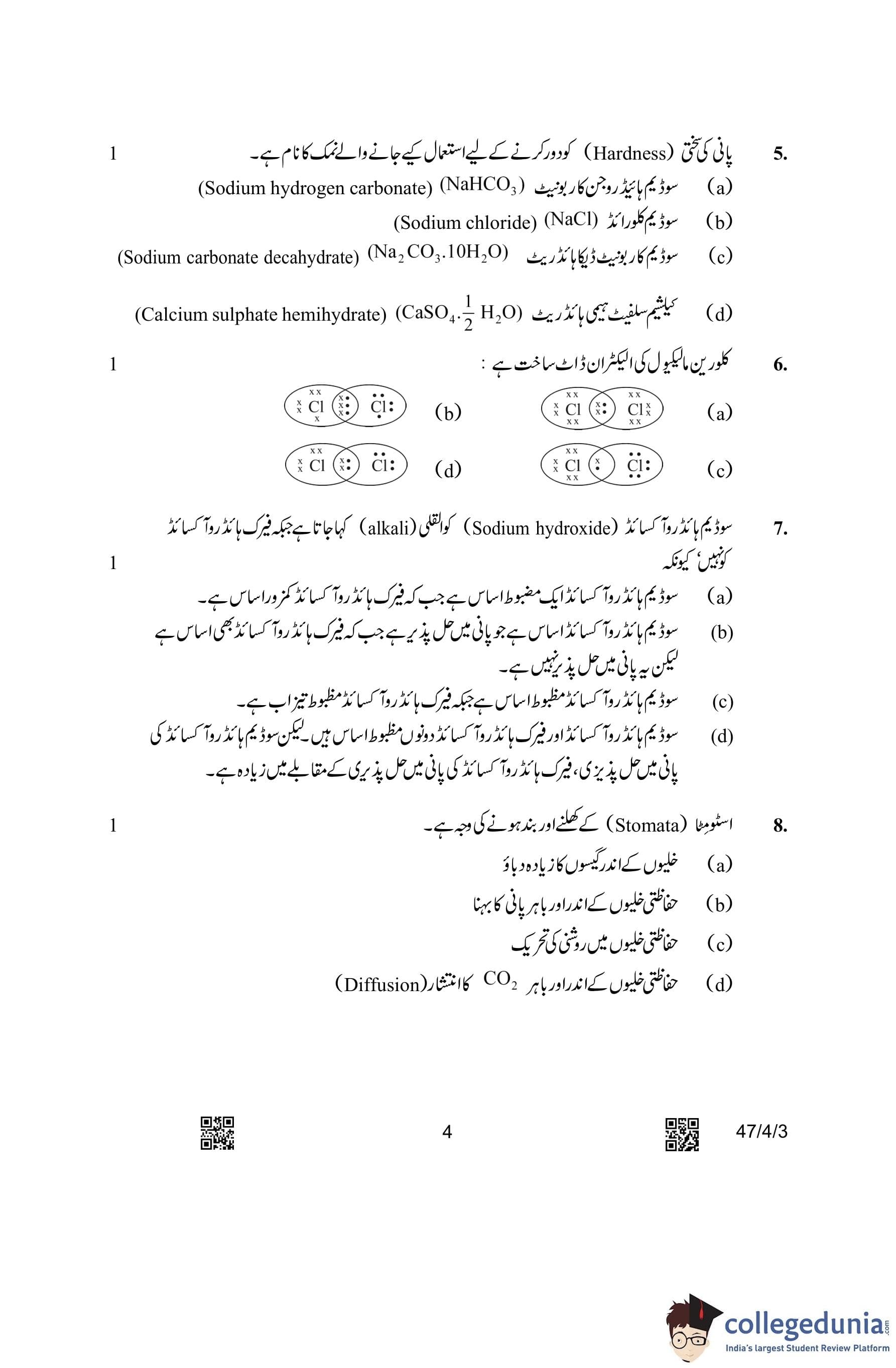 CBSE Class 10 Science (Set 3- 47/4/3) Urdu Question Paper 2023 with Answer Key