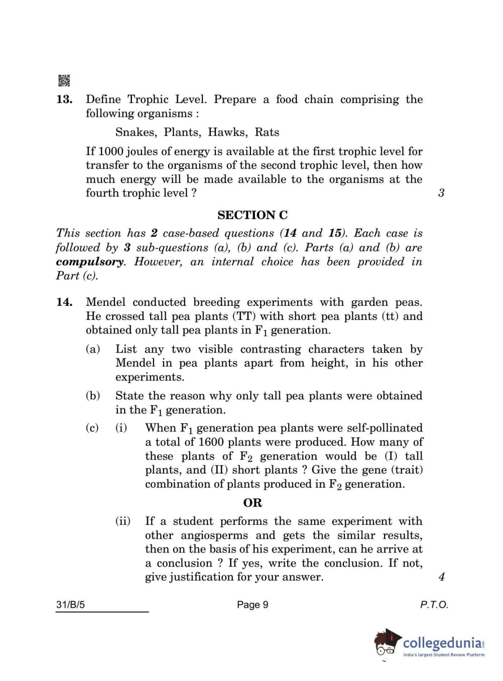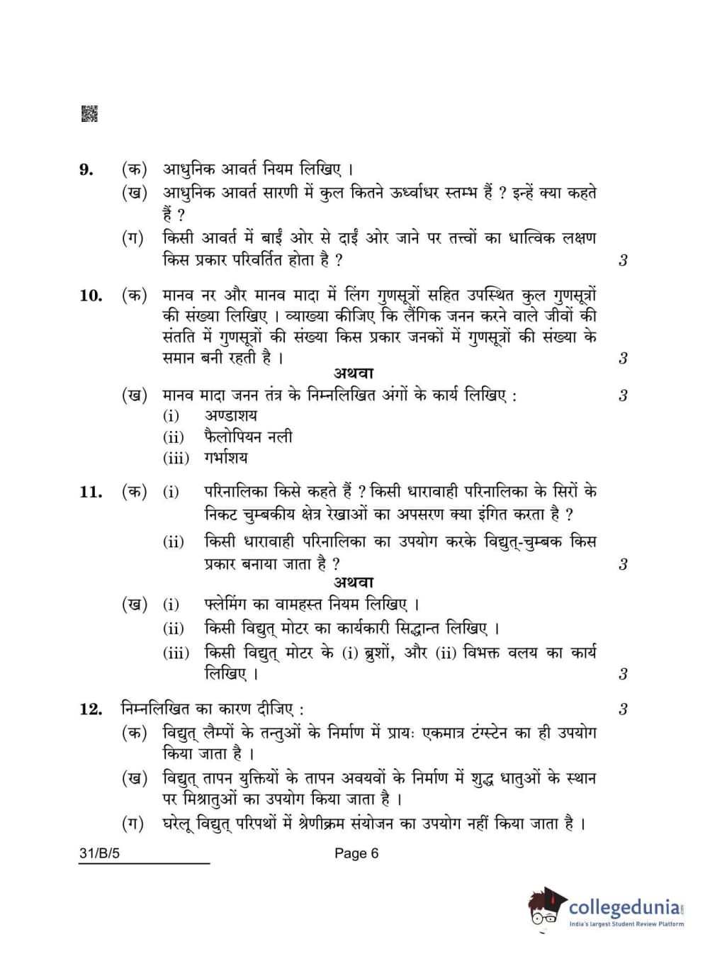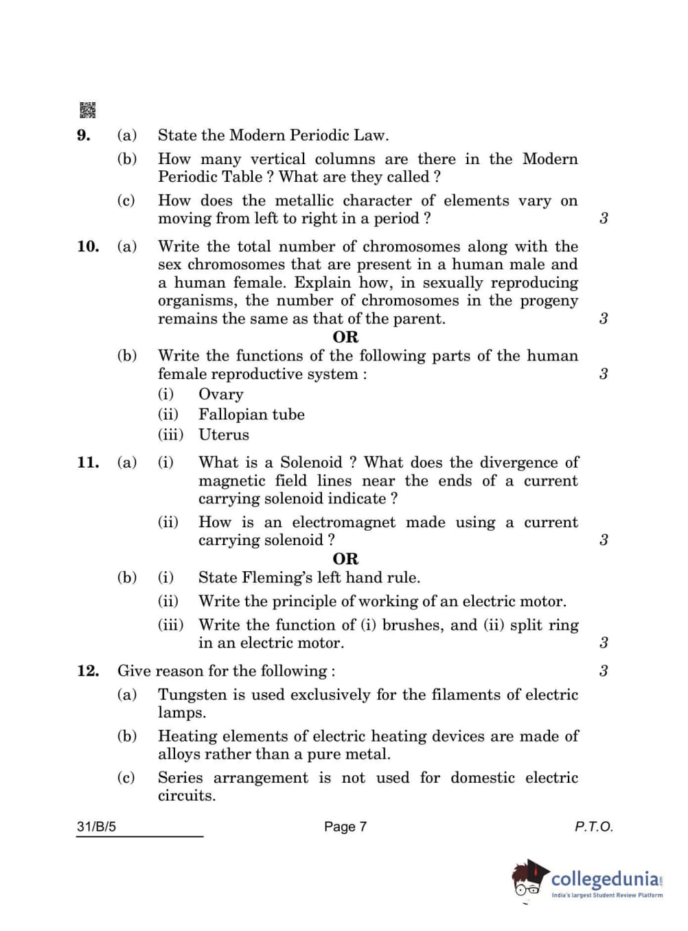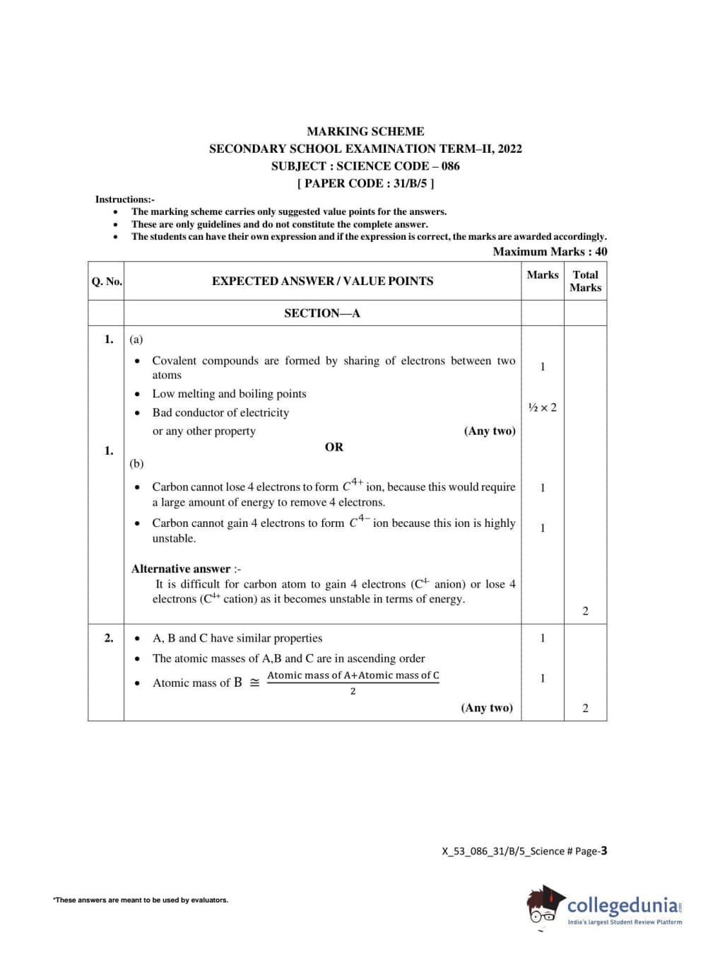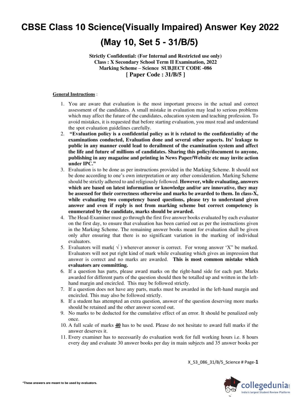 CBSE Class 10 Science(Visually Impaired) Set 5 - 31/B/5 Question Paper 2022 with Answer Key (May 10)