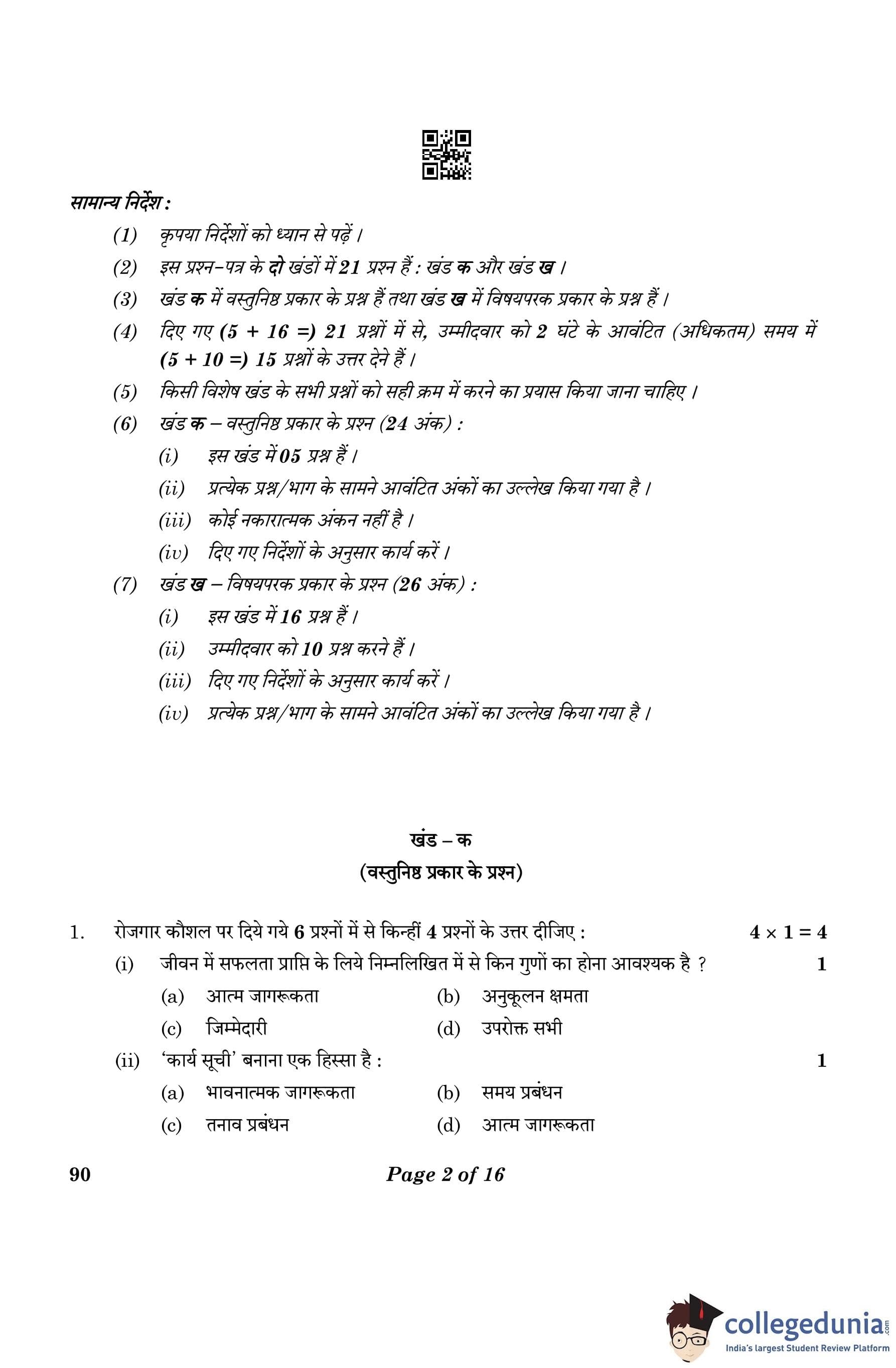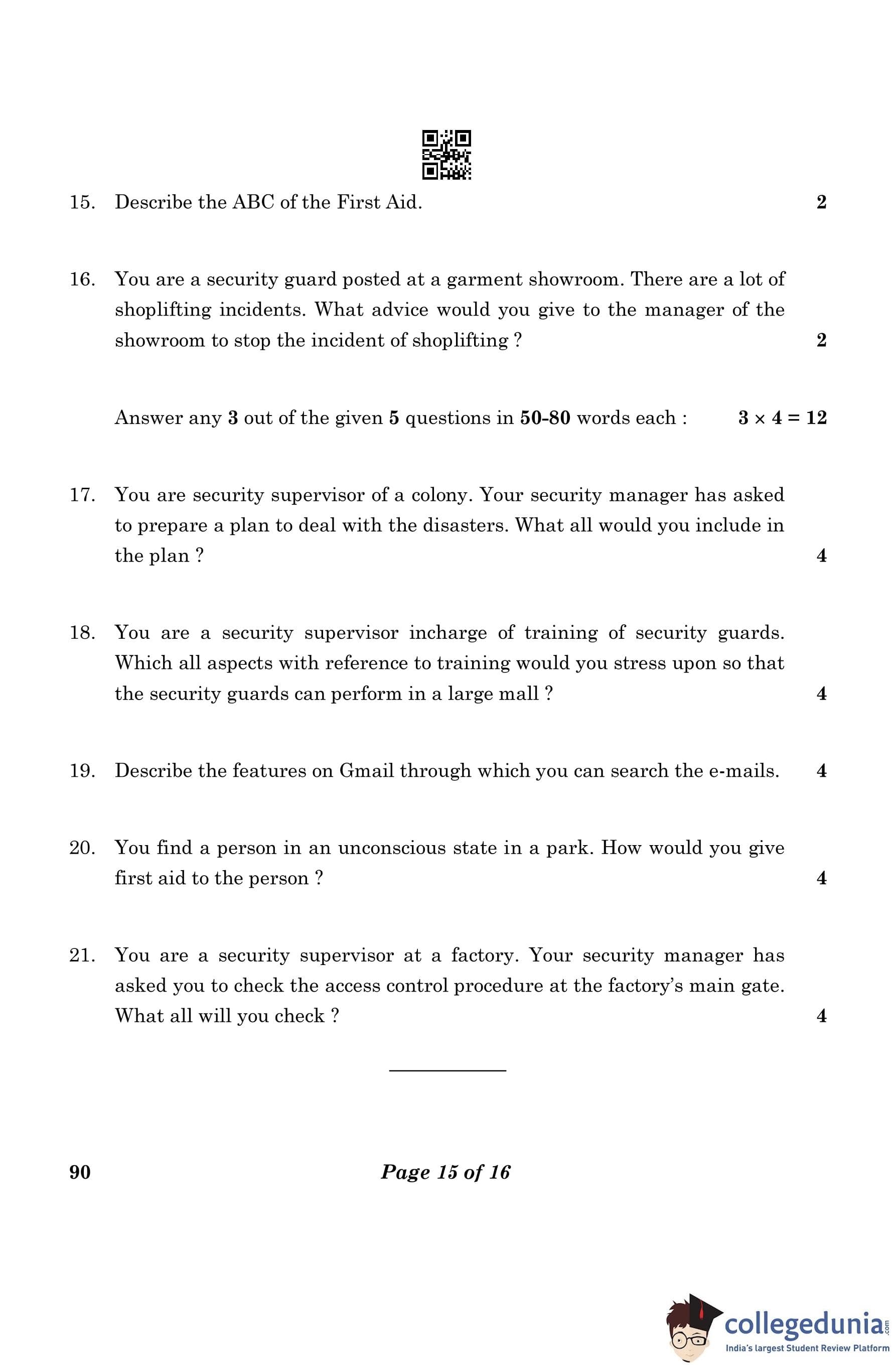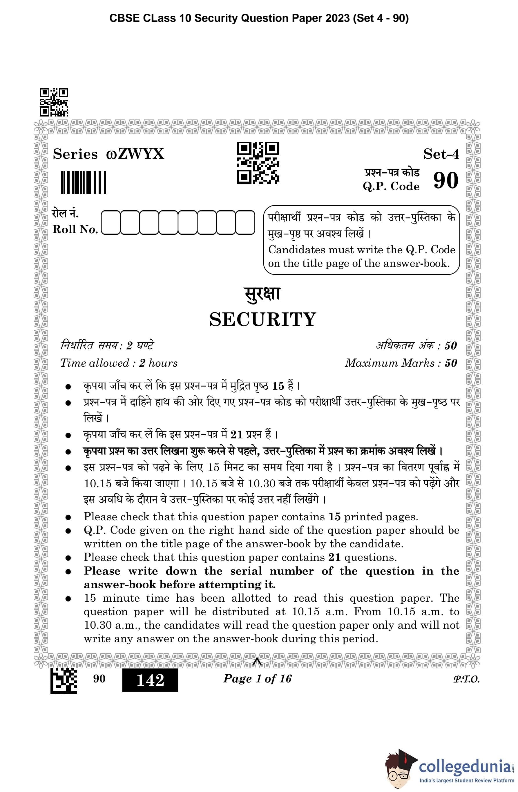 CBSE Class 10 Security Question Paper 2023 (Set 4- 90) with Answer Key pdf is available for download here. The exam was conducted by Central Board of Secondary Education on February 16, 2023. The question paper comprised a total of 21 questions divided among 2 sections.