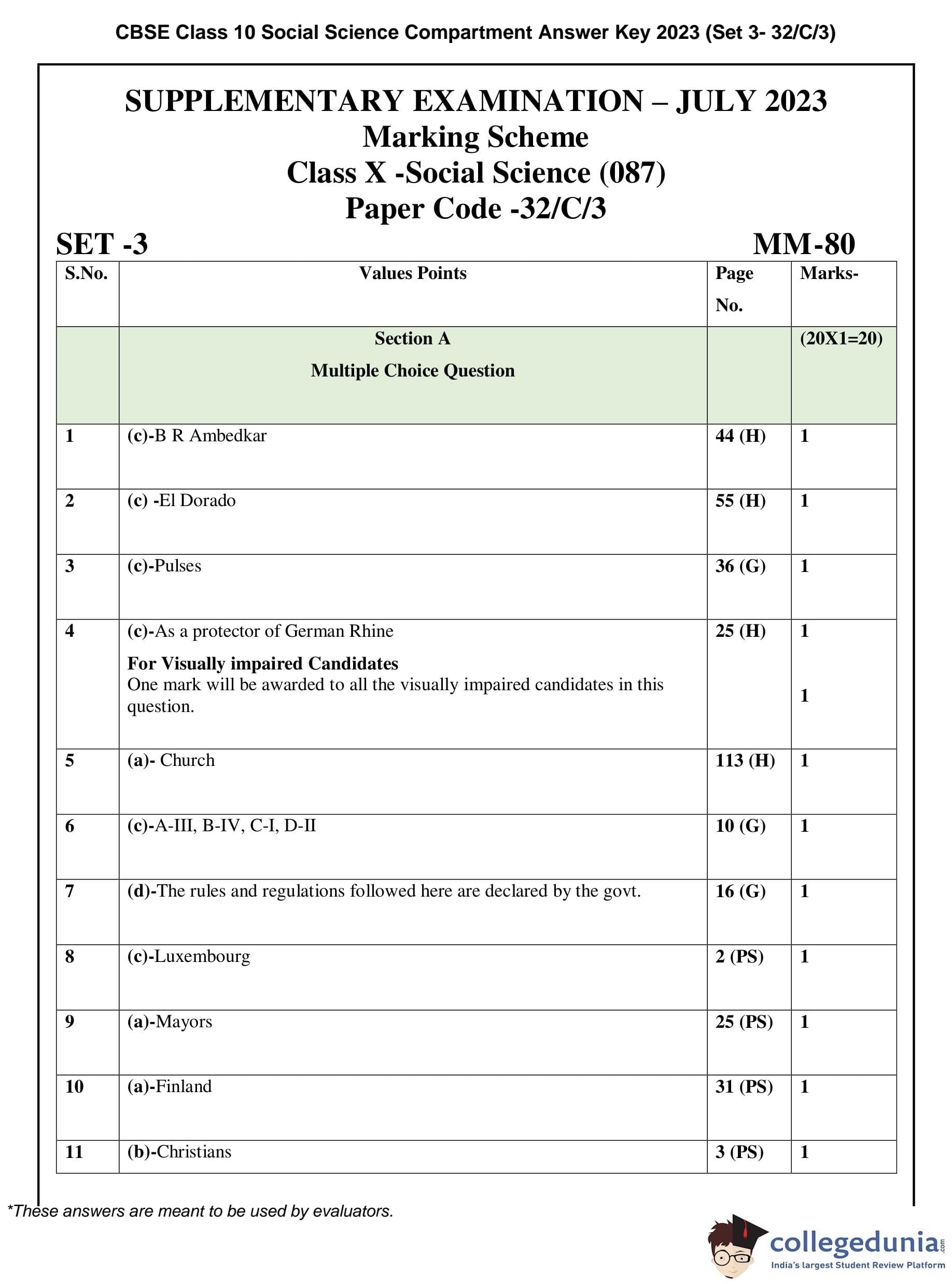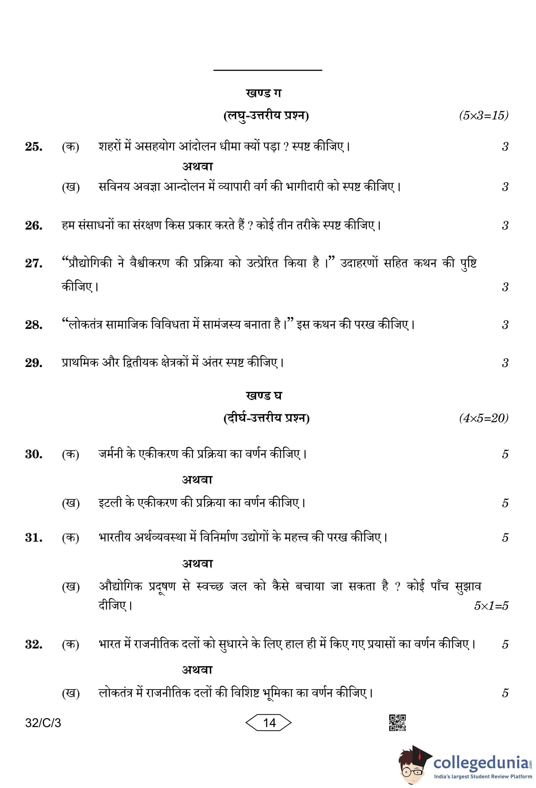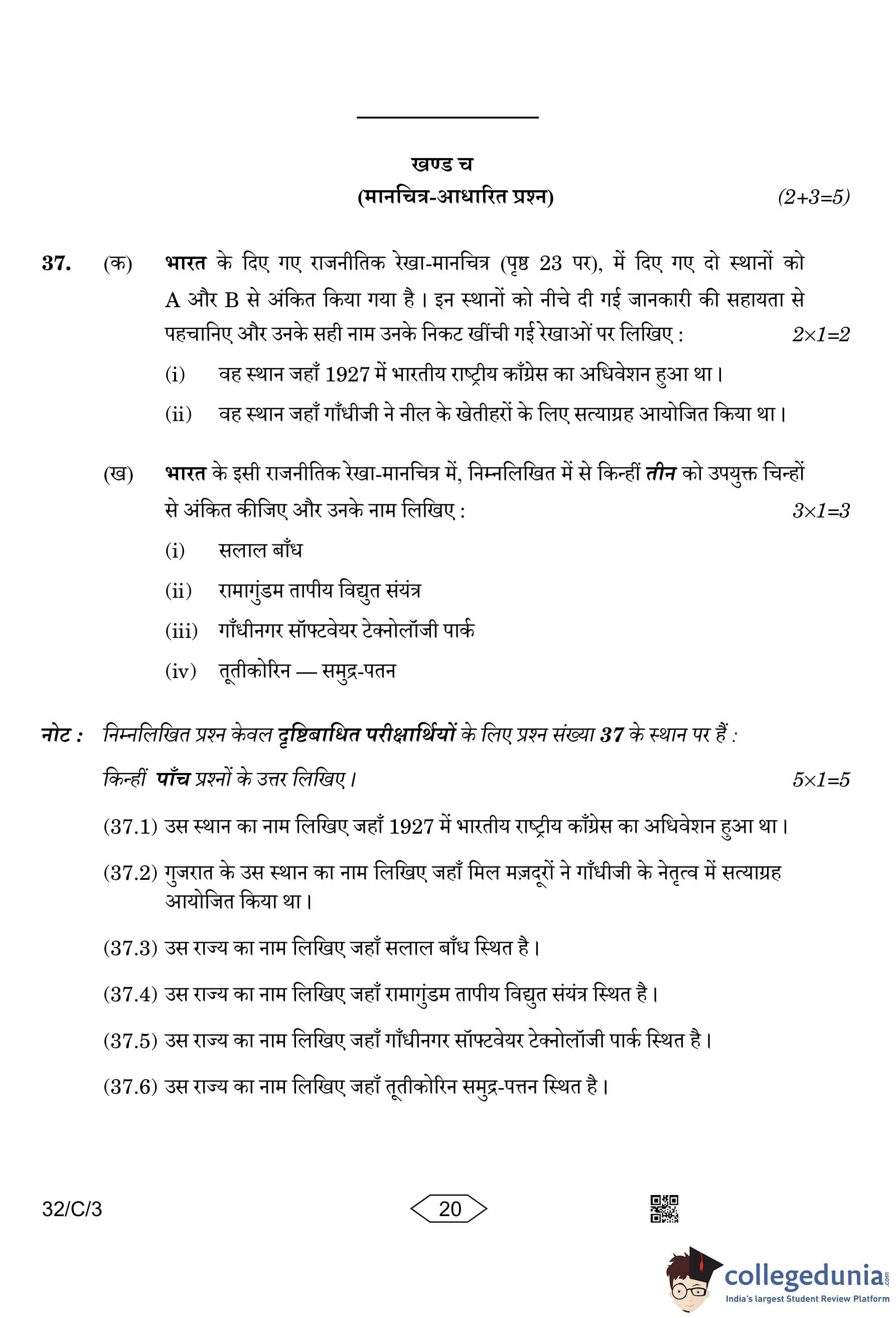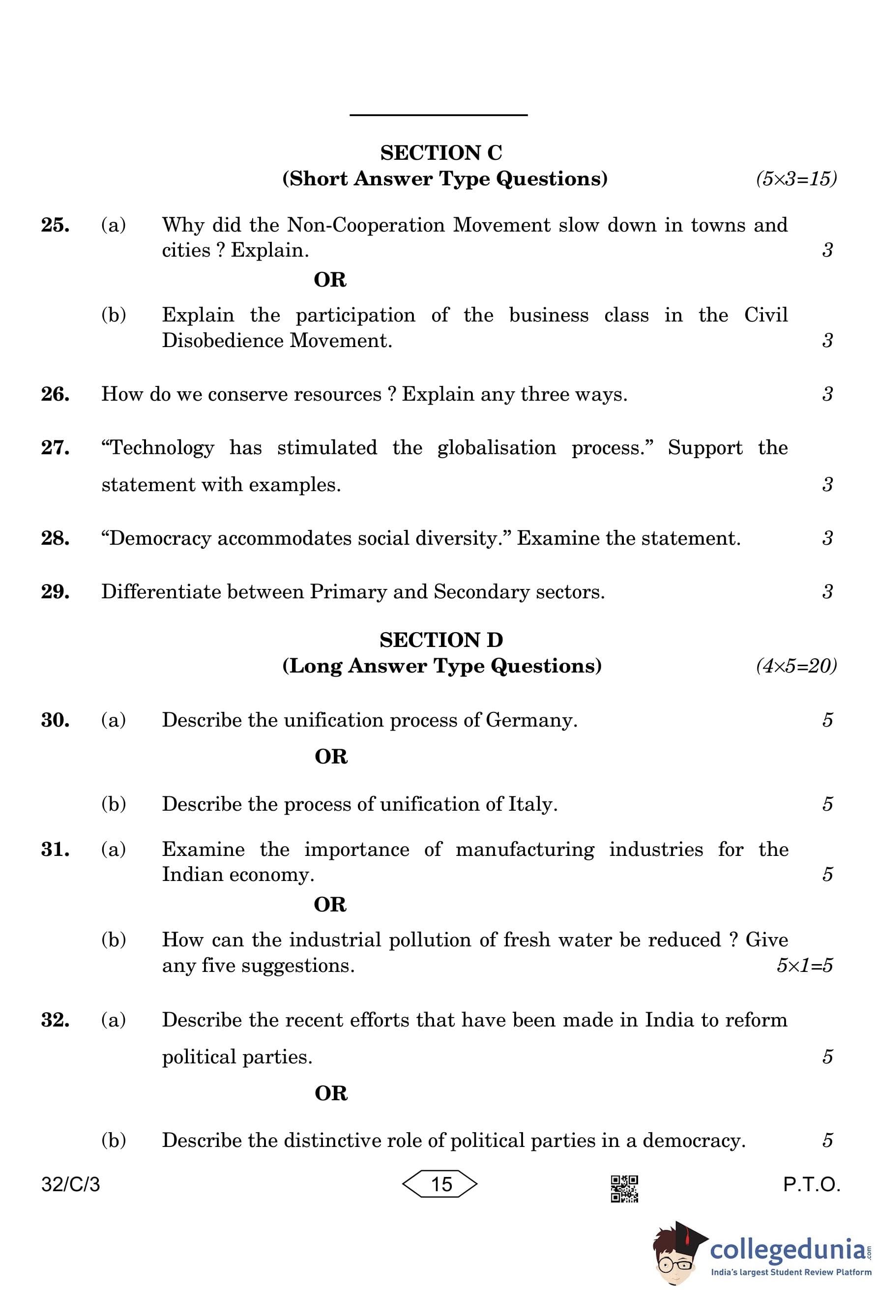 CBSE Class 10 Social Science (Set 3- 32/C/3) Compartment Question Paper 2023 with Answer Key