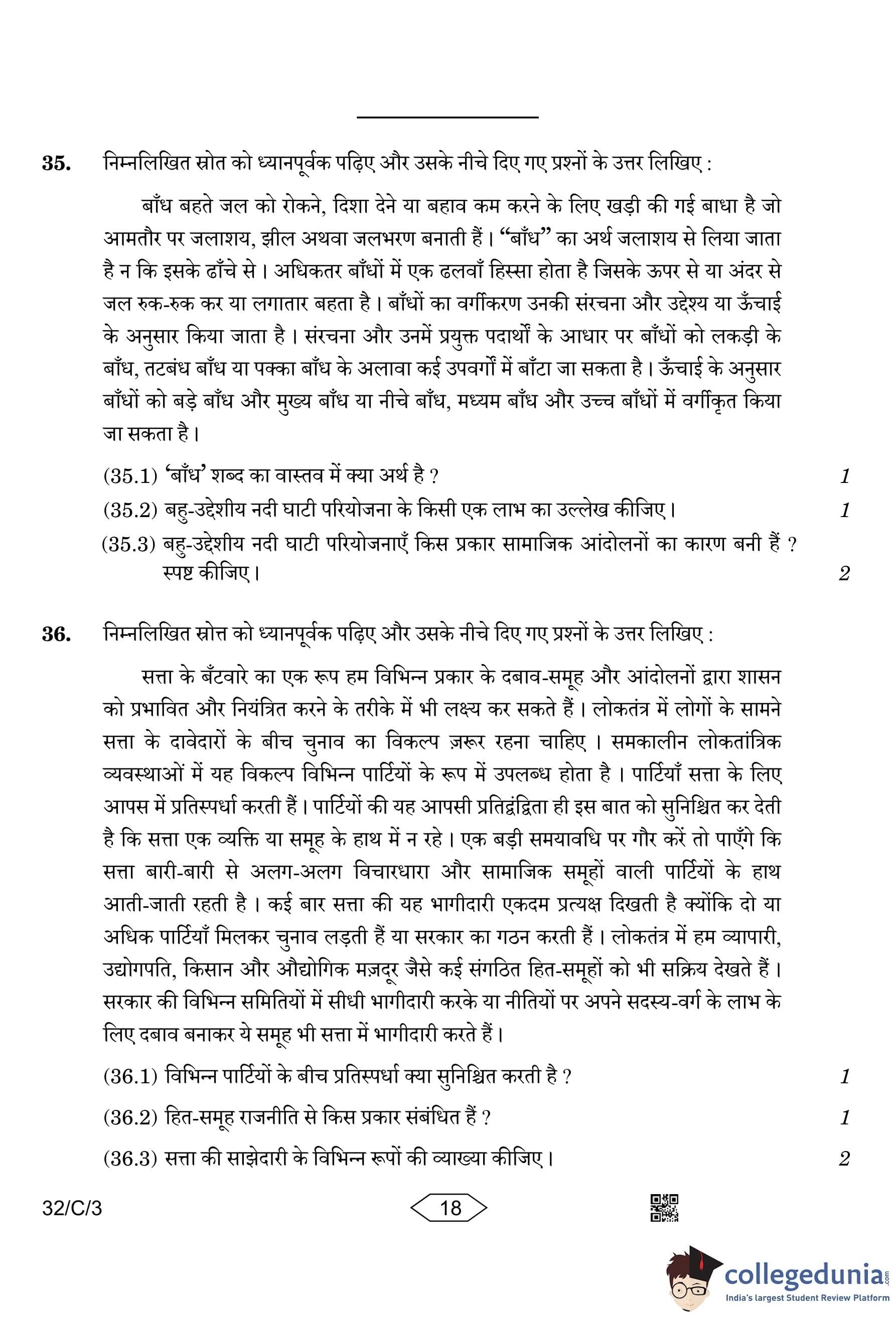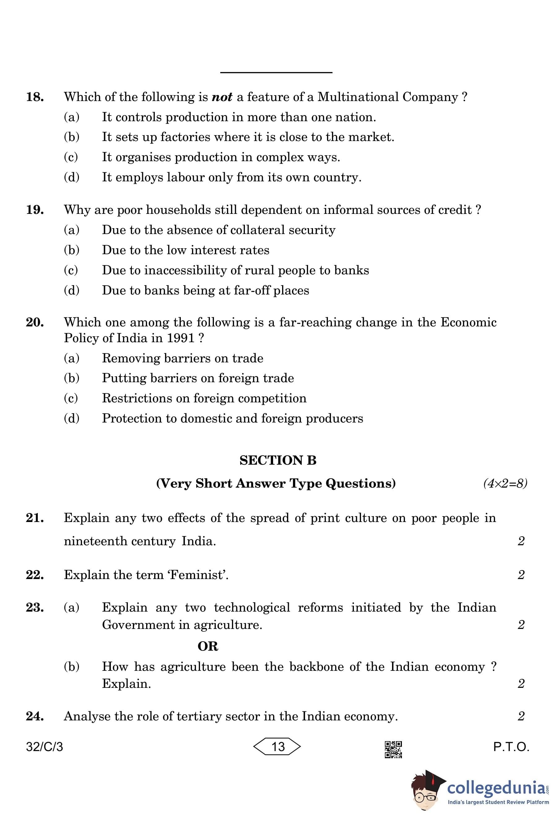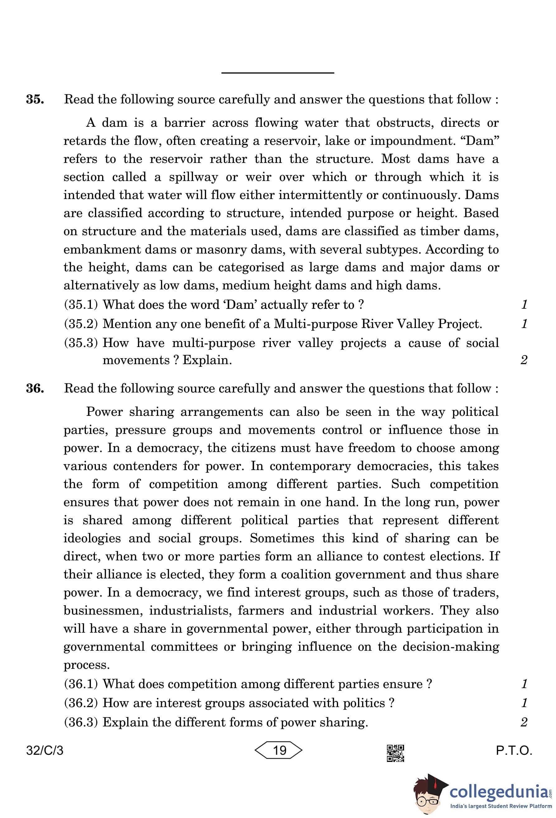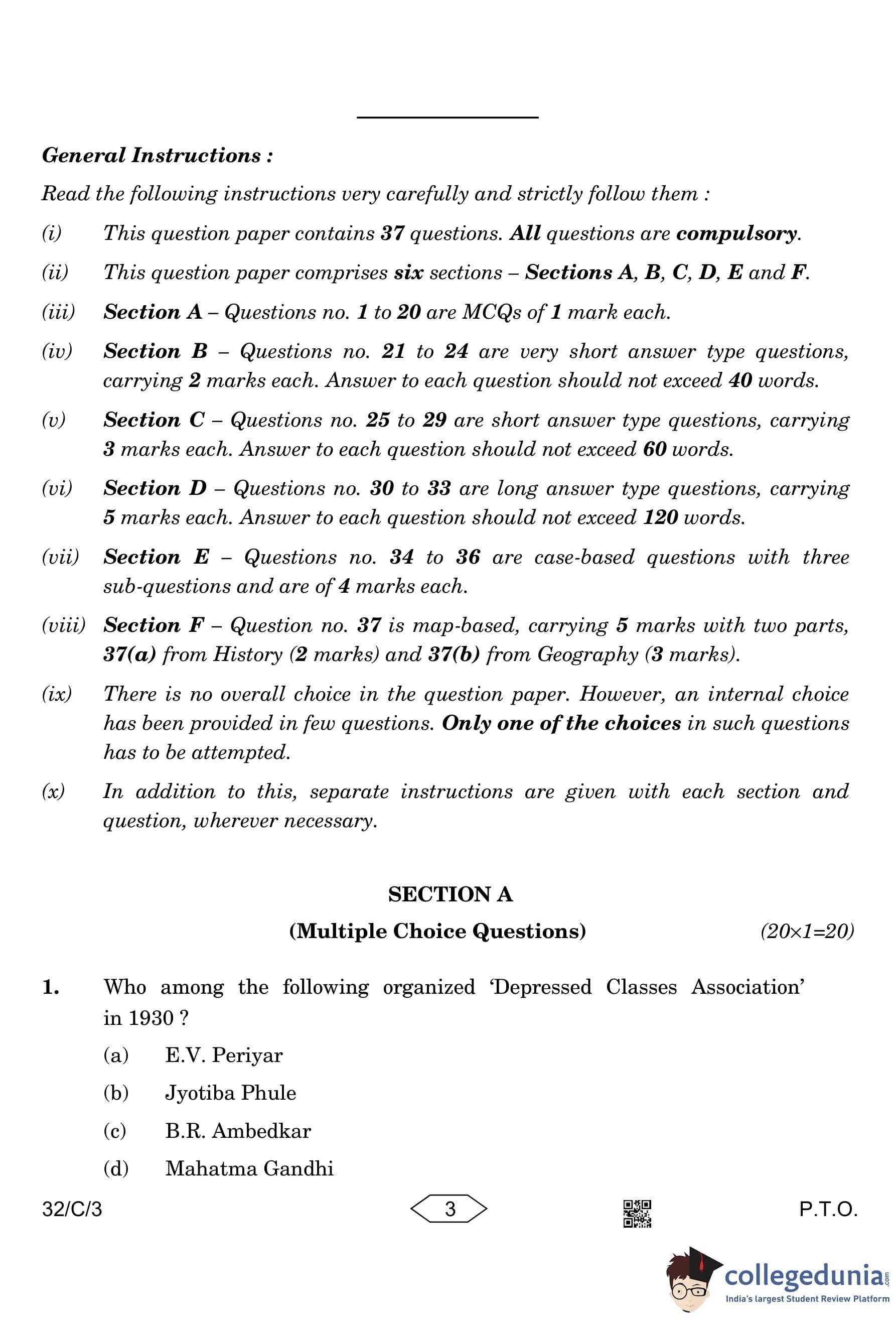 CBSE Class 10 Social Science (Set 3- 32/C/3) Compartment Question Paper 2023 with Answer Key