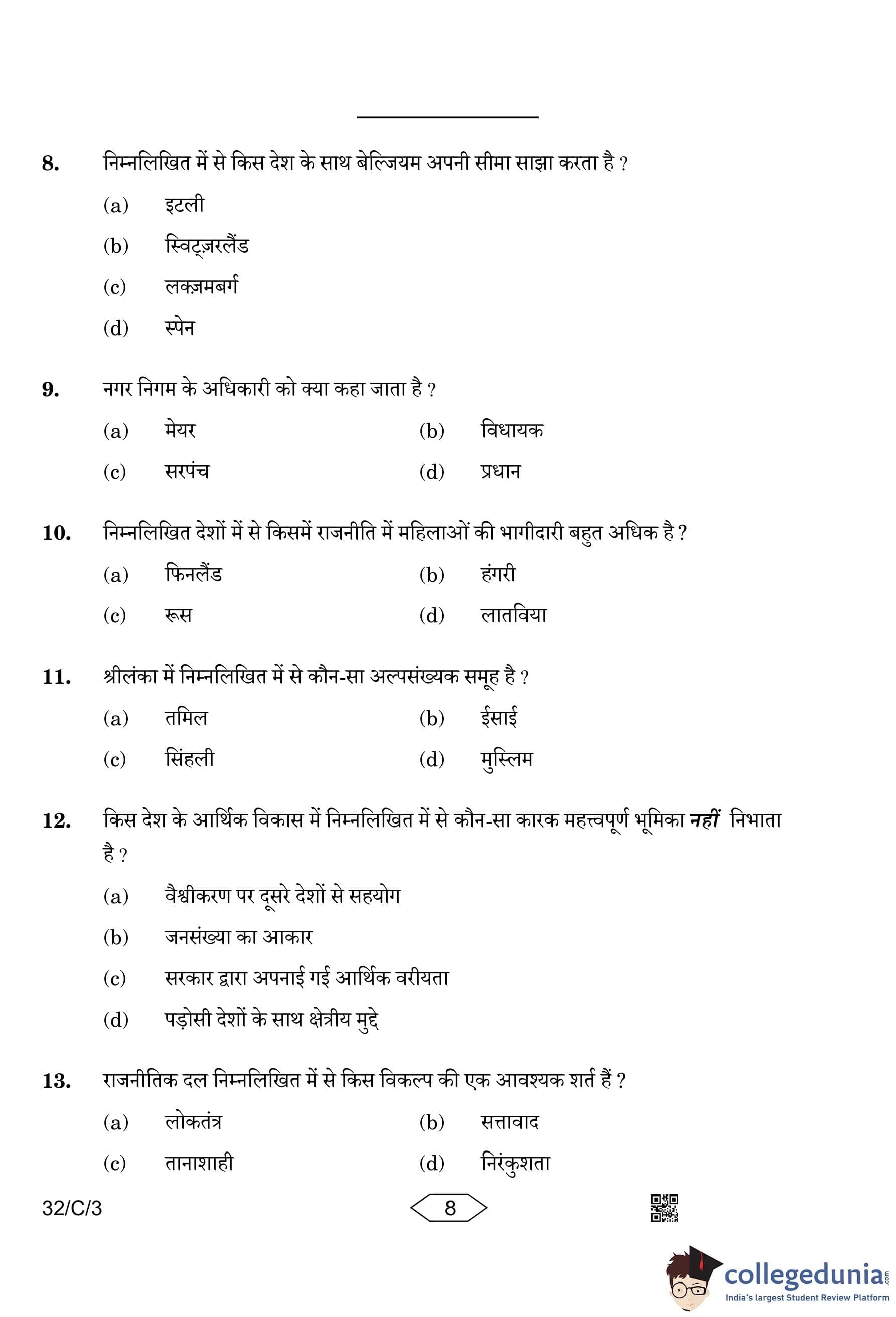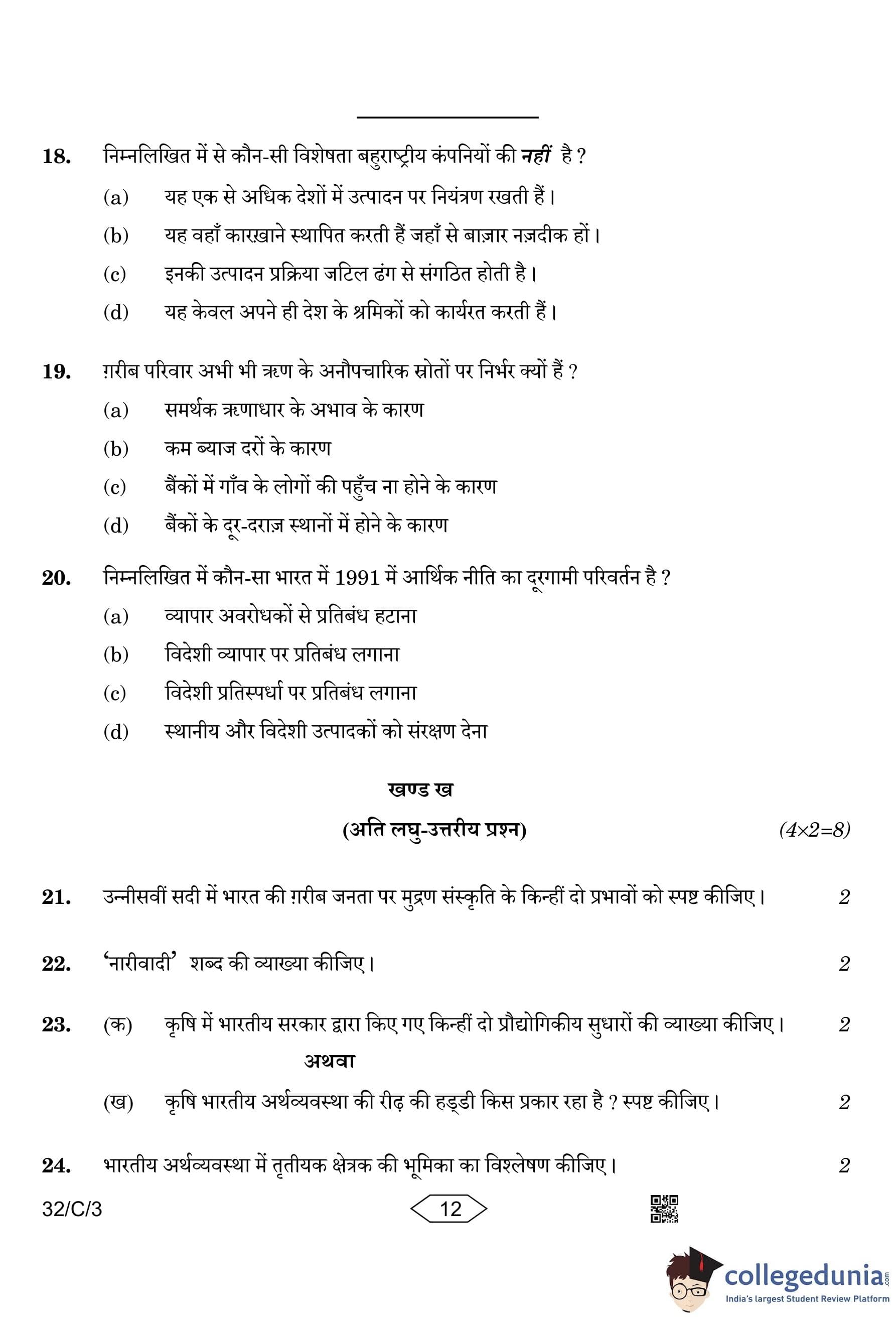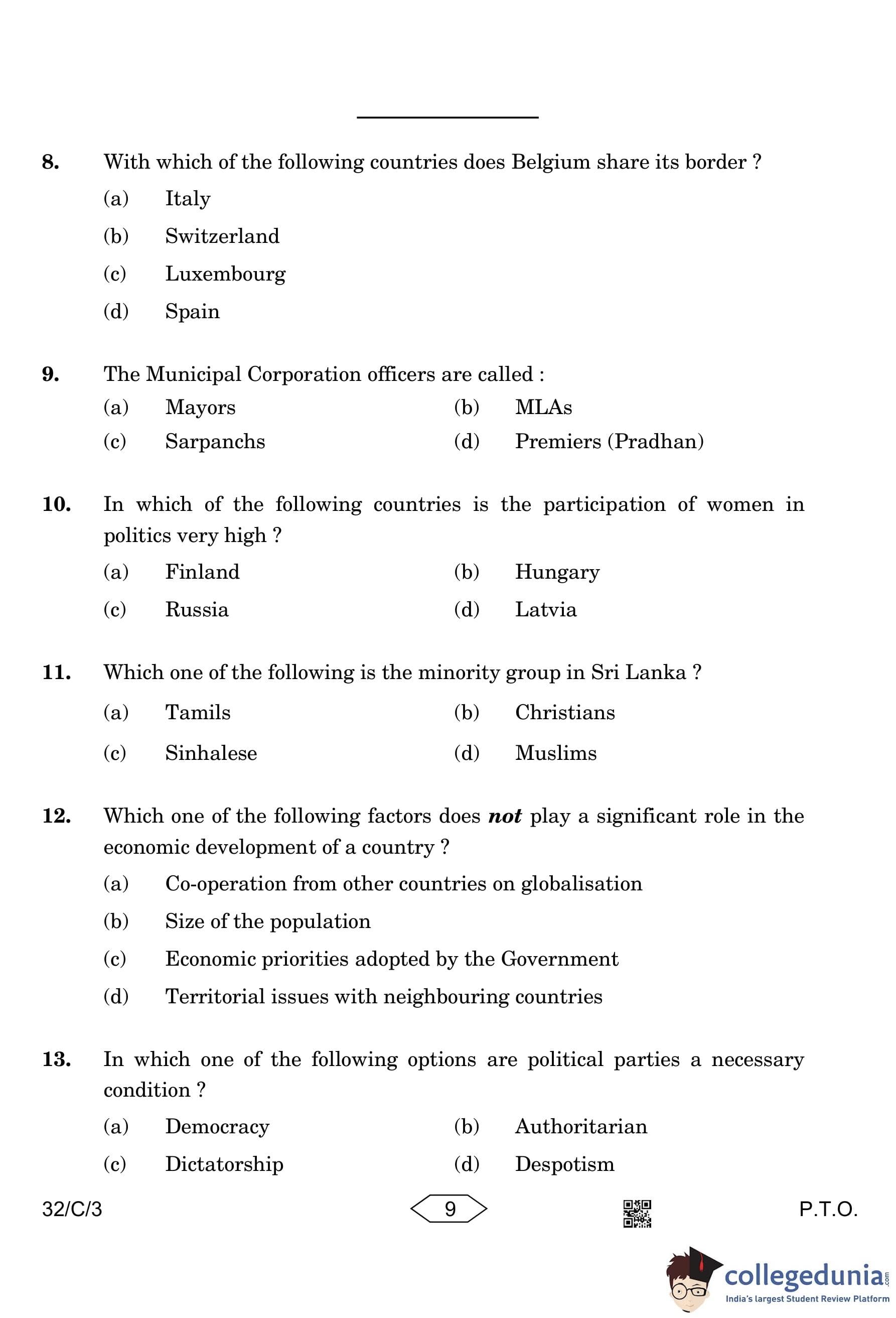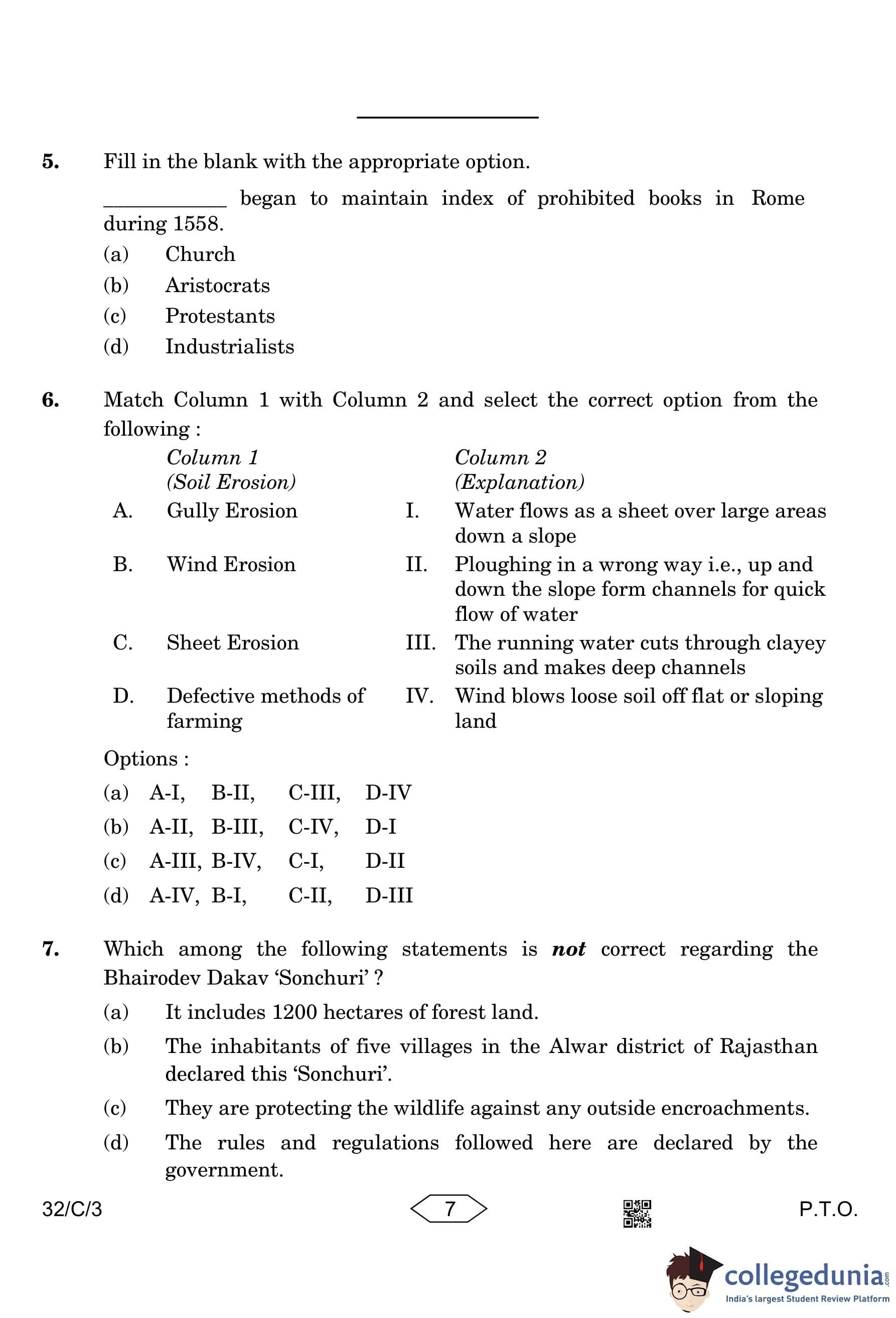 CBSE Class 10 Social Science (Set 3- 32/C/3) Compartment Question Paper 2023 with Answer Key