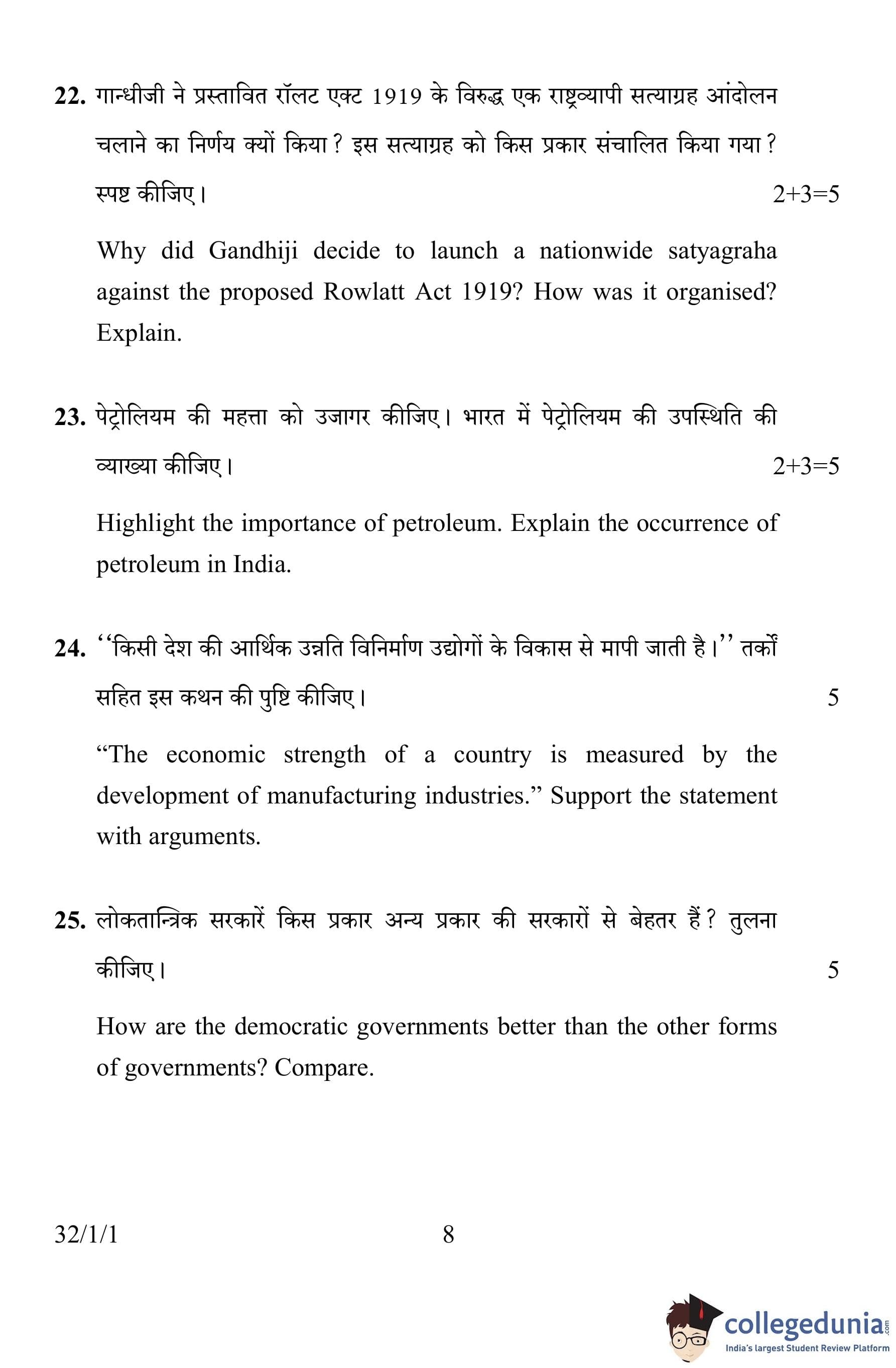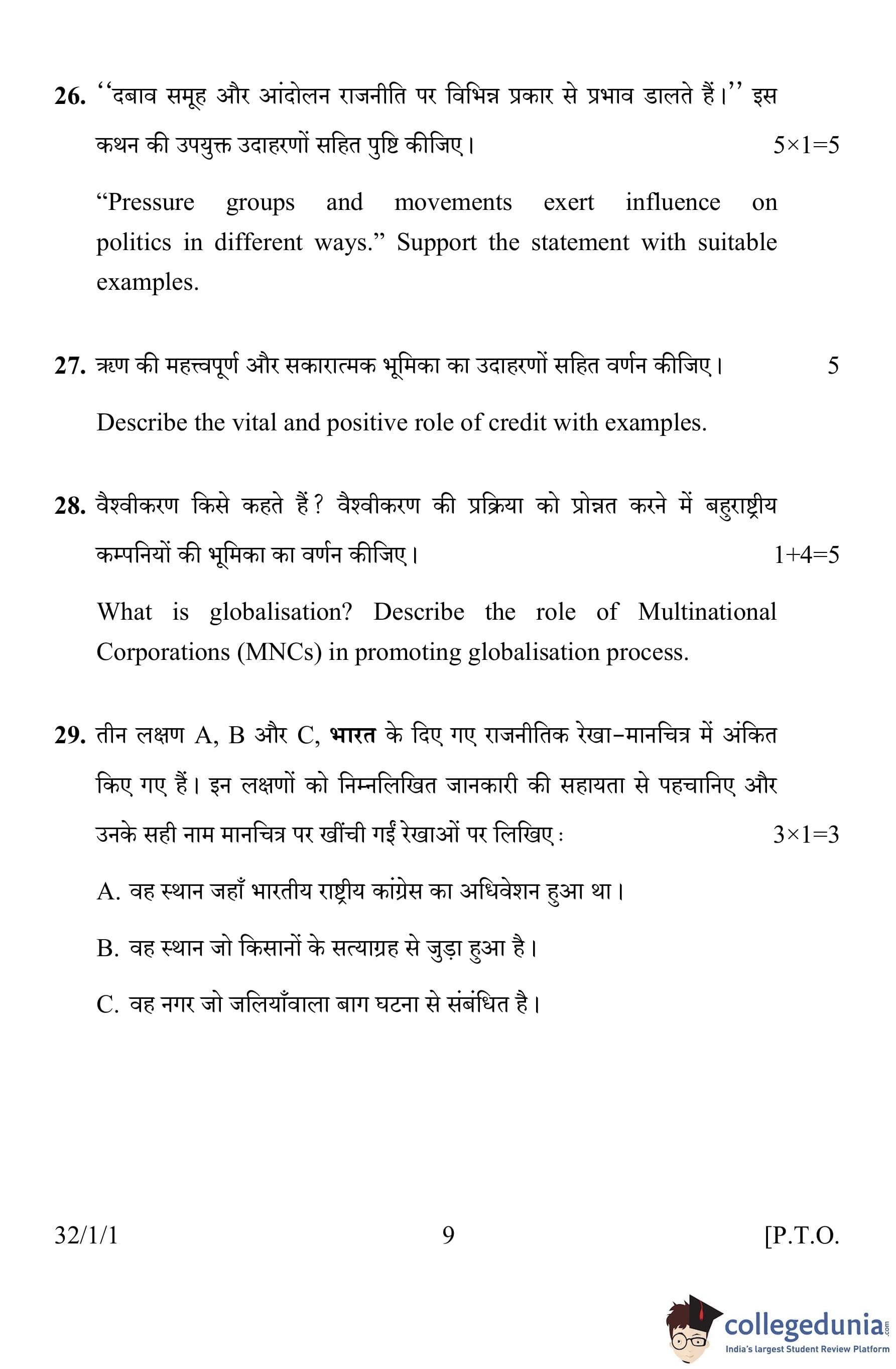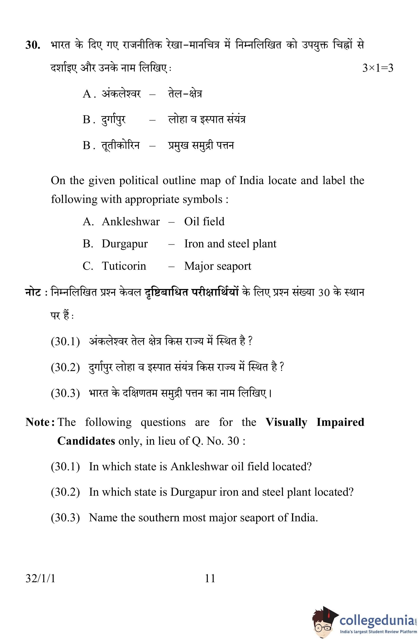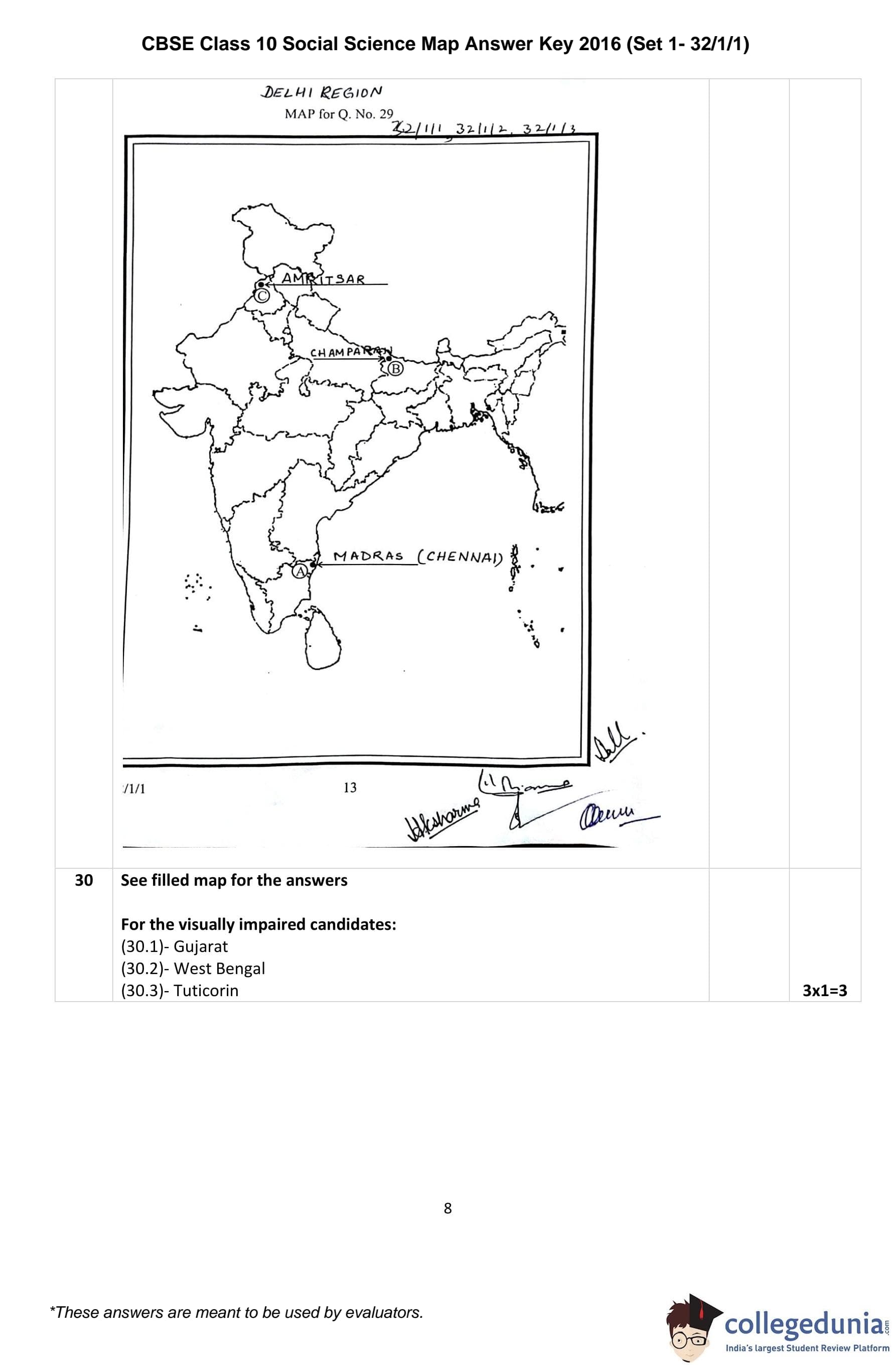 CBSE Class 10 Social Science Map Set 1- 32/1/1 Question Paper 2016 with Answer Key