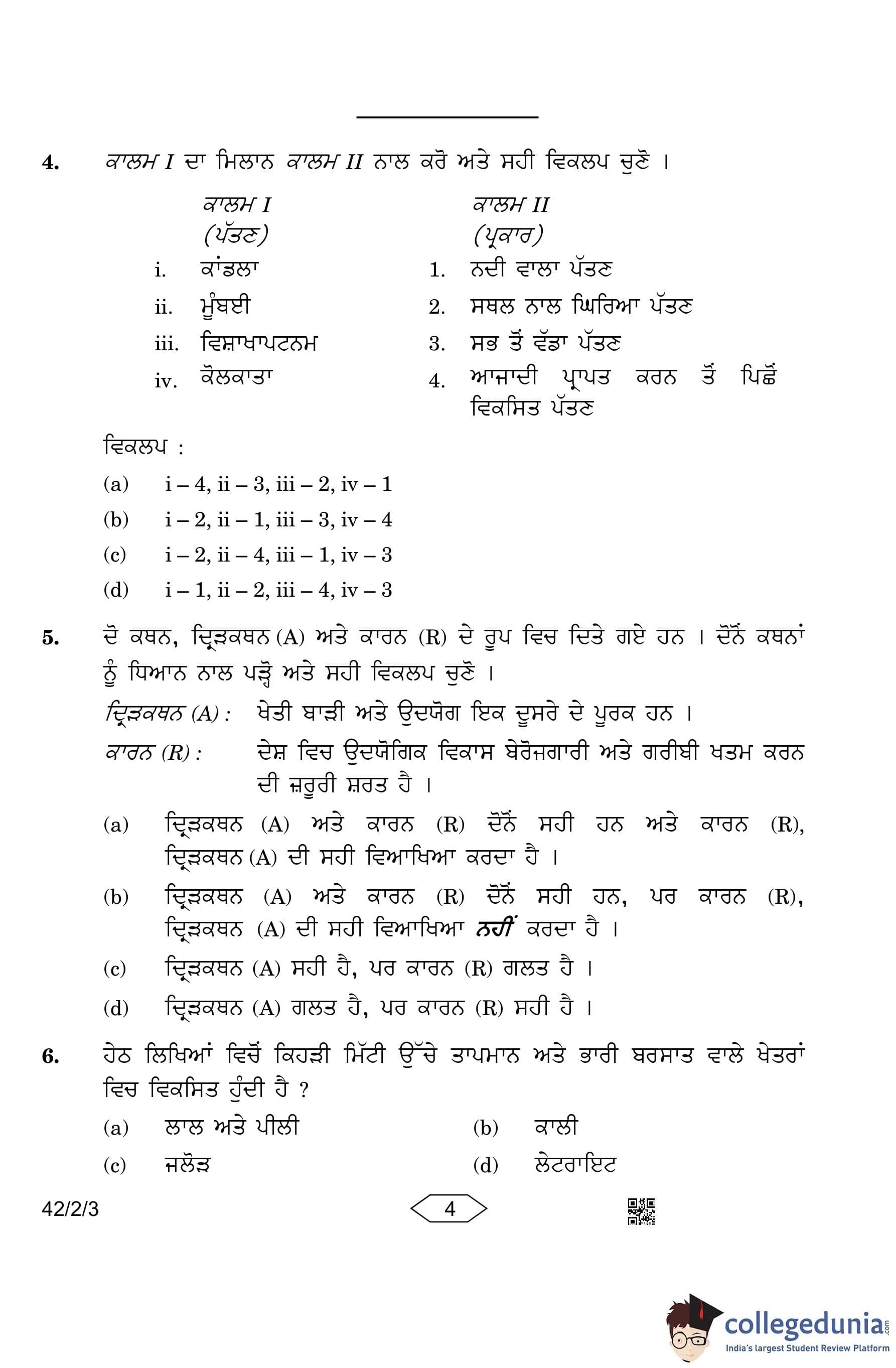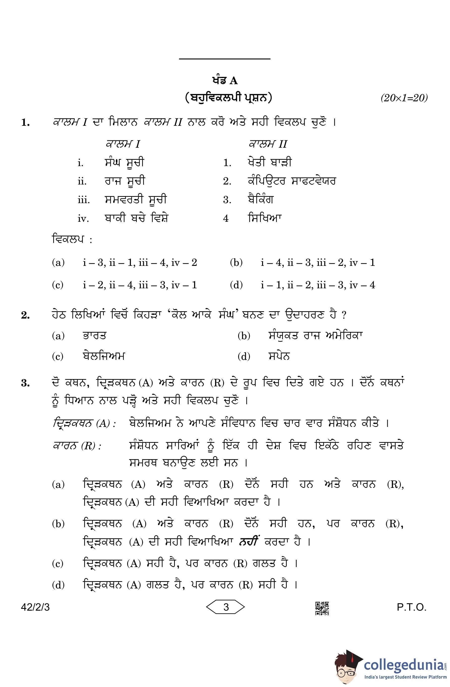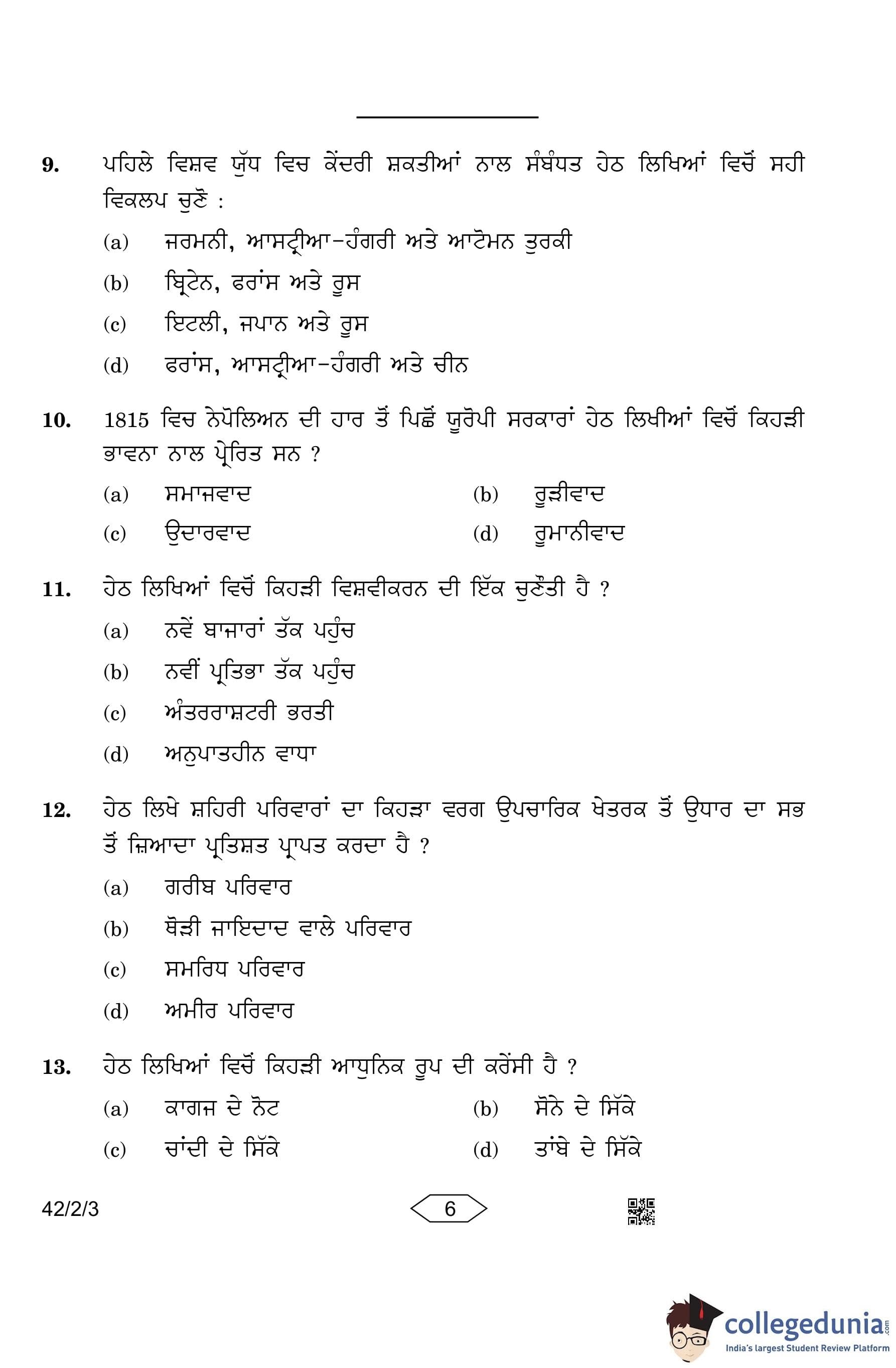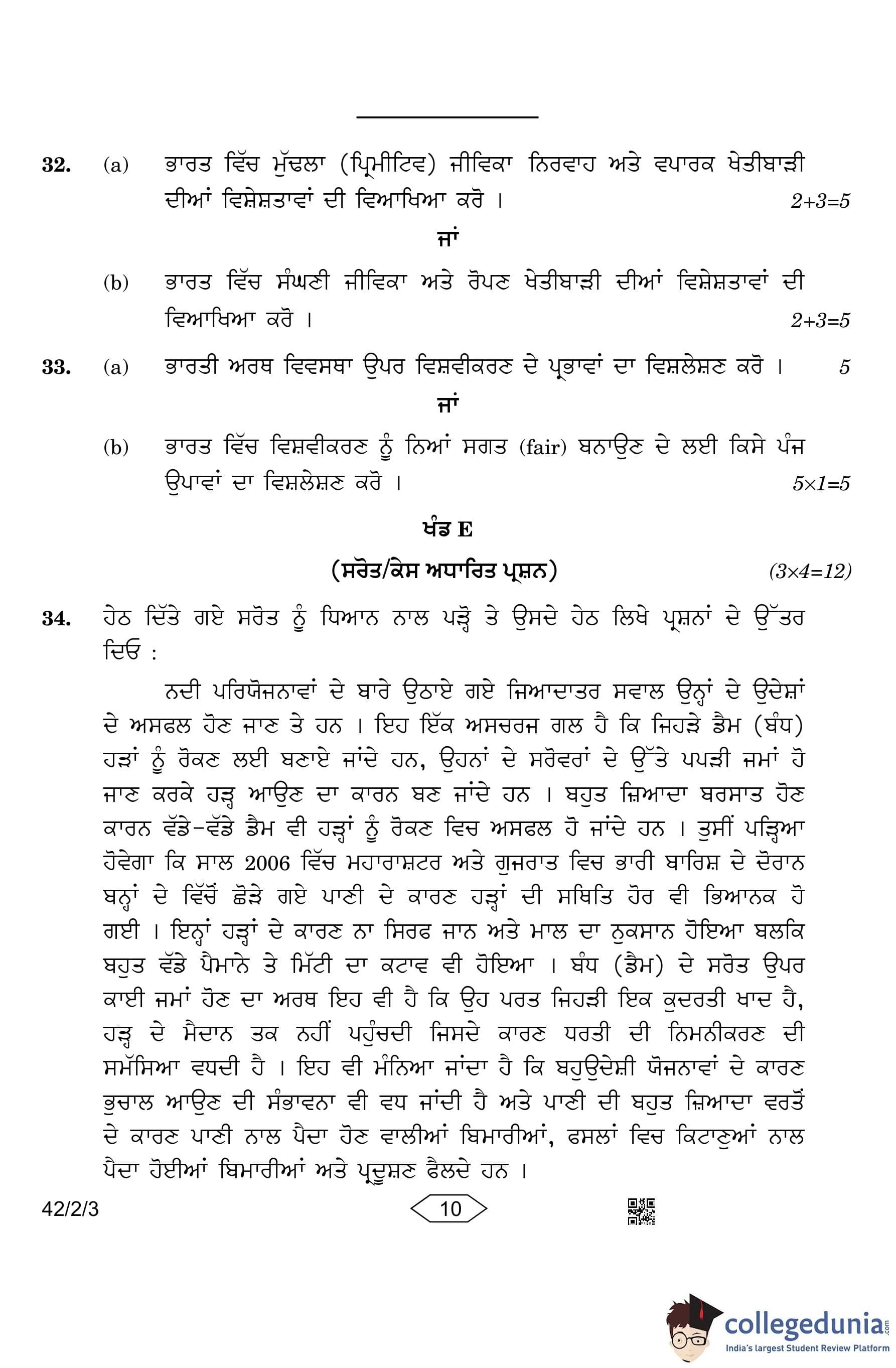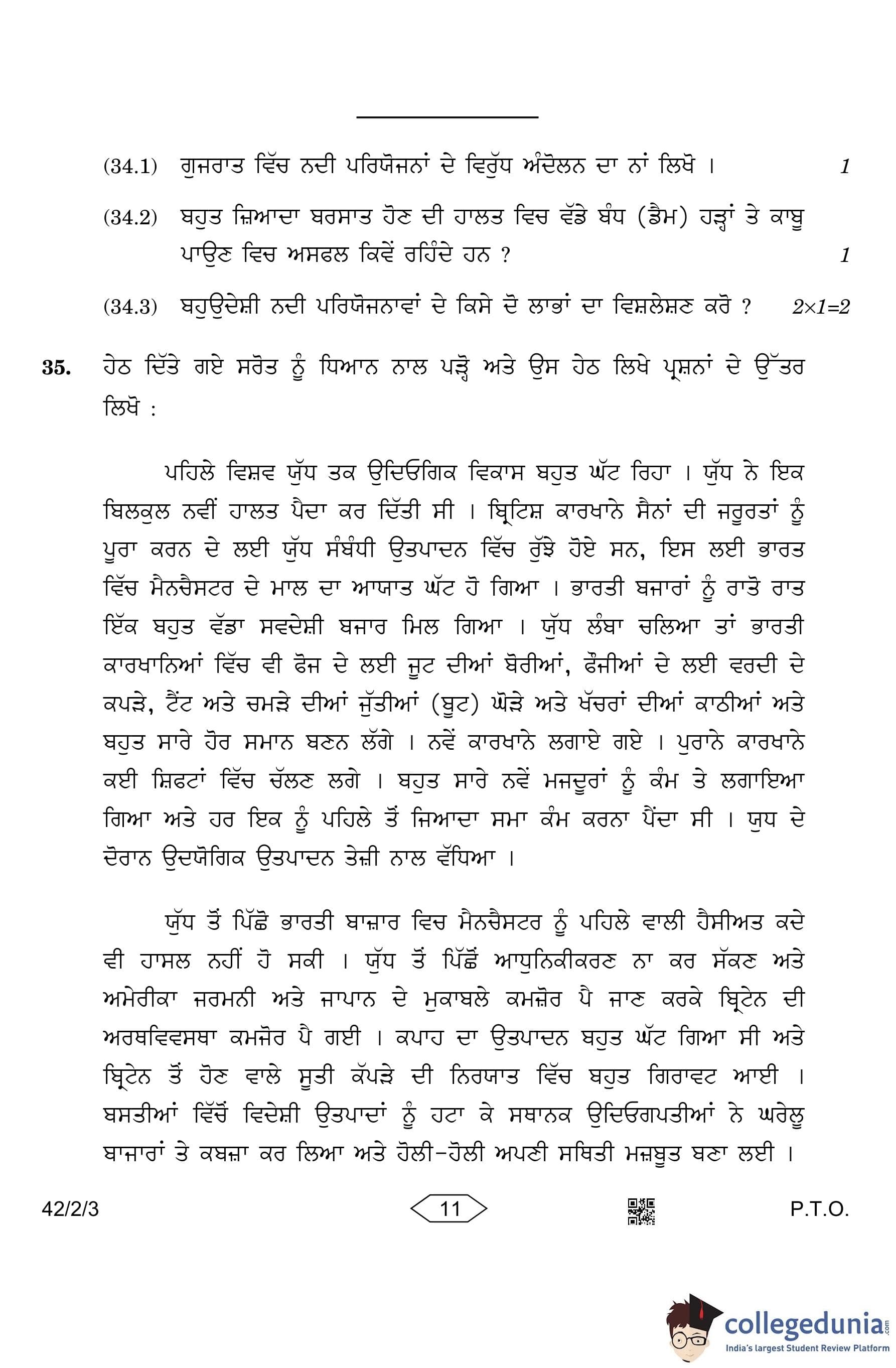 CBSE Class 10 Social Science (Set 3- 42/2/3) Punjabi Question Paper 2023 with Answer Key