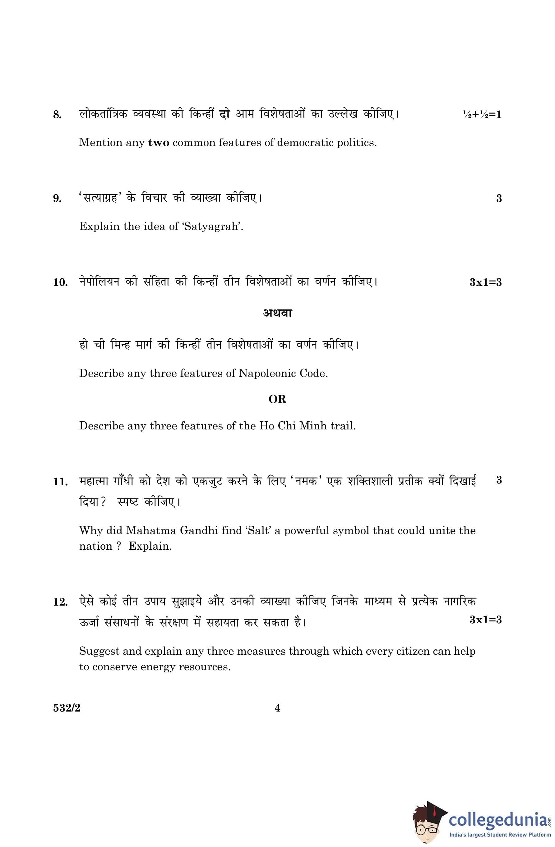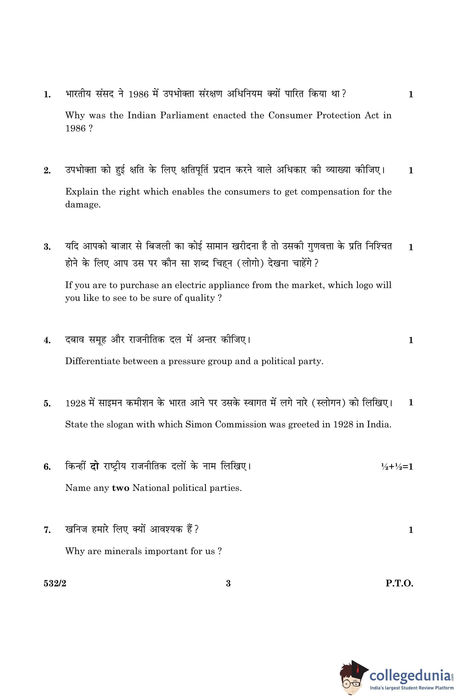 CBSE Class 10 Social Science Question Paper 2016 with Answer Key Set 2- 532/2 is available for download. The exam was conducted by the Central Board of Secondary Education on March 10, 2016 in the Morning Session 10:30 AM to 1:30 PM. The medium of paper was English and Hindi. The question paper comprised a total of 30 questions.