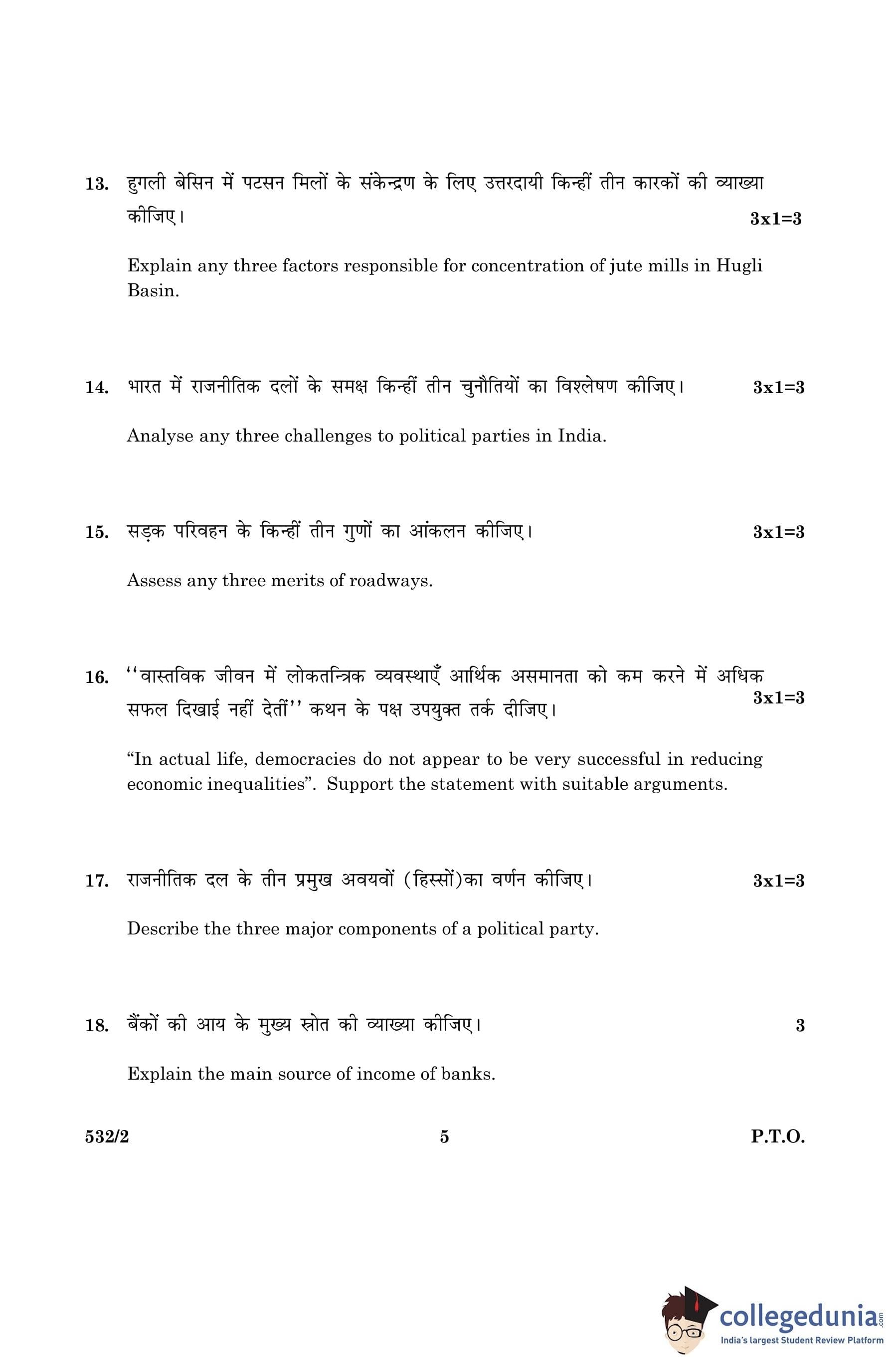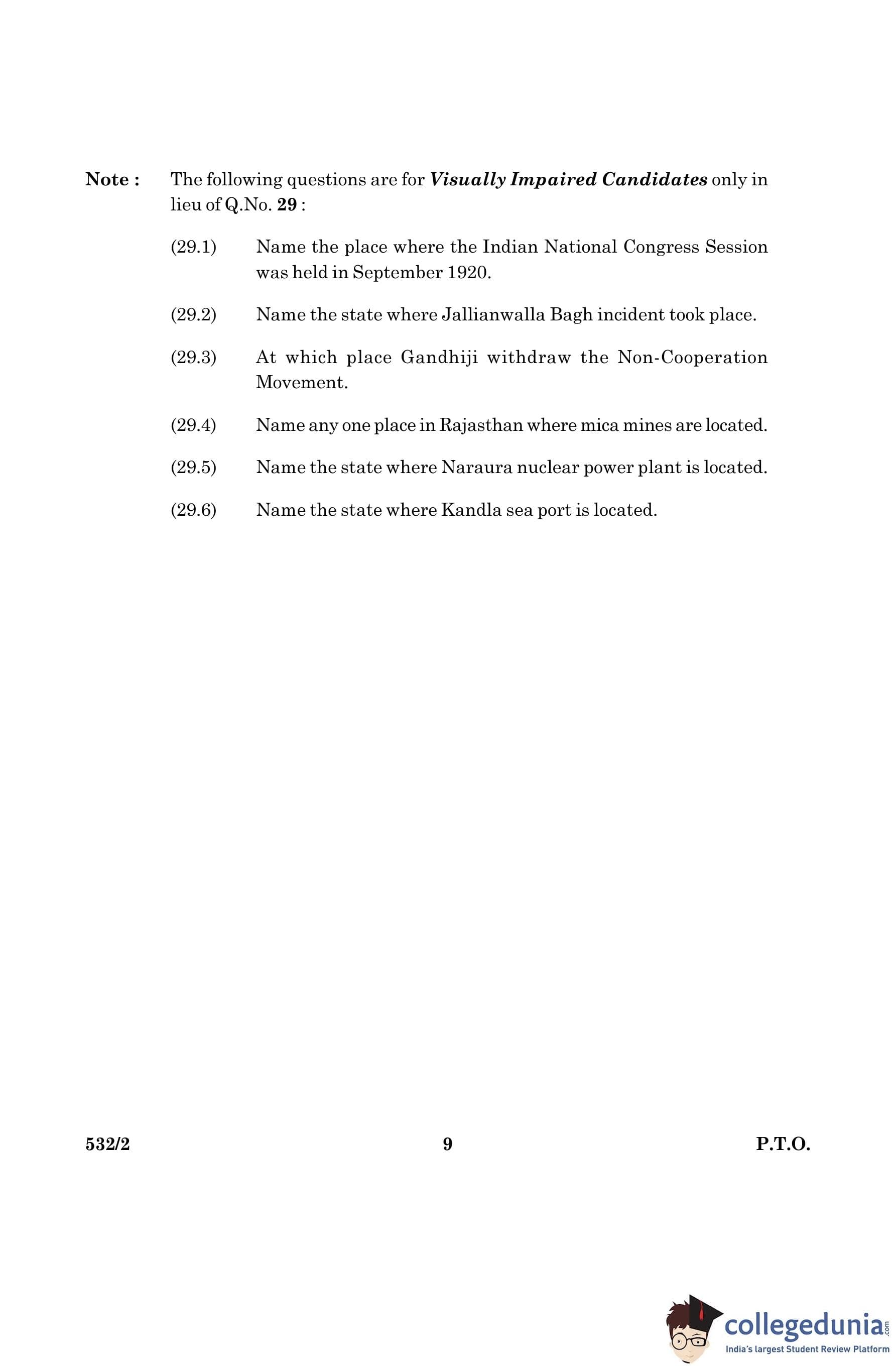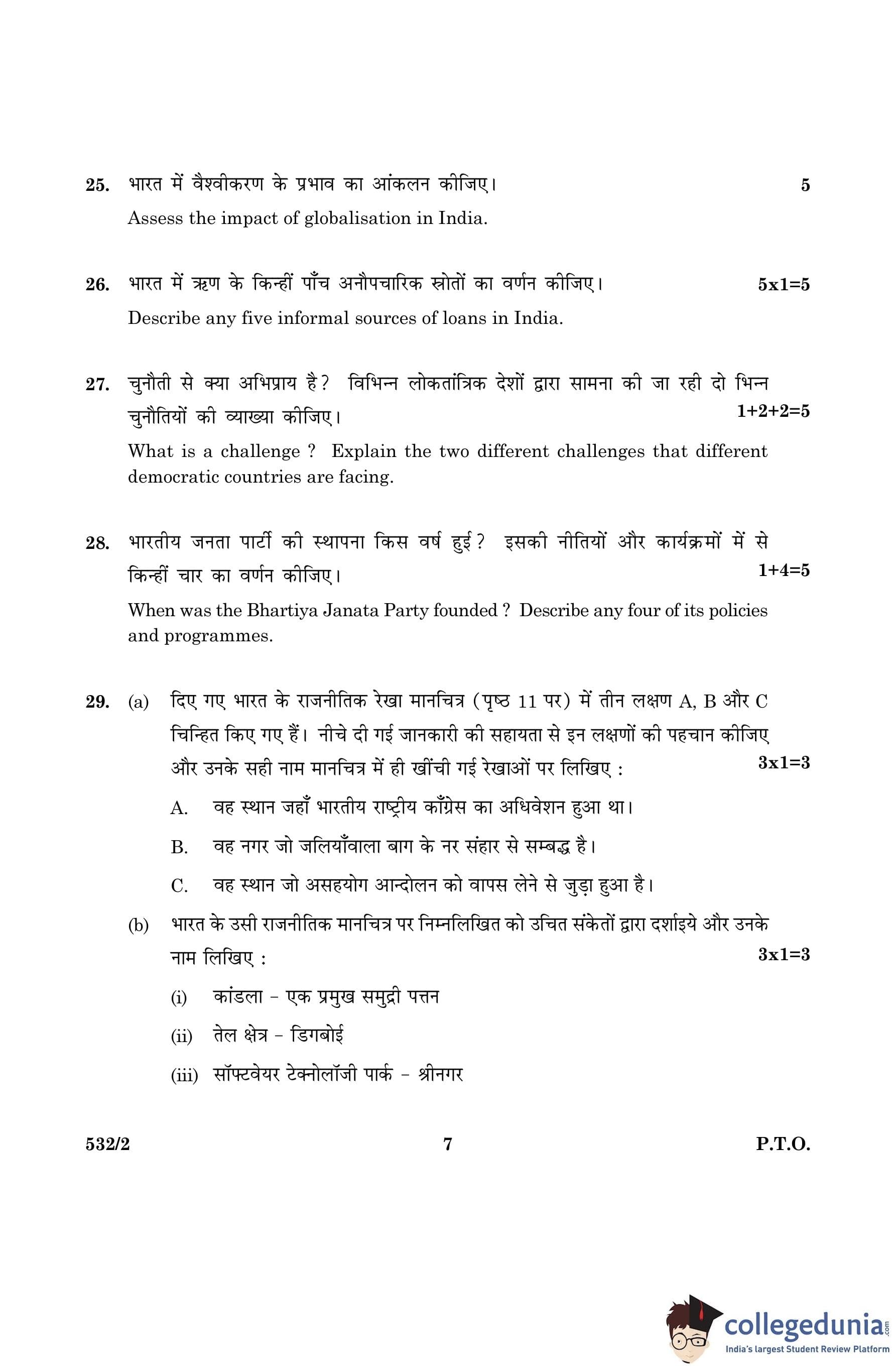 CBSE Class 10 Social Science Set 2- 532/2 Question Paper 2016 with Answer Key (March 10)