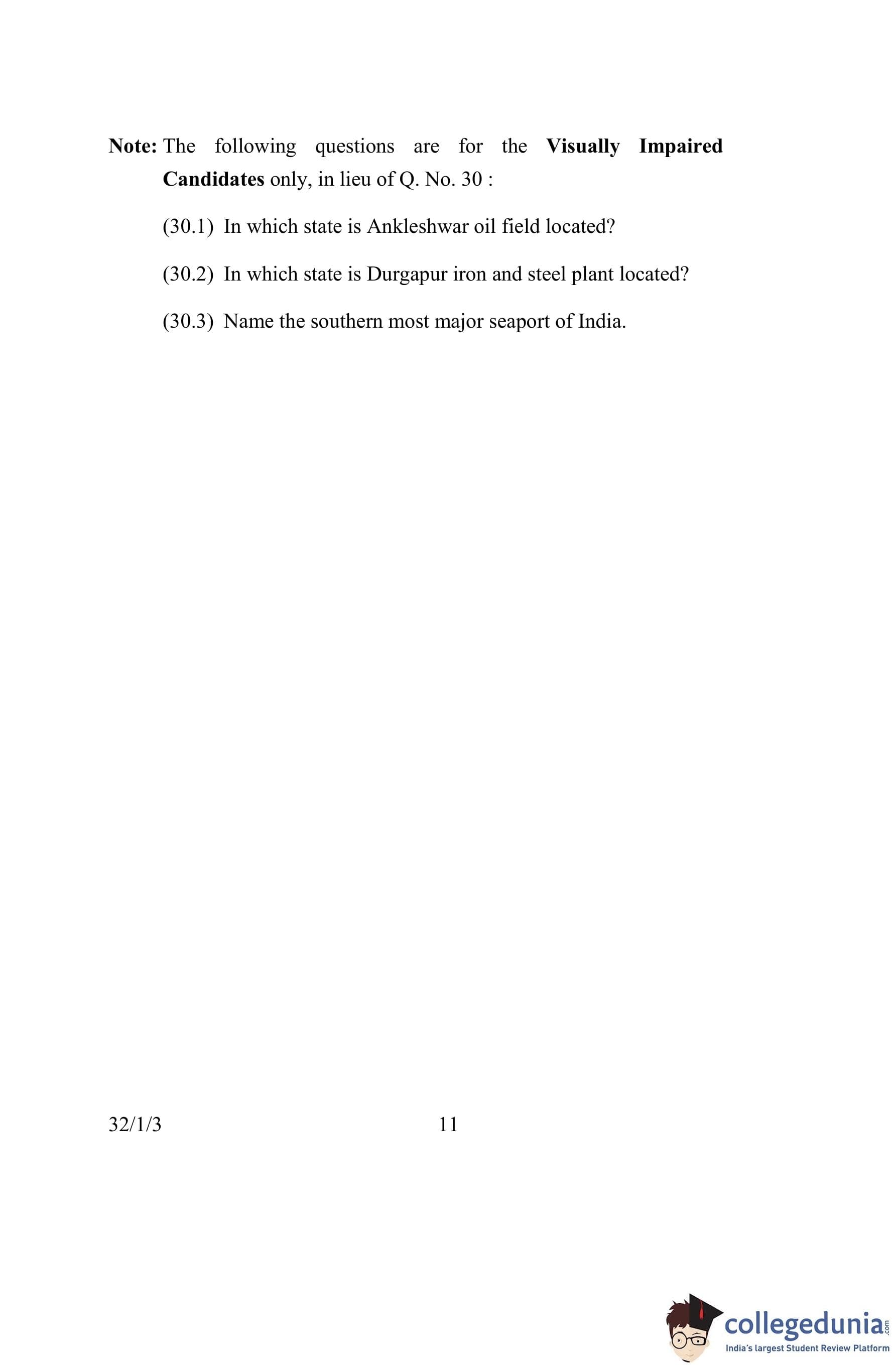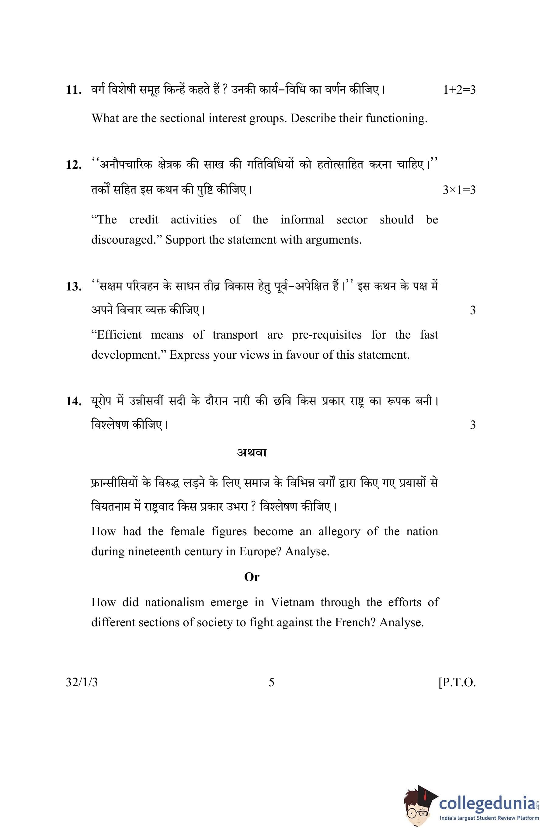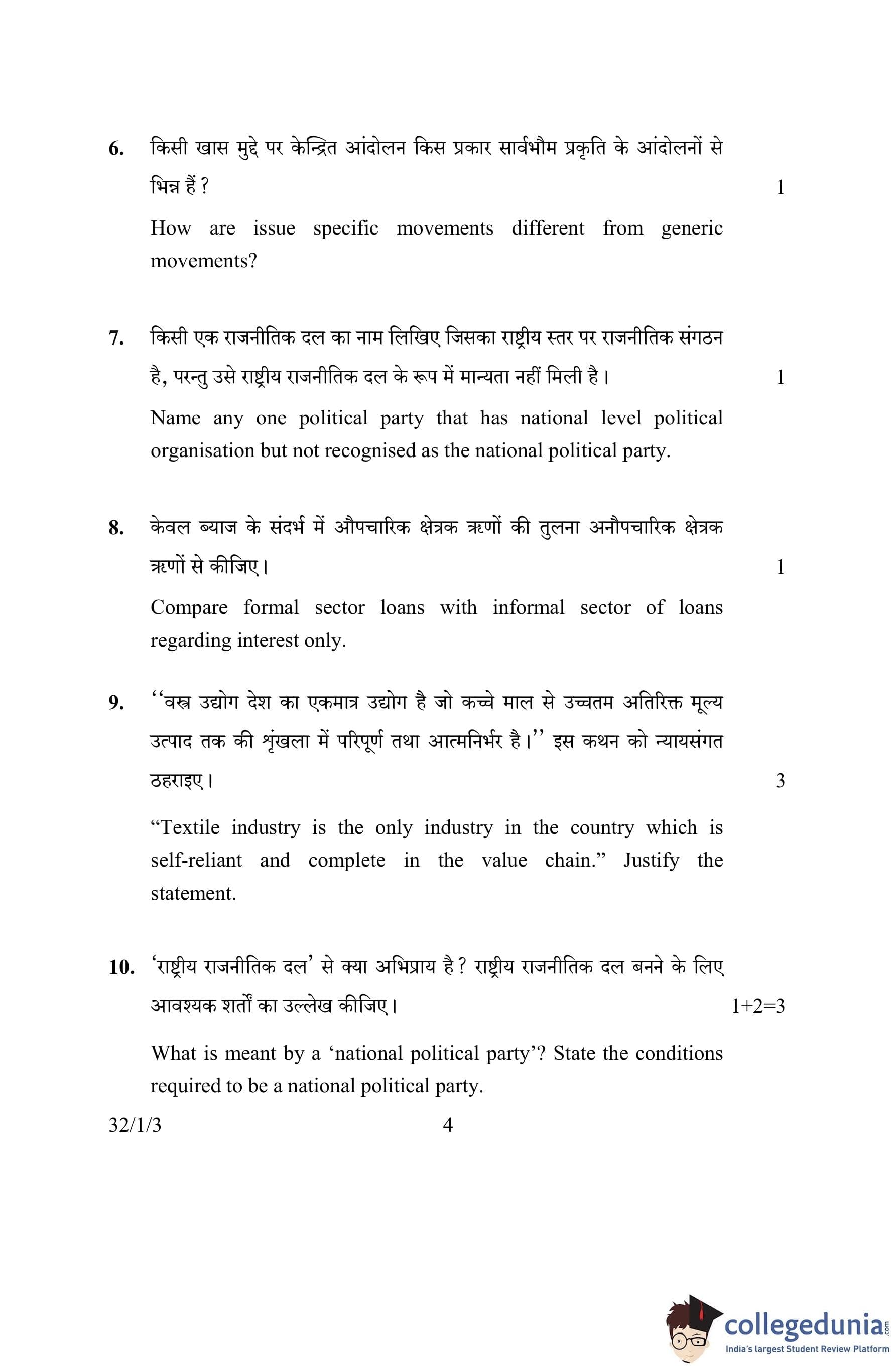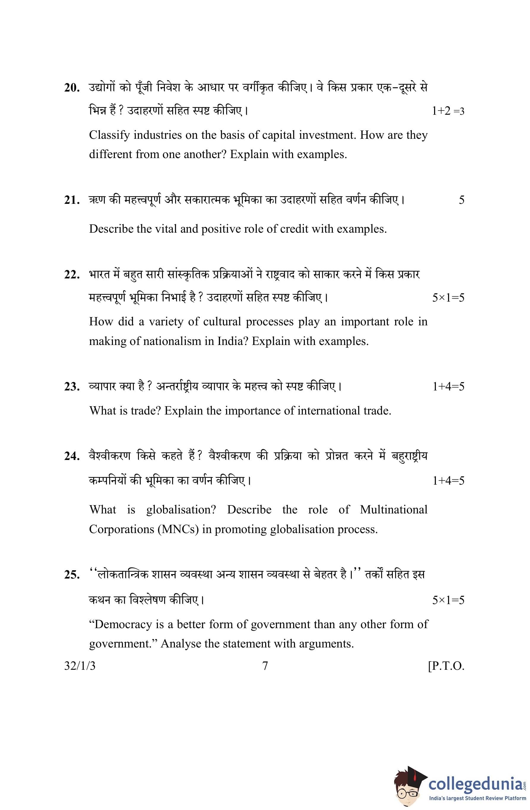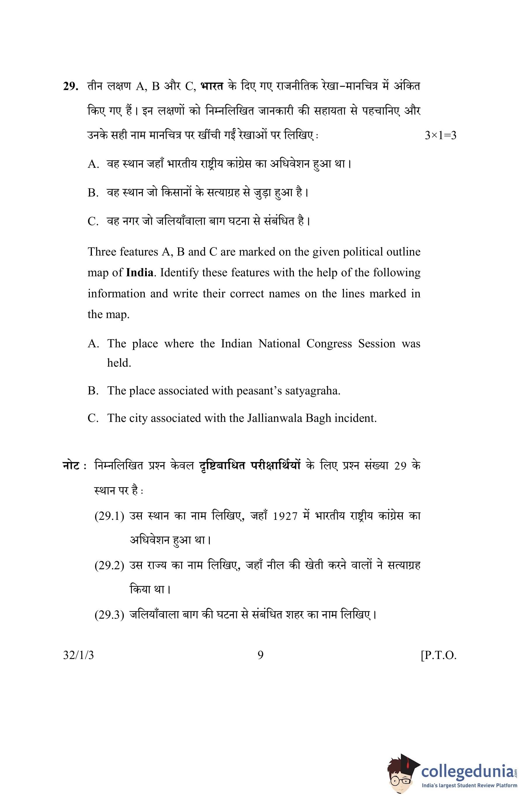 CBSE Class 10 Social Science Set 3- 32/1/3 Question Paper 2016 with Answer Key (March 10)