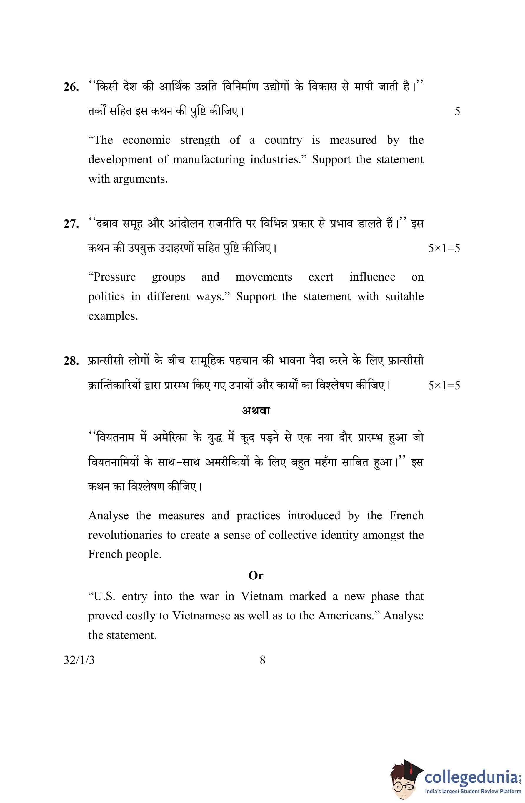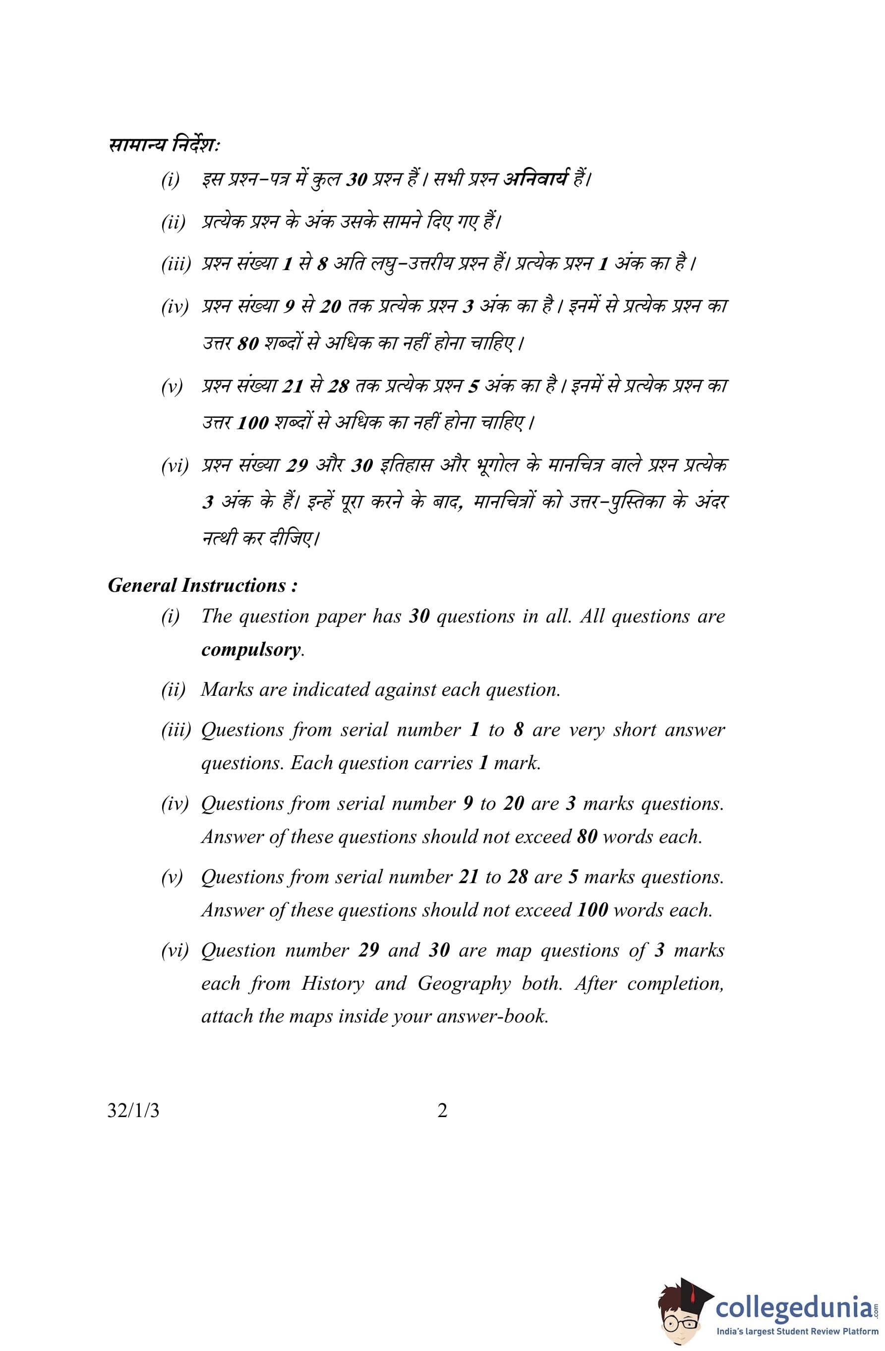 CBSE Class 10 Social Science Question Paper 2016 with Answer Key Set 3- 32/1/3 is available for download. The exam was conducted by the Central Board of Secondary Education on March 10, 2016 in the Morning Session 10:30 AM to 1:30 PM. The medium of paper was English and Hindi. The question paper comprised a total of 30 questions.