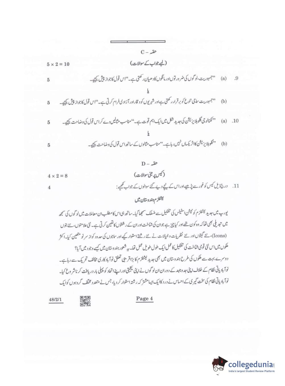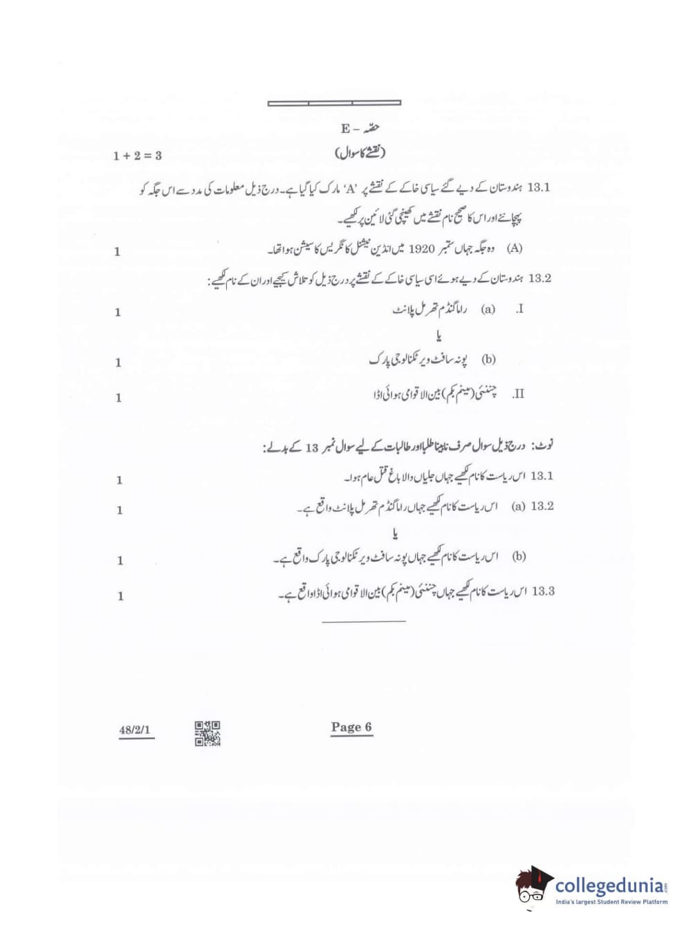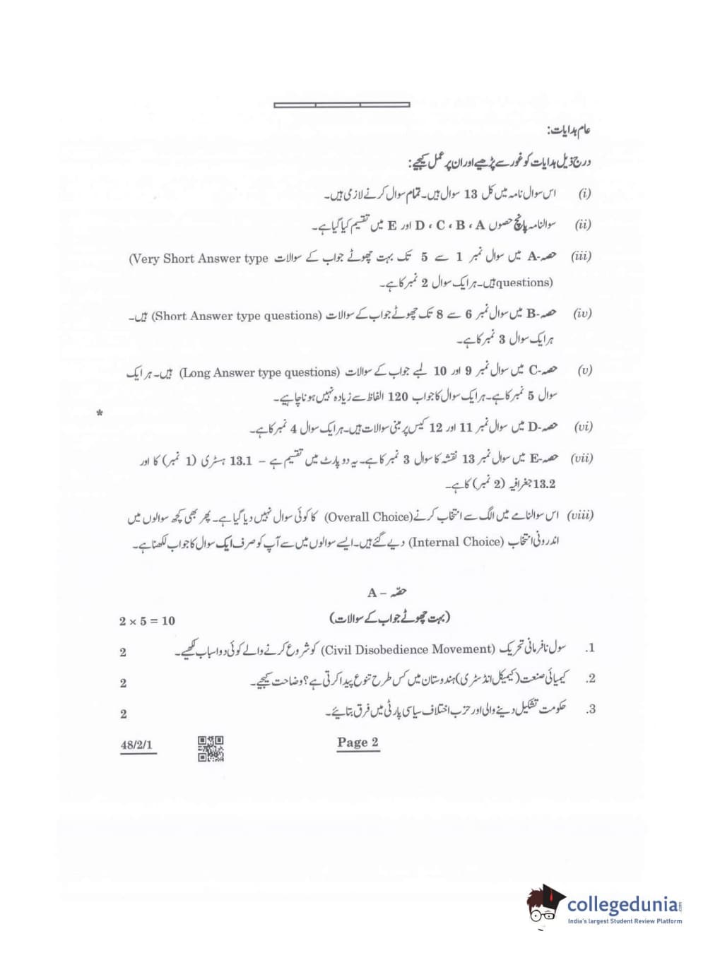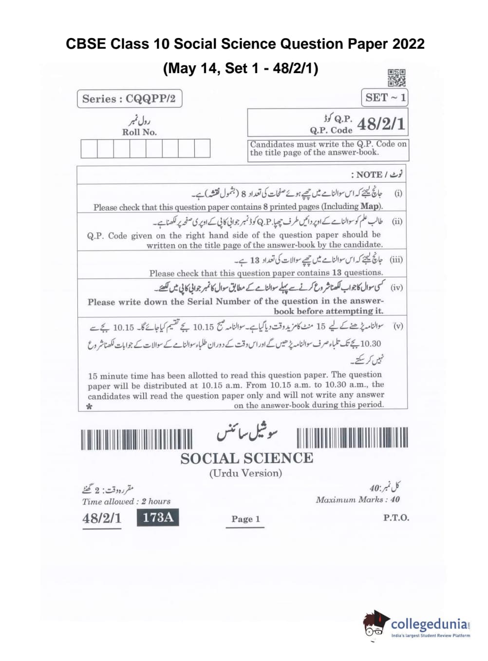 CBSE Class 10 Social Science Question Paper 2022 with Answer Key Set 1 - 48/2/1 is available for download. The exam was conducted by the Central Board of Secondary Education on May 14, 2022 in the Morning Session 10:30 AM to 12:30 PM. The medium of paper was Urdu. The question paper comprised a total of 13 questions divided among 5 sections.