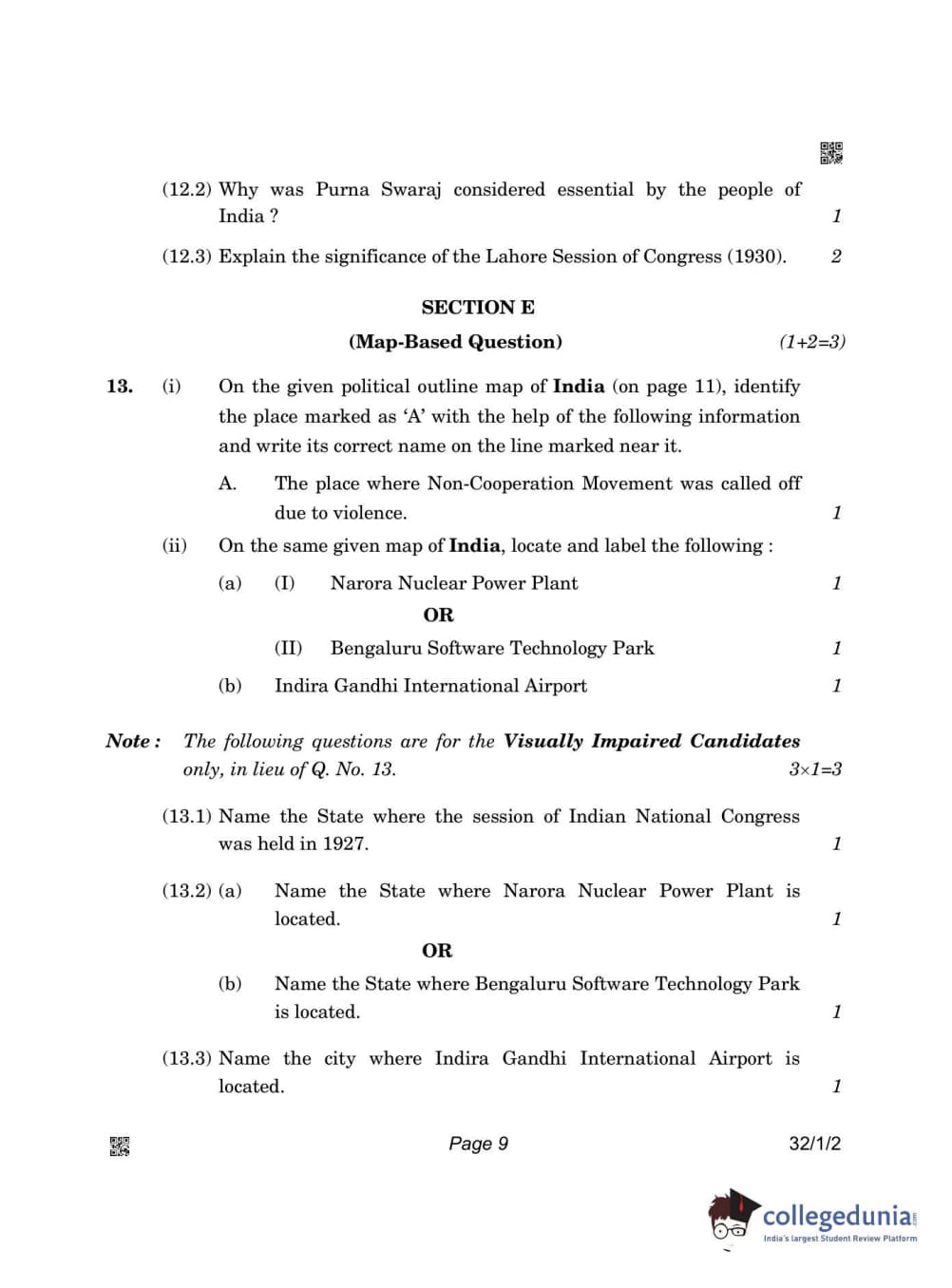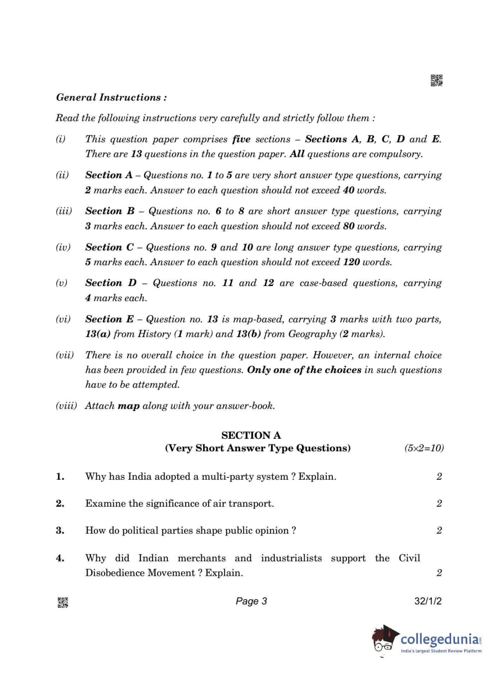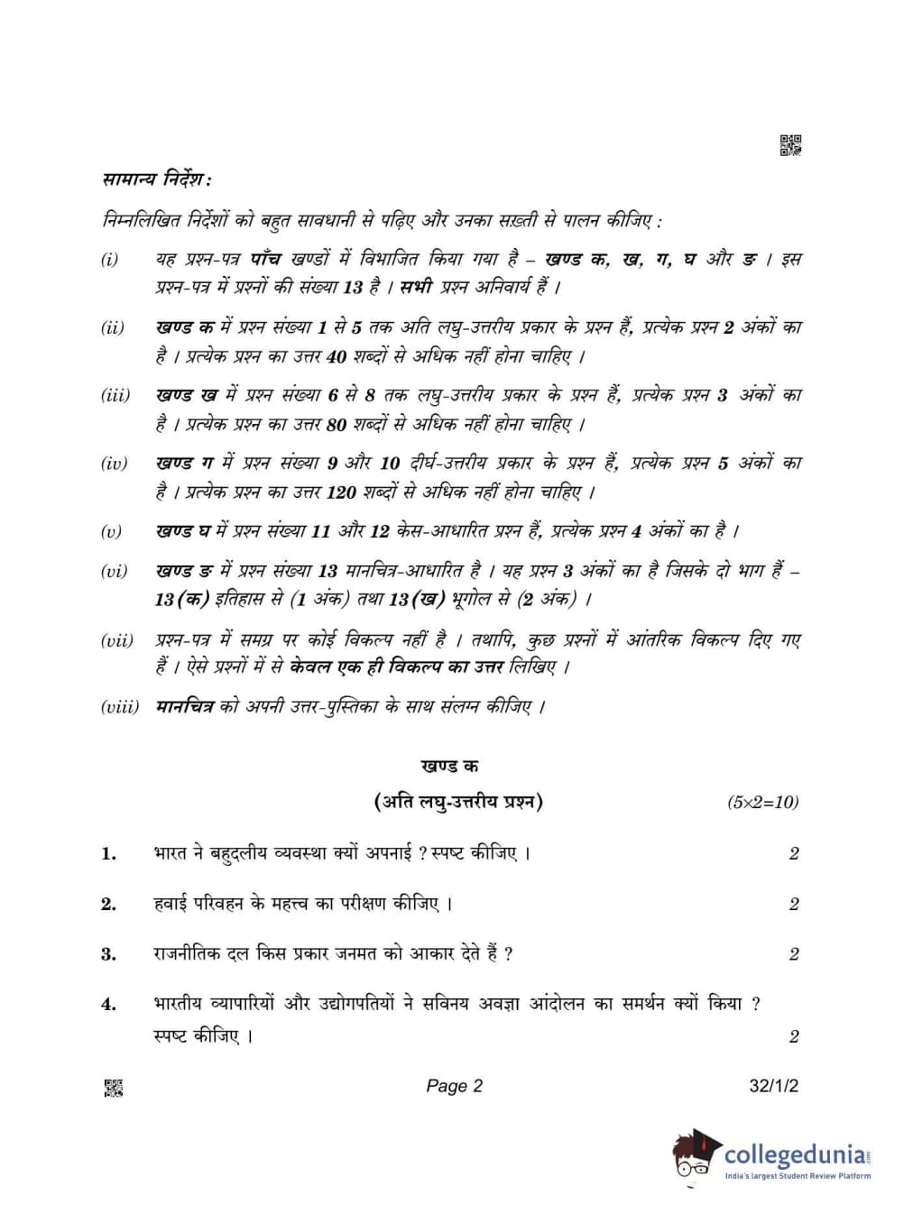 CBSE Class 10 Social Science Question Paper 2022 with Answer Key Set 2 - 32/1/2 is available for download. The exam was conducted by the Central Board of Secondary Education on May 14, 2022 in the Morning Session 10:30 AM to 12:30 PM. The medium of paper was English & Hindi. The question paper comprised a total of 13 questions divided among 4 sections.