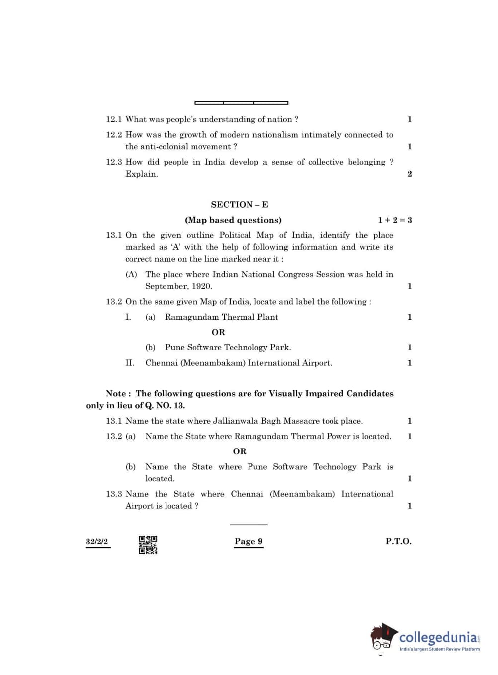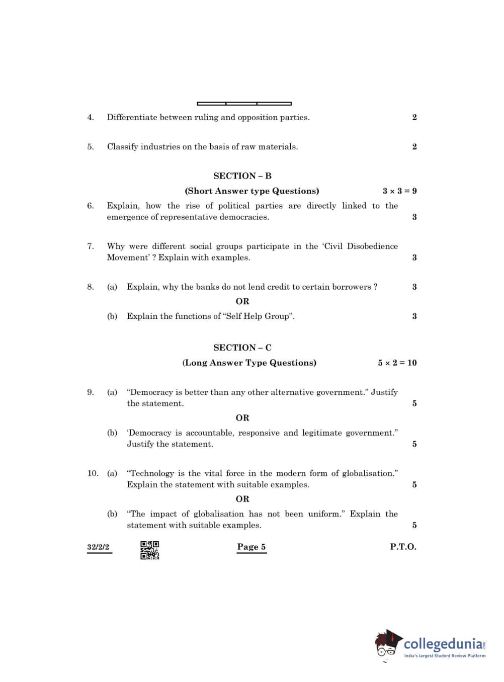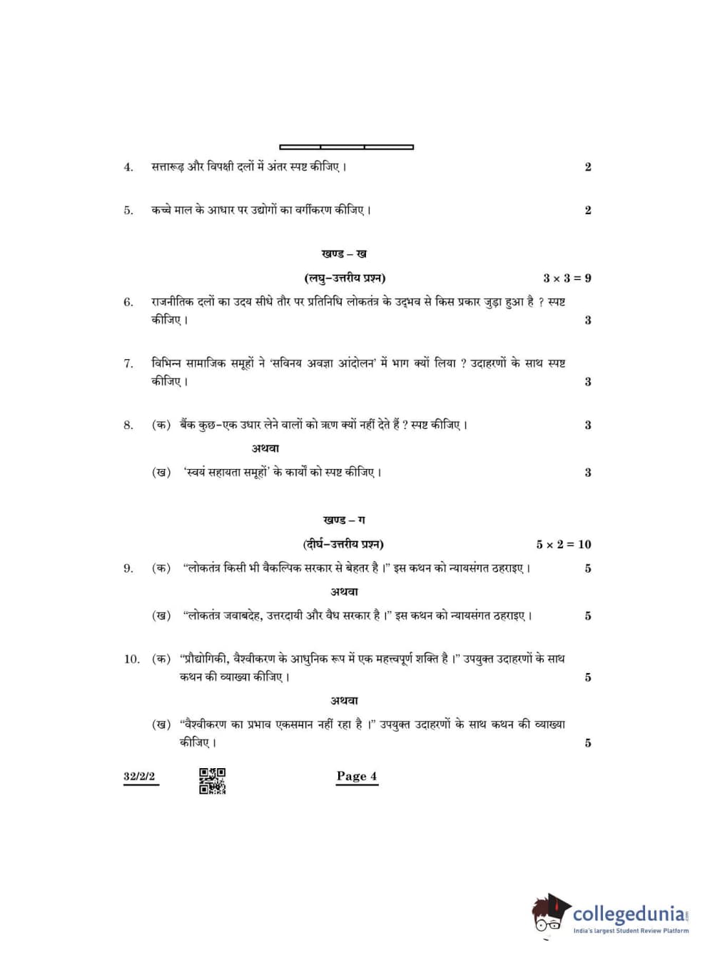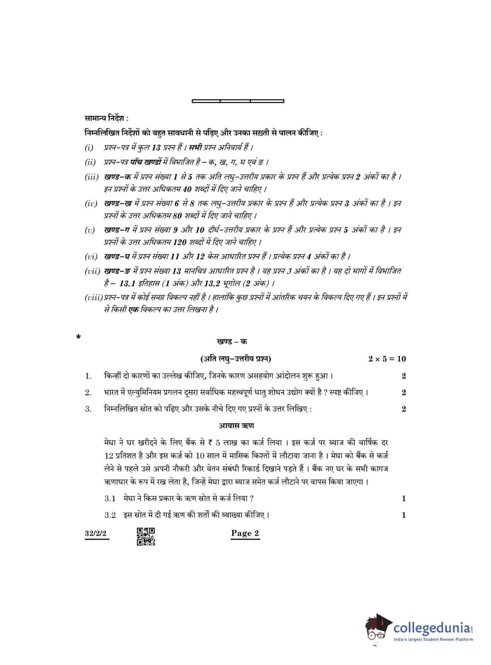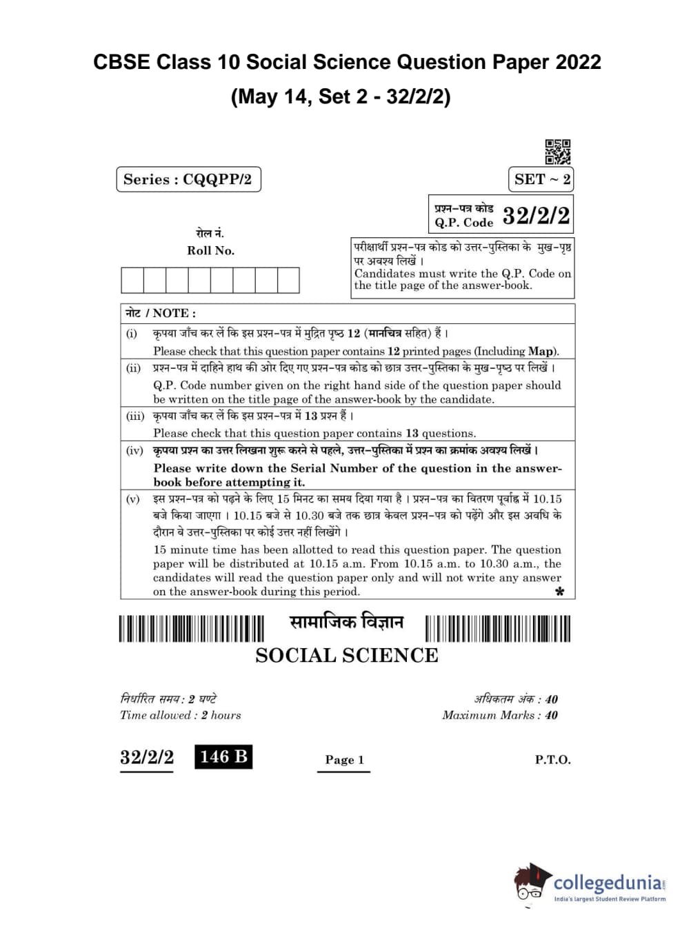 CBSE Class 10 Social Science Question Paper 2022 with Answer Key Set 2 - 32/2/2 is available for download. The exam was conducted by the Central Board of Secondary Education on May 14, 2022 in the Morning Session 10:30 AM to 12:30 PM. The medium of paper was English & Hindi. The question paper comprised a total of 13 questions divided among 5 sections.