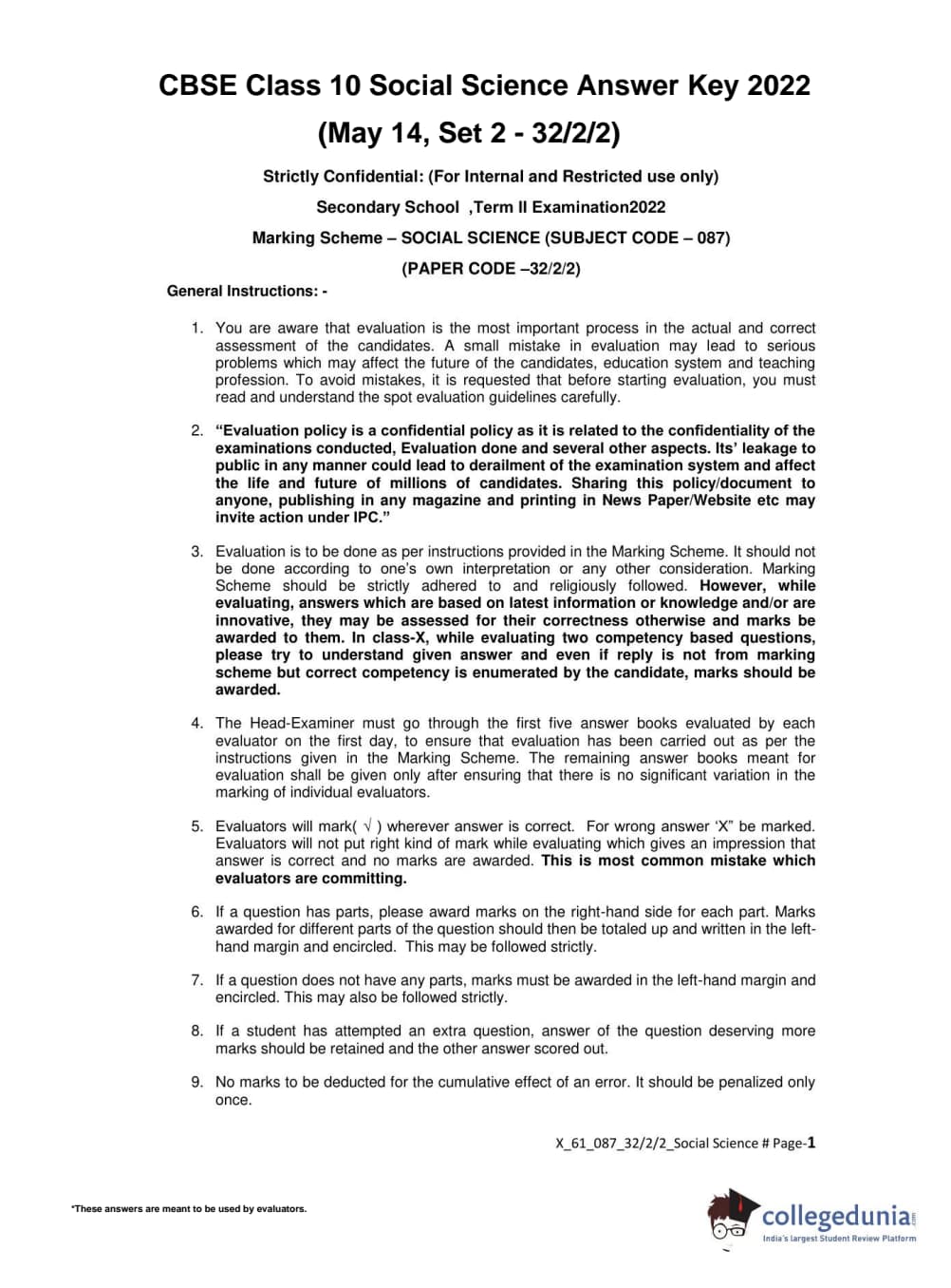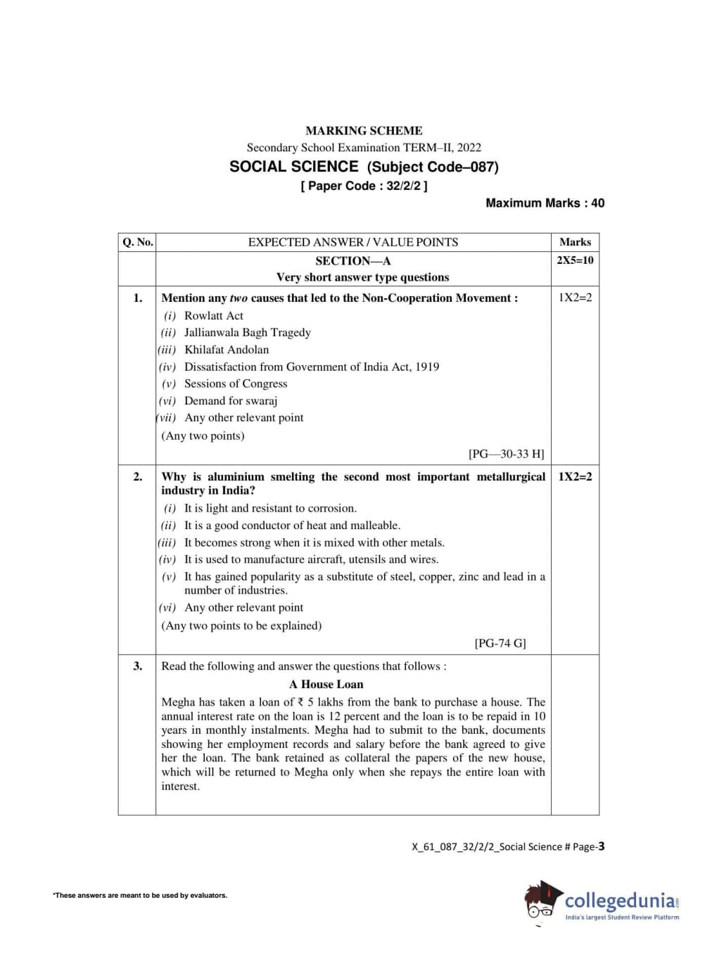 CBSE Class 10 Social Science Set 2 - 32/2/2 Question Paper 2022 with Answer Key (May 14)