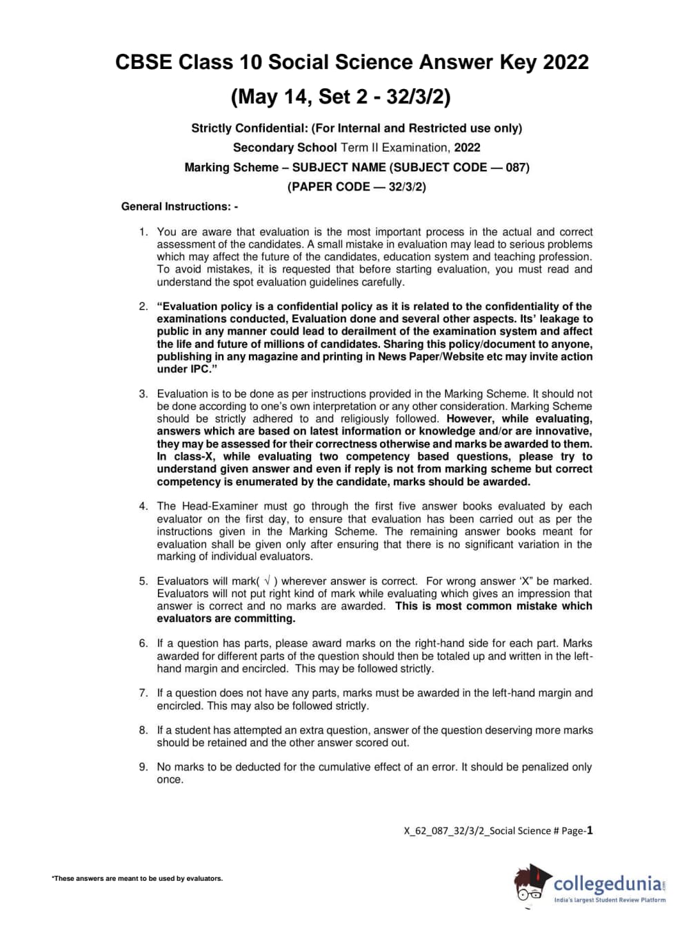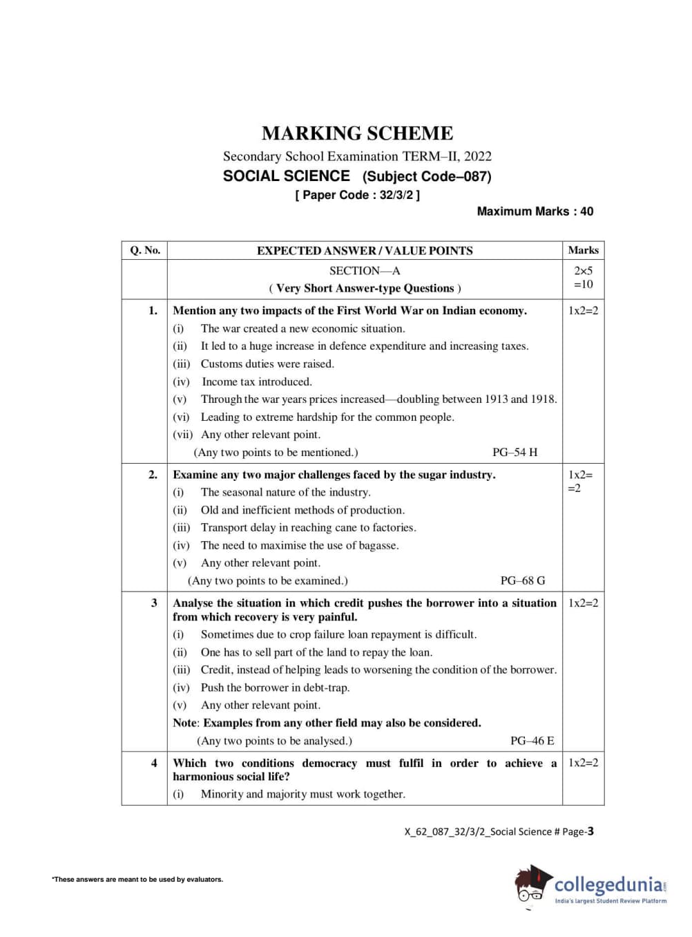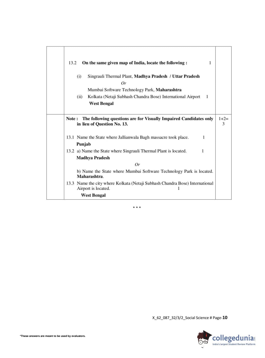 CBSE Class 10 Social Science Set 2 - 32/3/2 Question Paper 2022 with Answer Key (May 14)