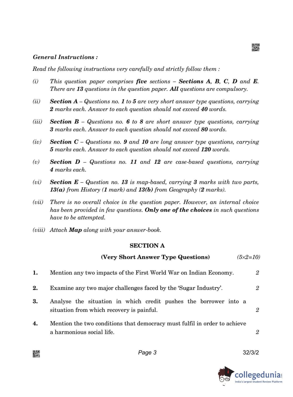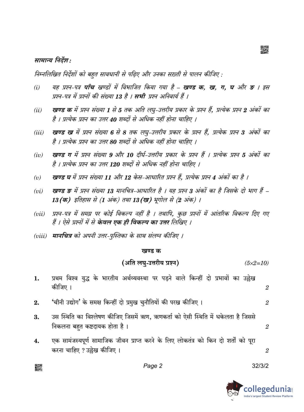 CBSE Class 10 Social Science Question Paper 2022 with Answer Key Set 2 - 32/3/2 is available for download. The exam was conducted by the Central Board of Secondary Education on May 14, 2022 in the Morning Session 10:30 AM to 12:30 PM. The medium of paper was English & Hindi. The question paper comprised a total of 13 questions divided among 5 sections.