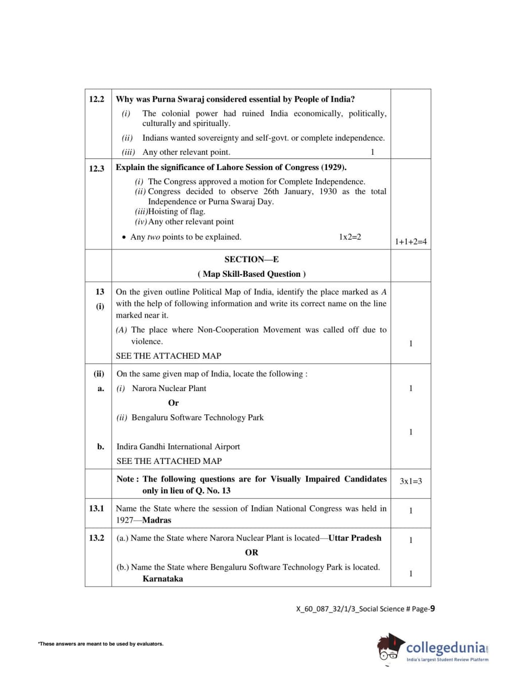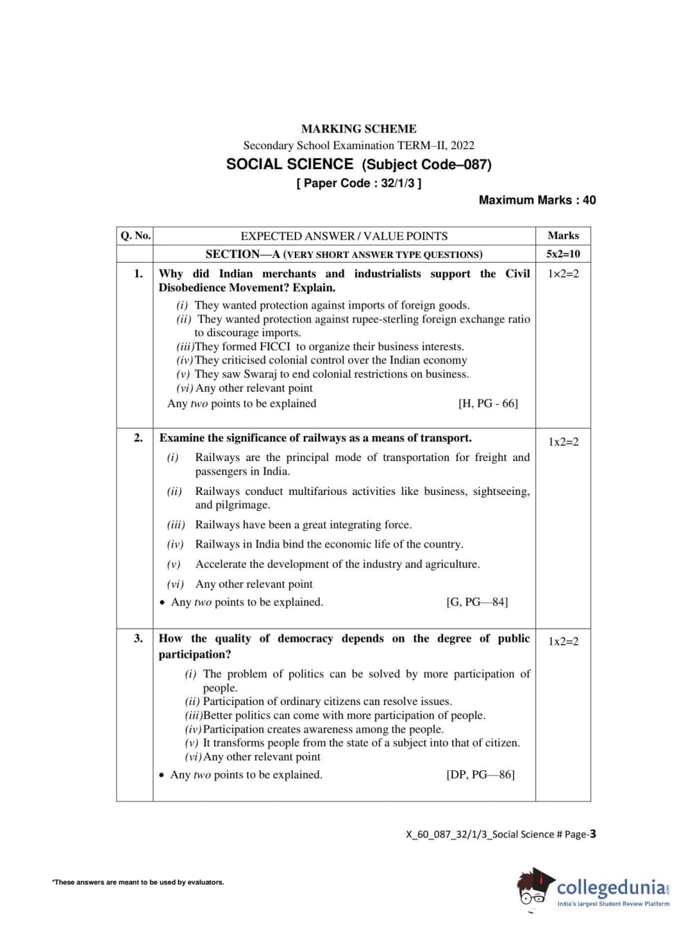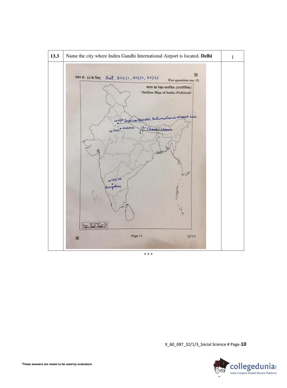 CBSE Class 10 Social Science Set 3 - 32/1/3 Question Paper 2022 with Answer Key (May 14)