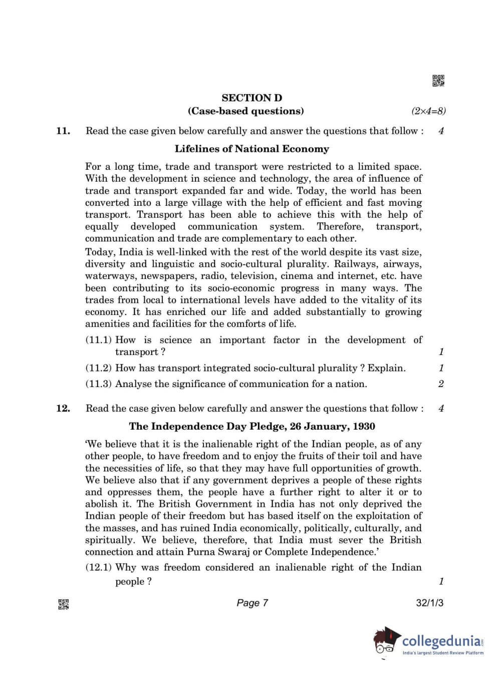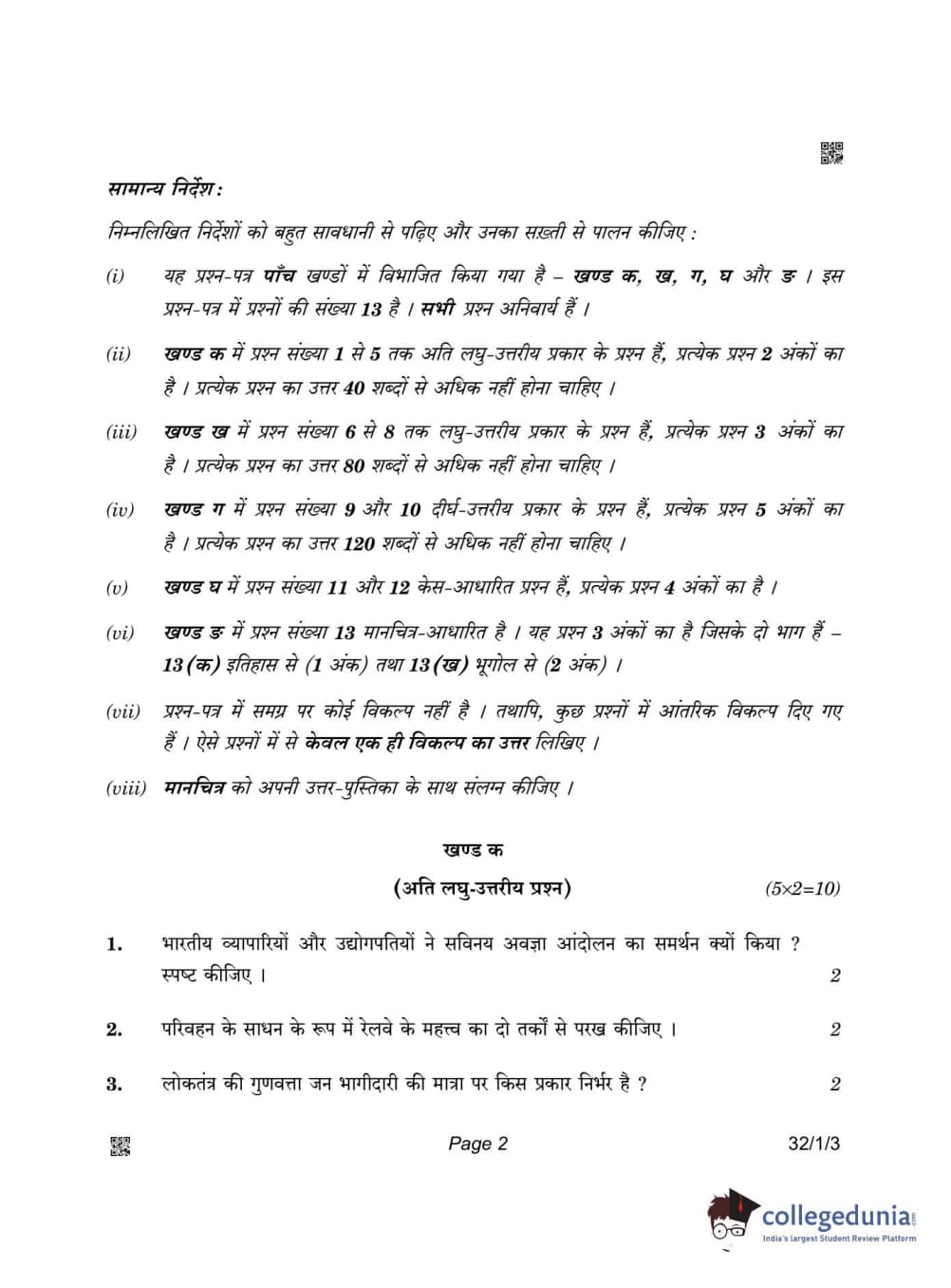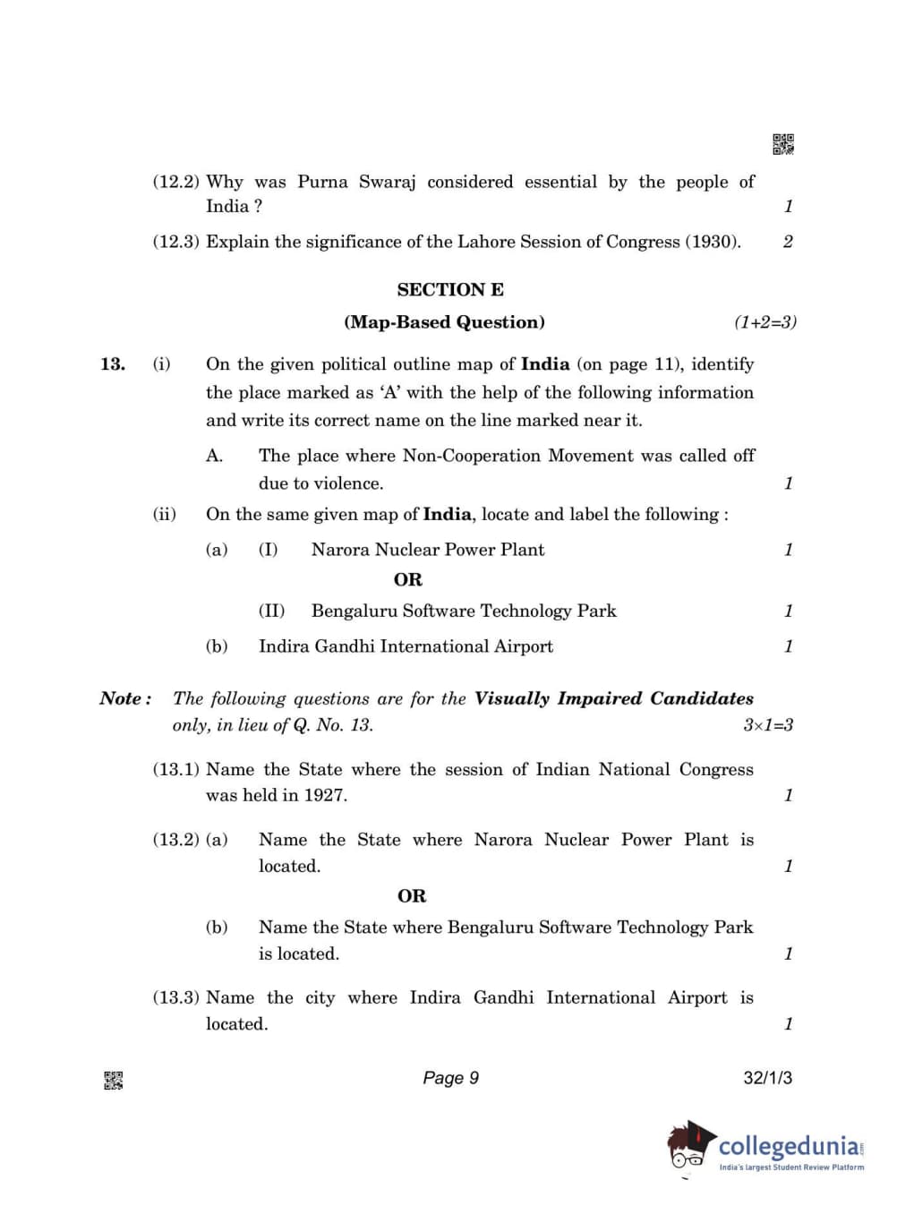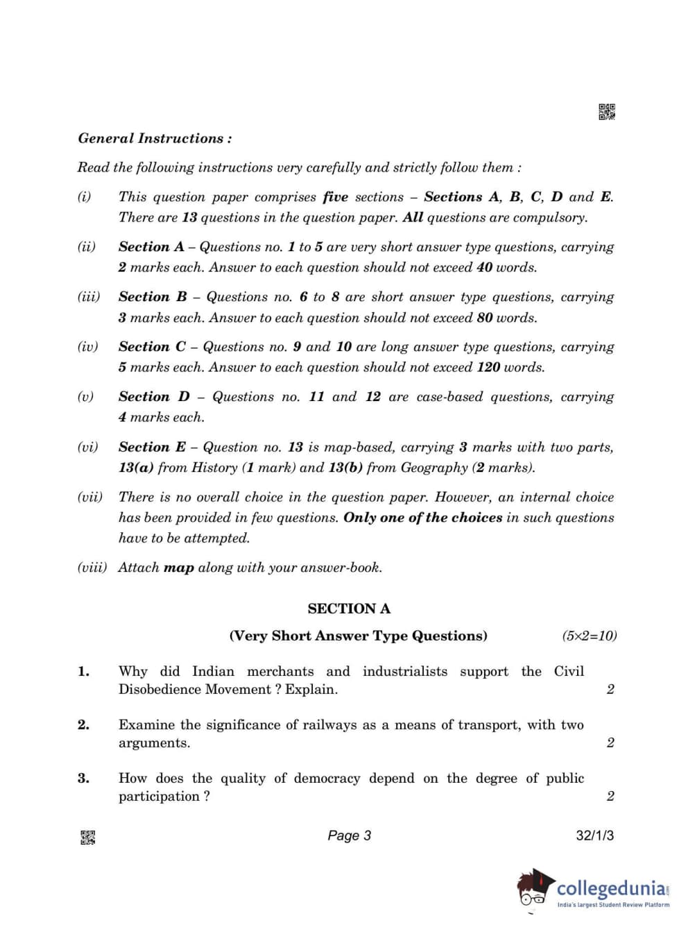 CBSE Class 10 Social Science Question Paper 2022 with Answer Key Set 3 - 32/1/3 is available for download. The exam was conducted by the Central Board of Secondary Education on May 14, 2022 in the Morning Session 10:30 AM to 12:30 PM. The medium of paper was English & Hindi. The question paper comprised a total of 13 questions divided among 4 sections.