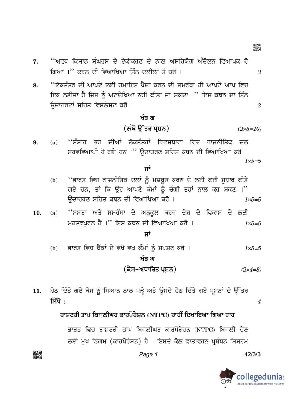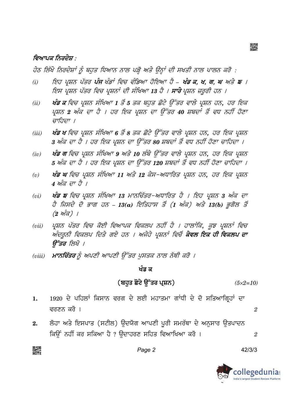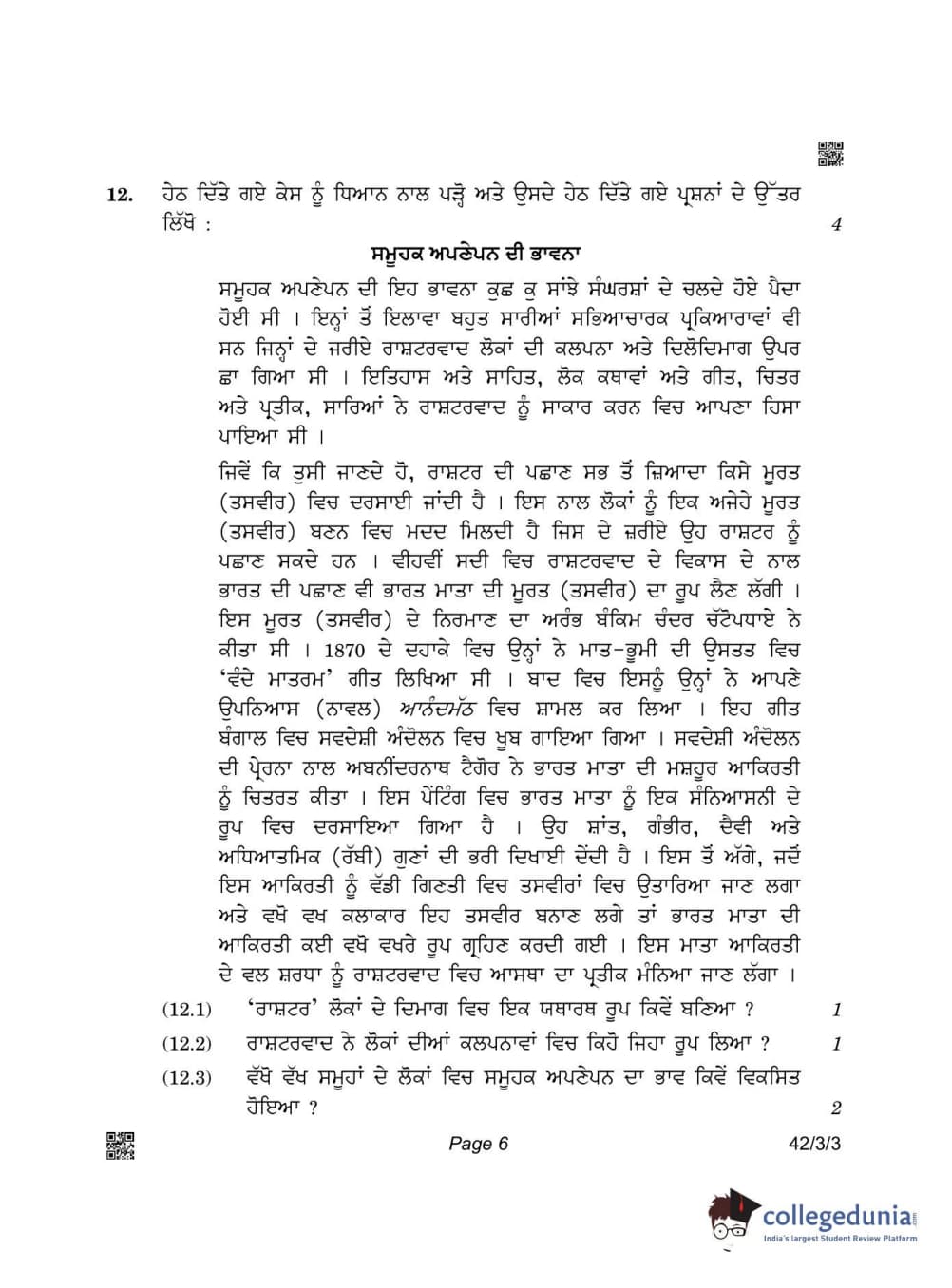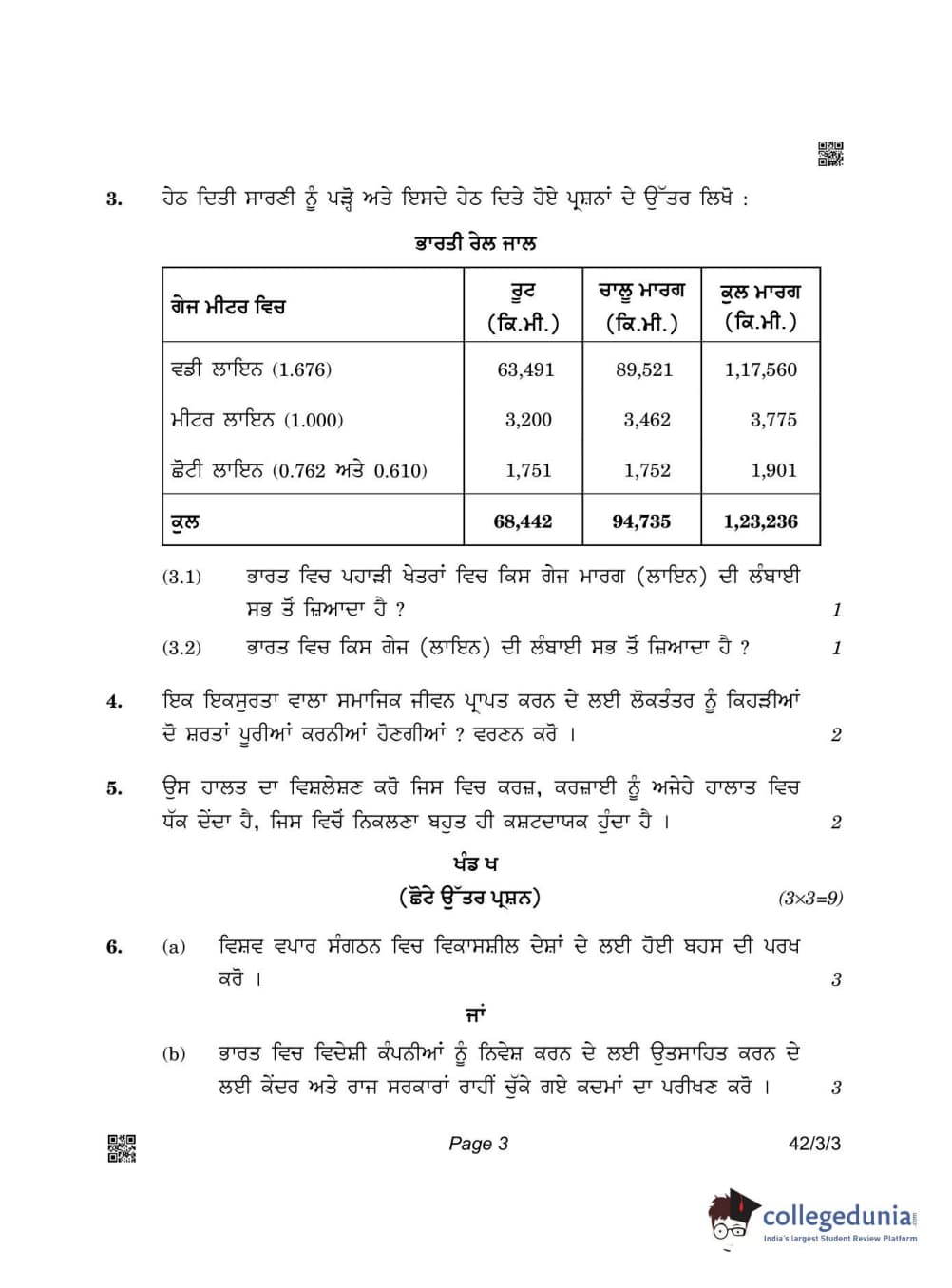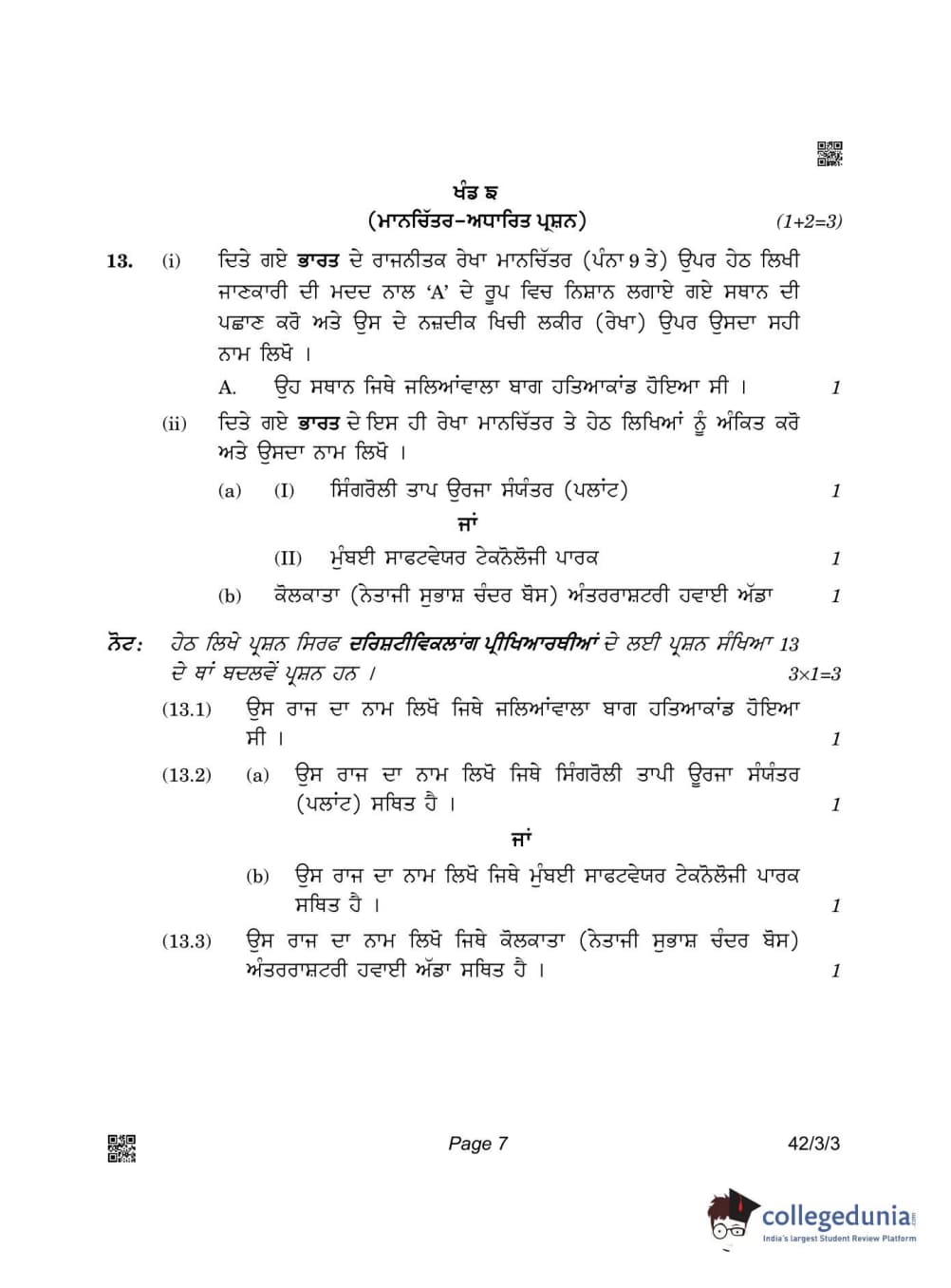 CBSE Class 10 Social Science Question Paper 2022 with Answer Key Set 3 - 42/3/3 is available for download. The exam was conducted by the Central Board of Secondary Education on May 14, 2022 in the Morning Session 10:30 AM to 12:30 PM. The medium of paper was Punjabi. The question paper comprised a total of 13 questions divided among 5 sections.