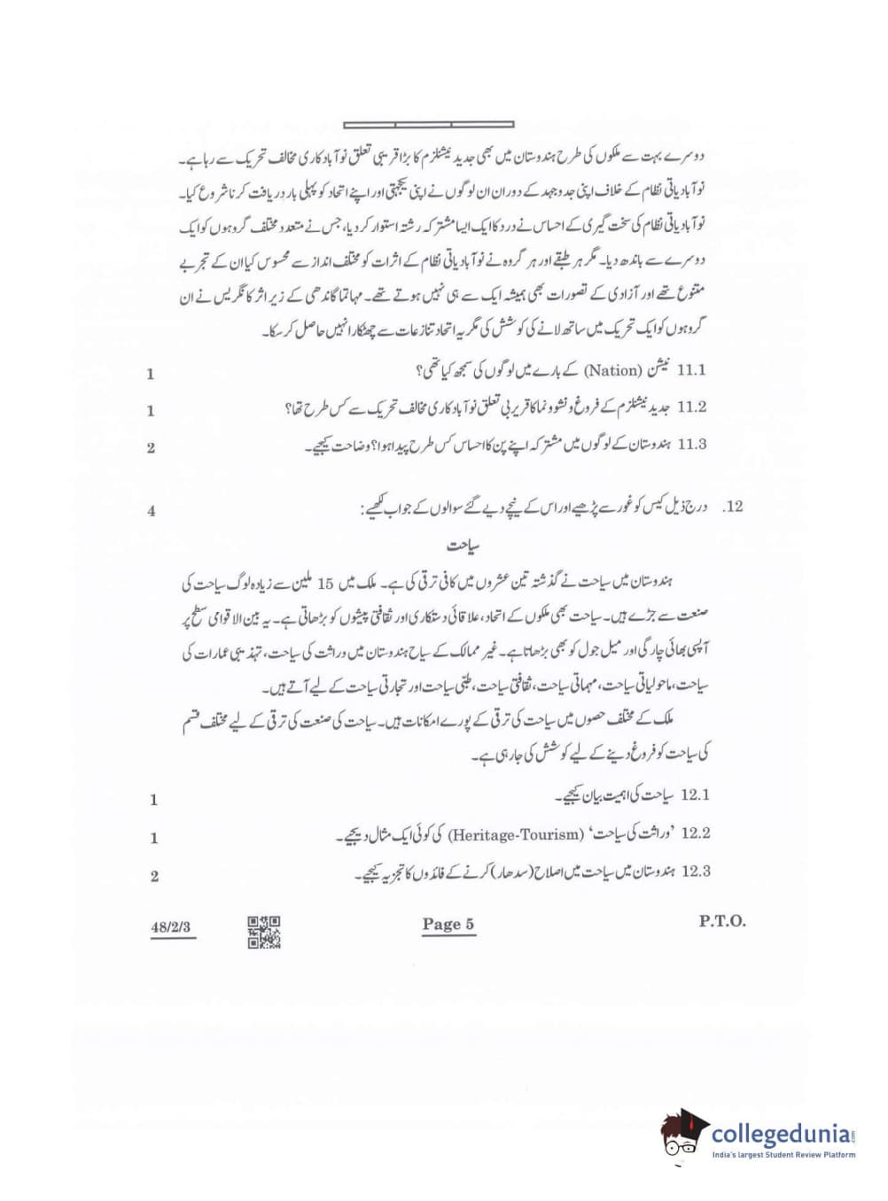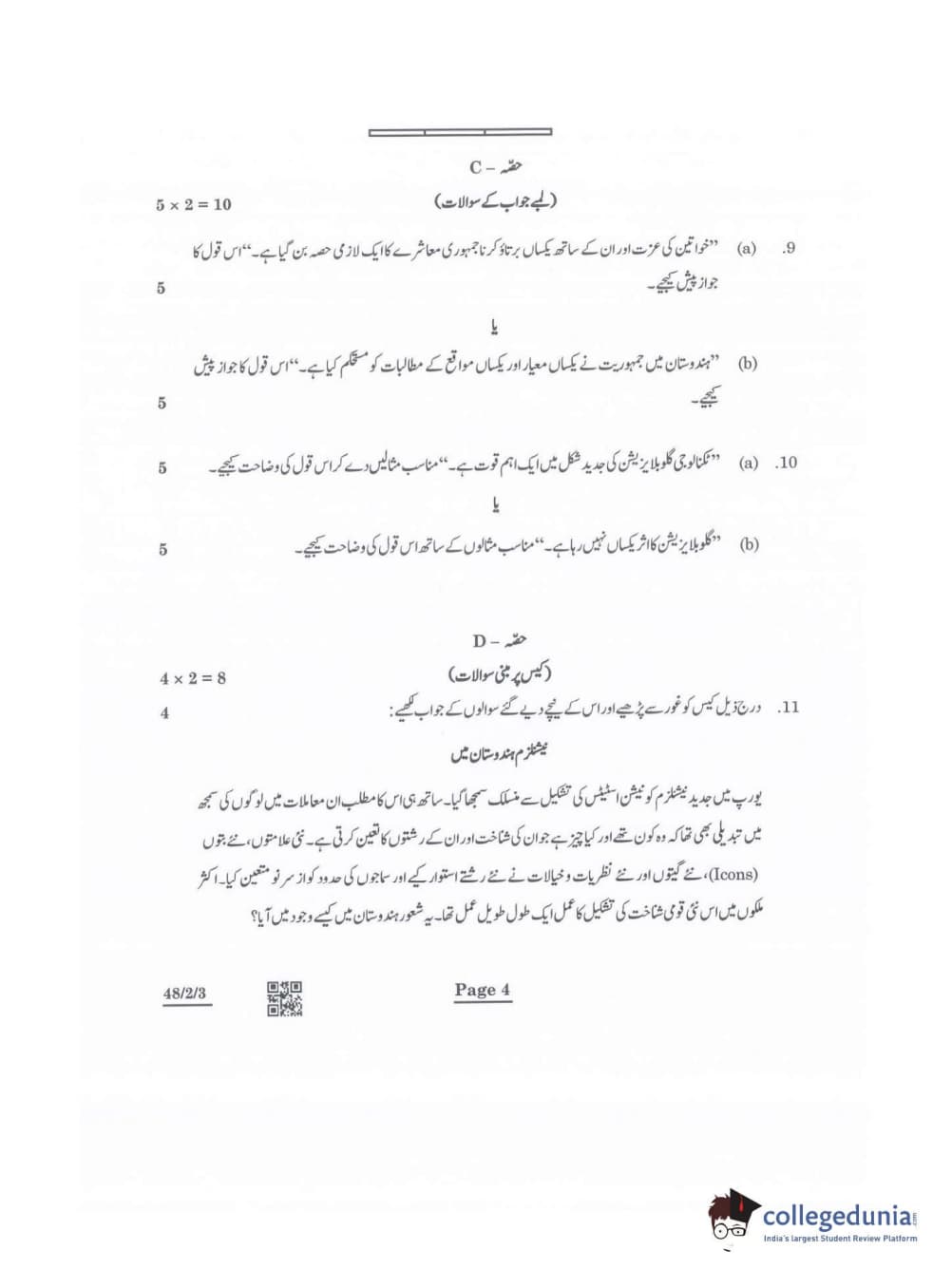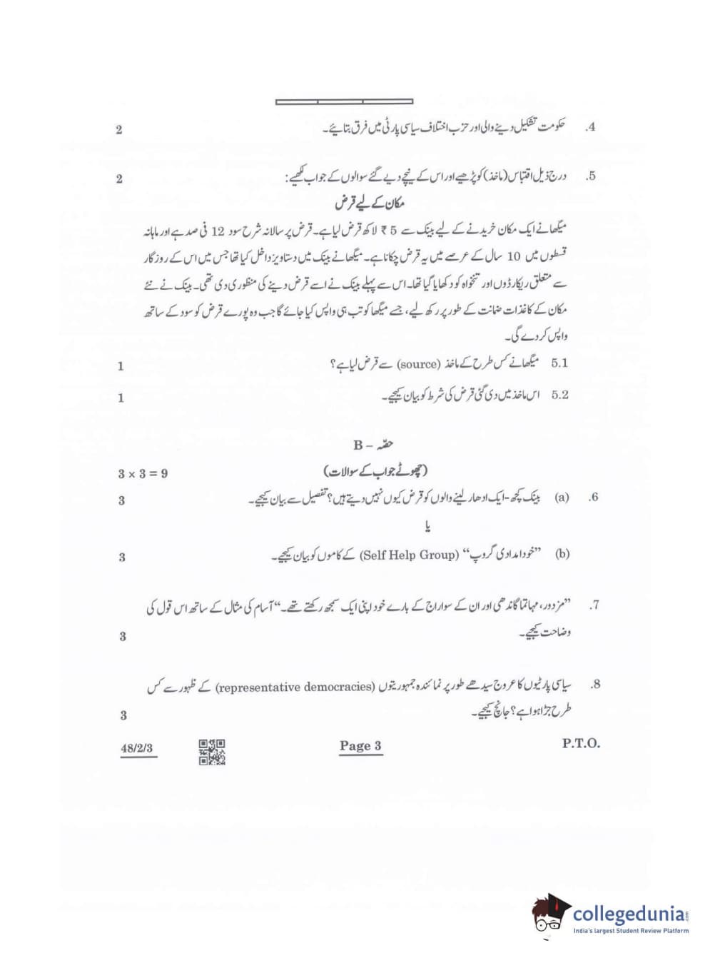 CBSE Class 10 Social Science Question Paper 2022 with Answer Key Set 3 - 48/2/3 is available for download. The exam was conducted by the Central Board of Secondary Education on May 14, 2022 in the Morning Session 10:30 AM to 12:30 PM. The medium of paper was Urdu. The question paper comprised a total of 13 questions divided among 5 sections.