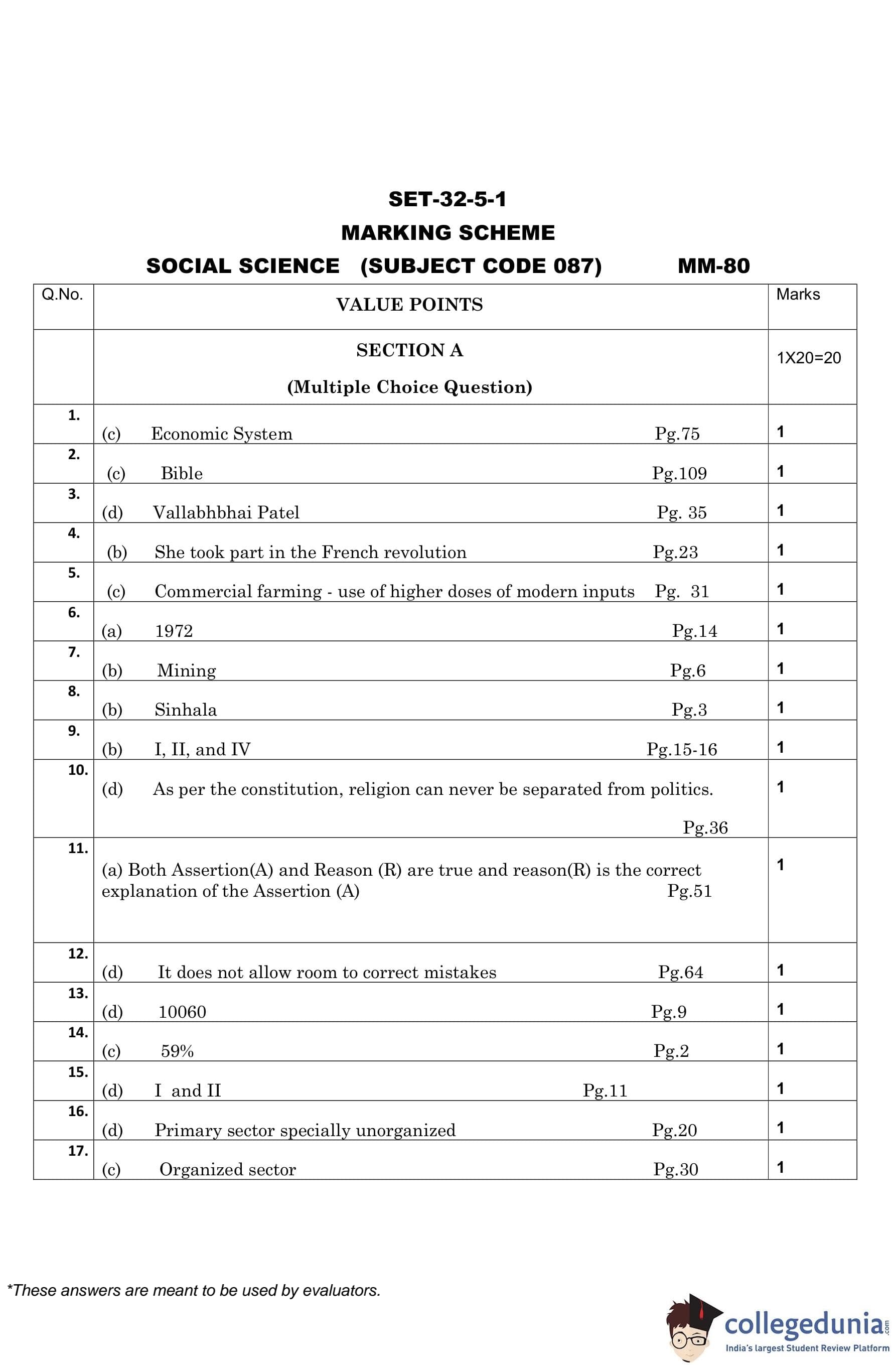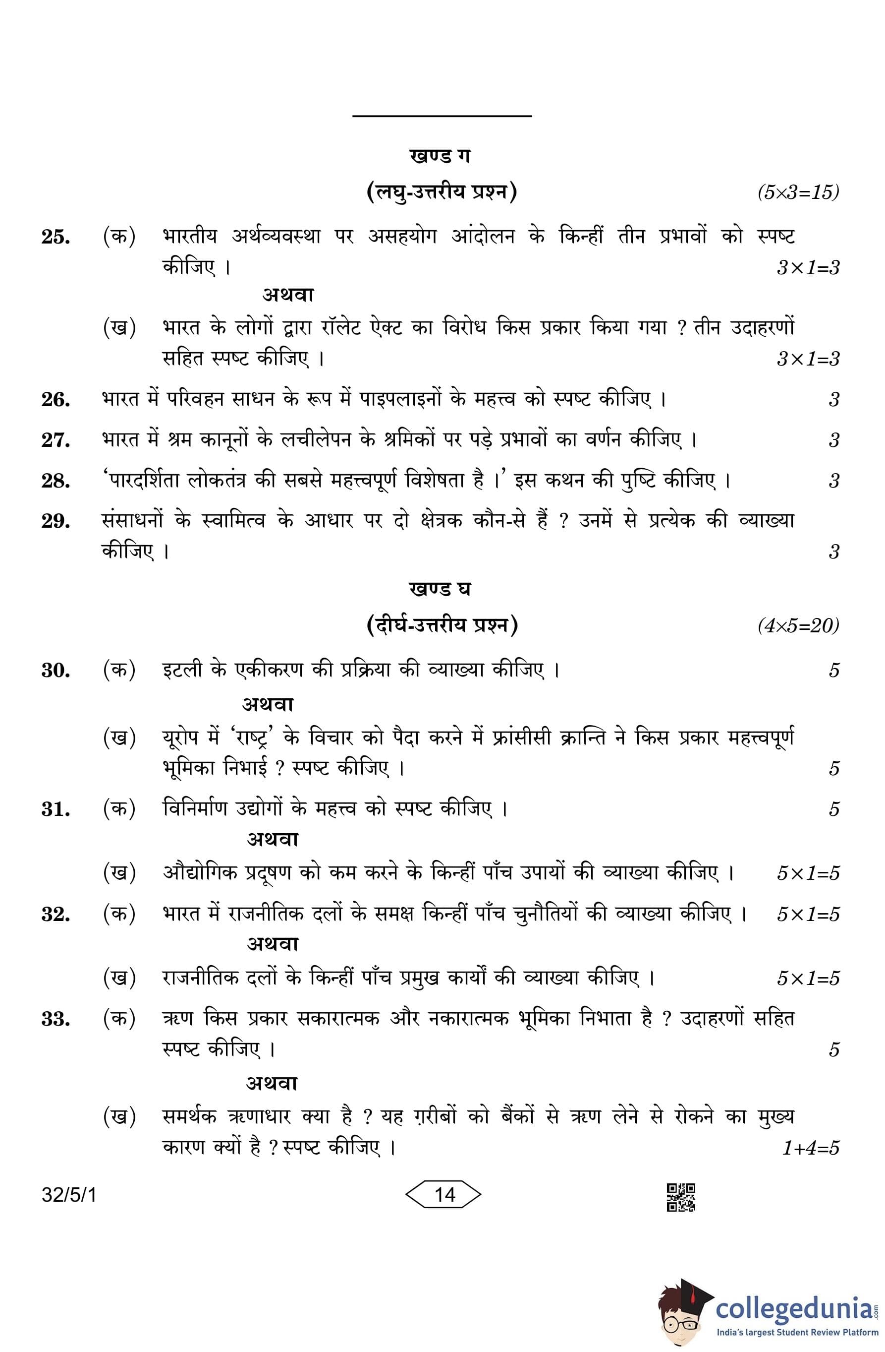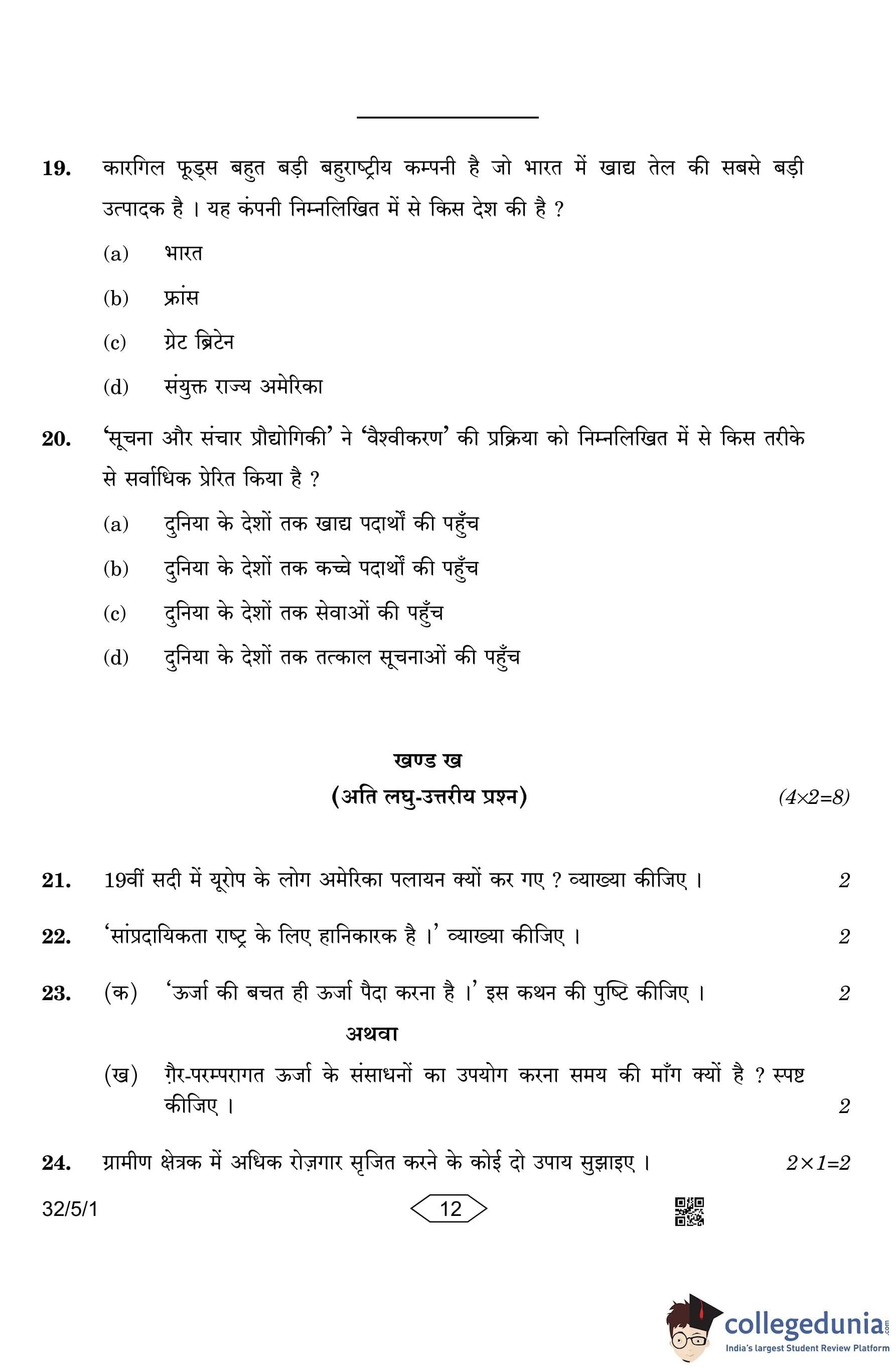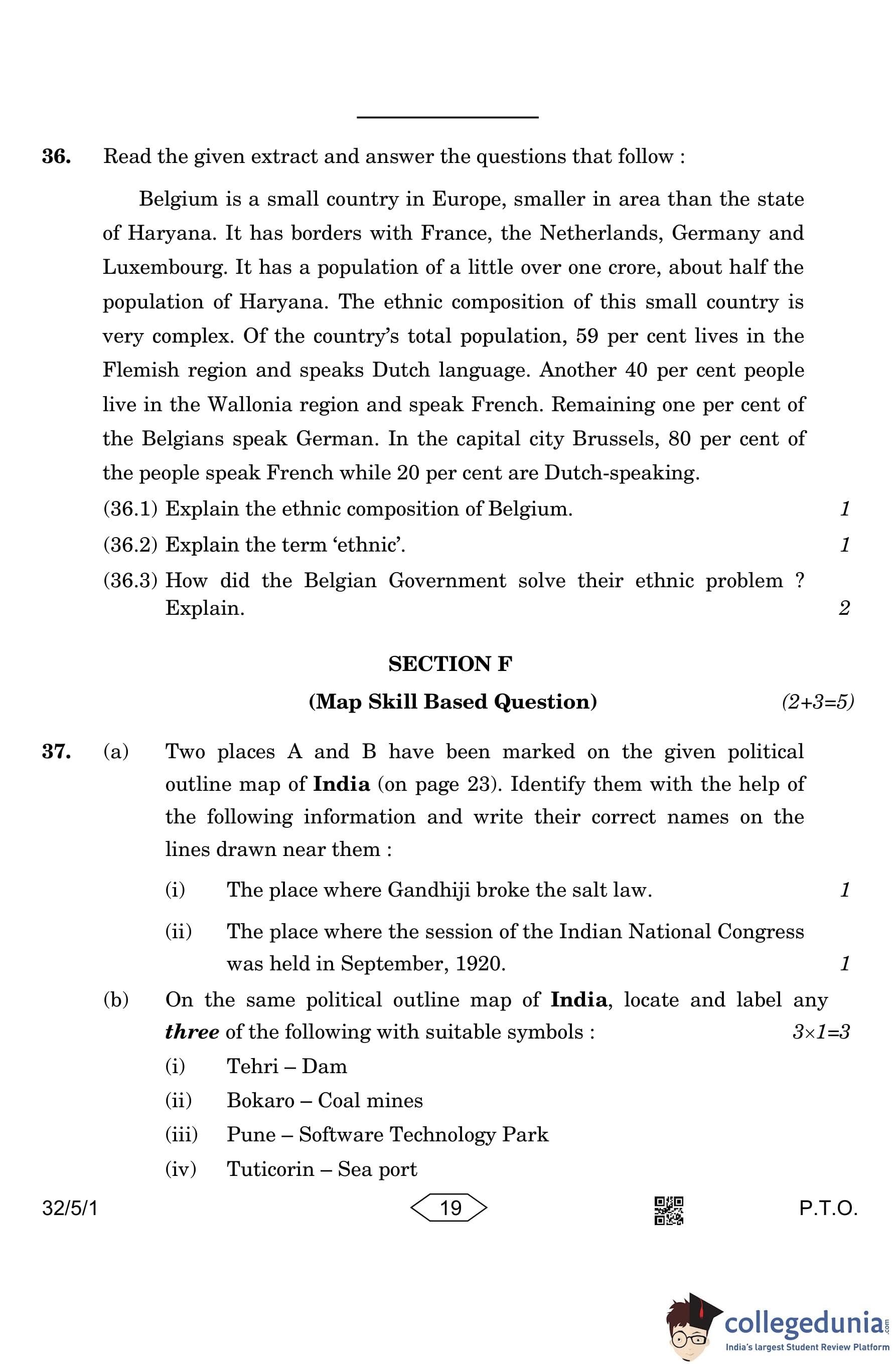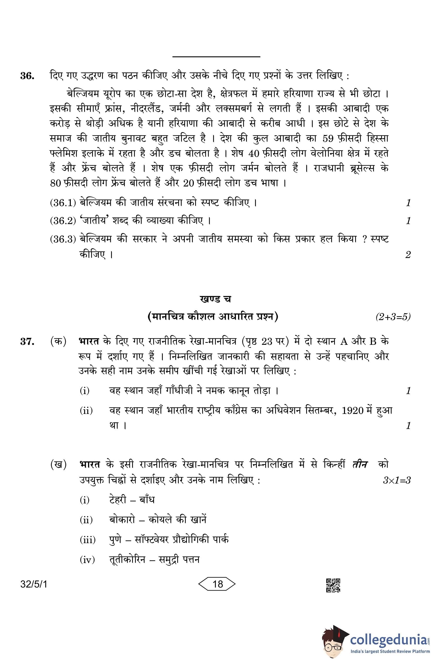 CBSE Class 10 Social Science (Set 1- 32/5/1) Question Paper 2023 with Answer Key