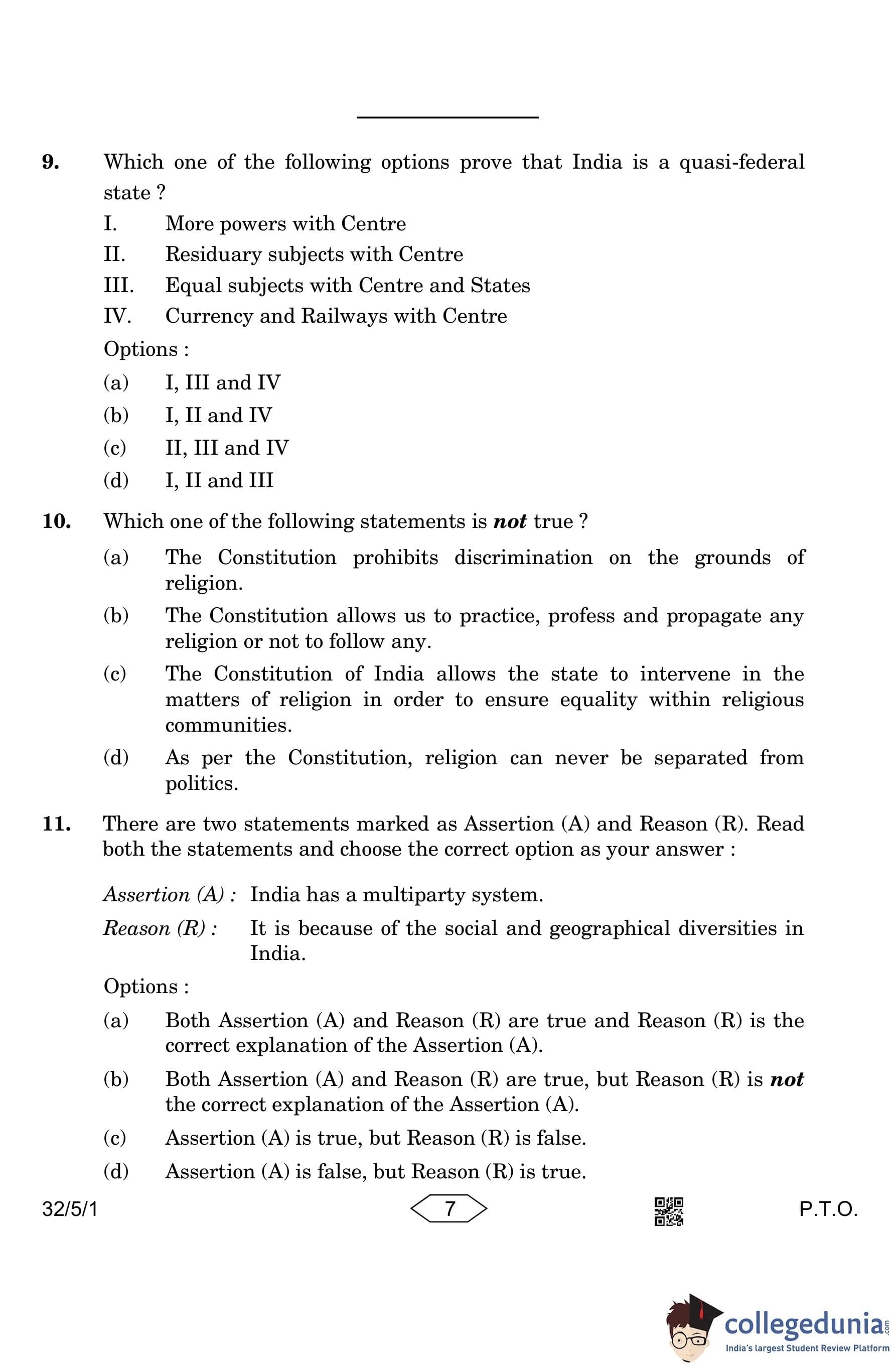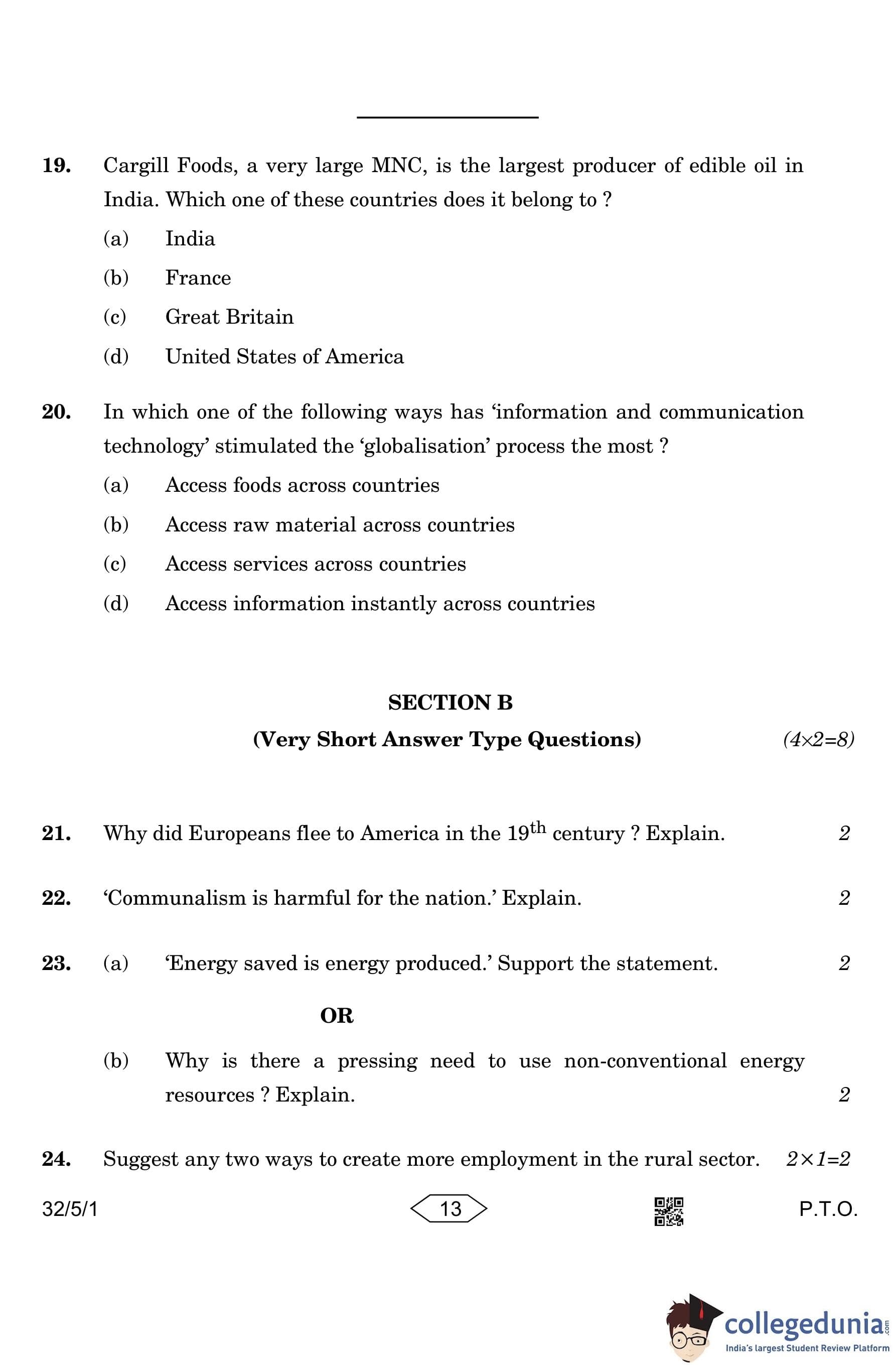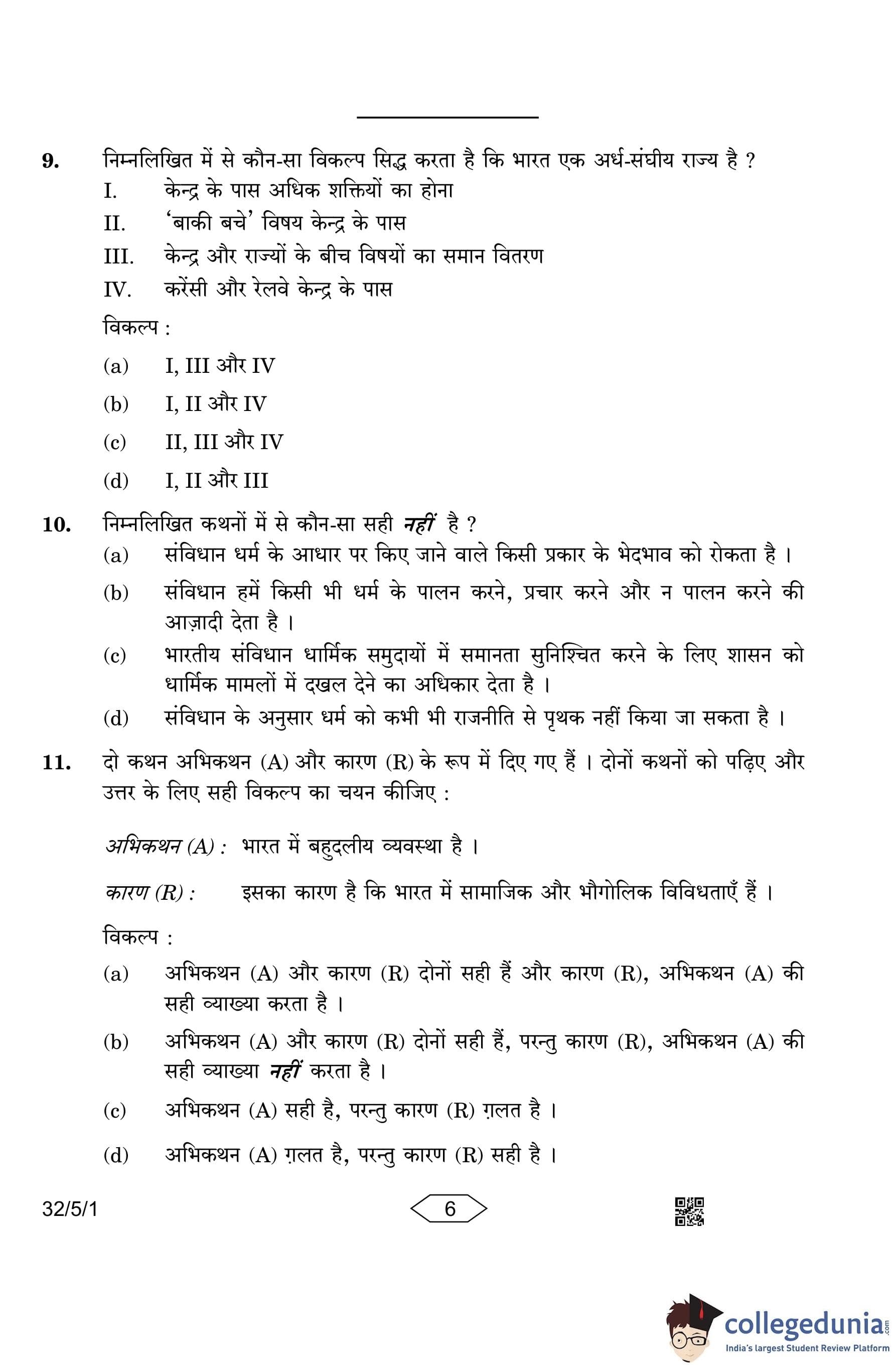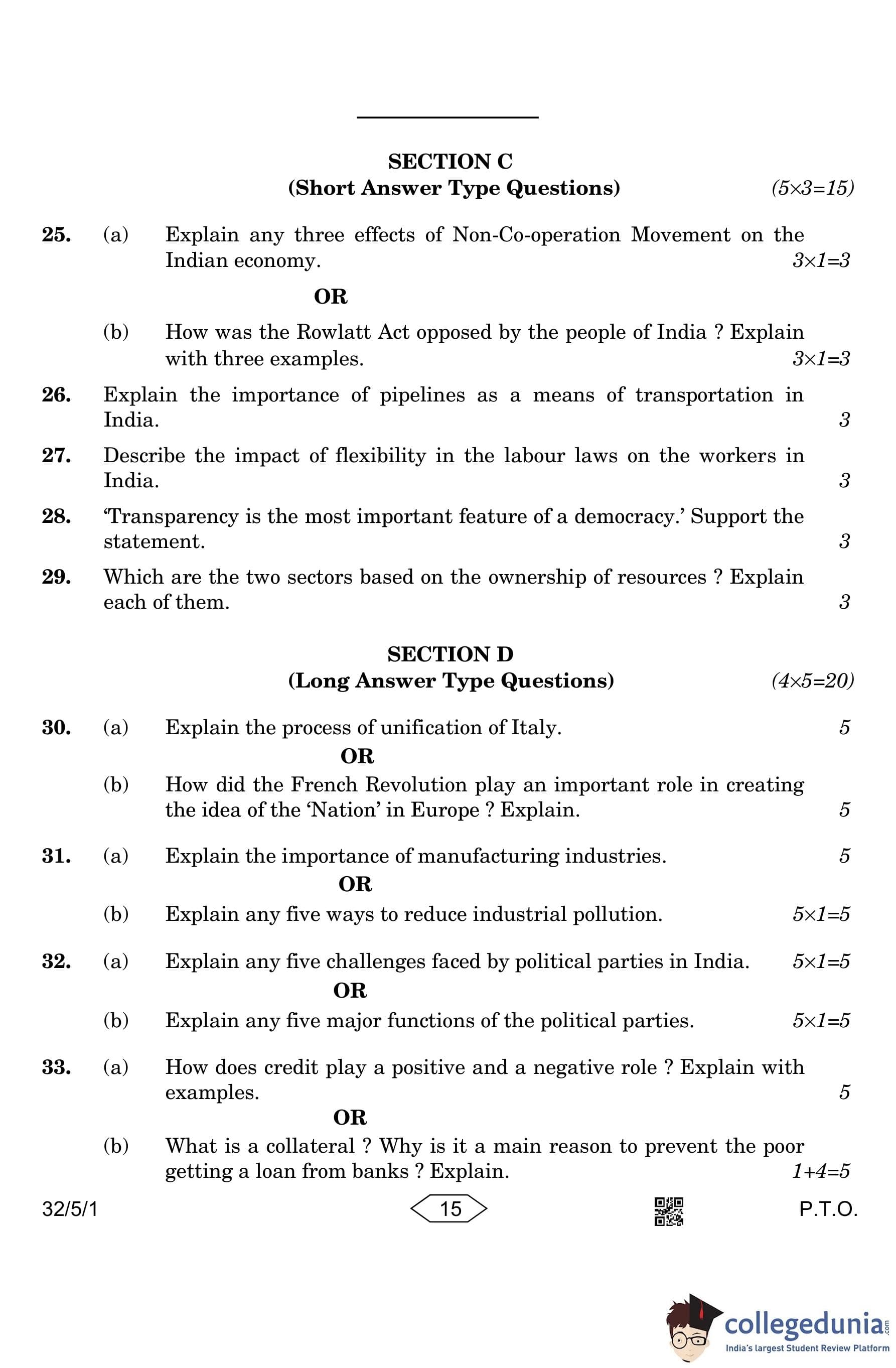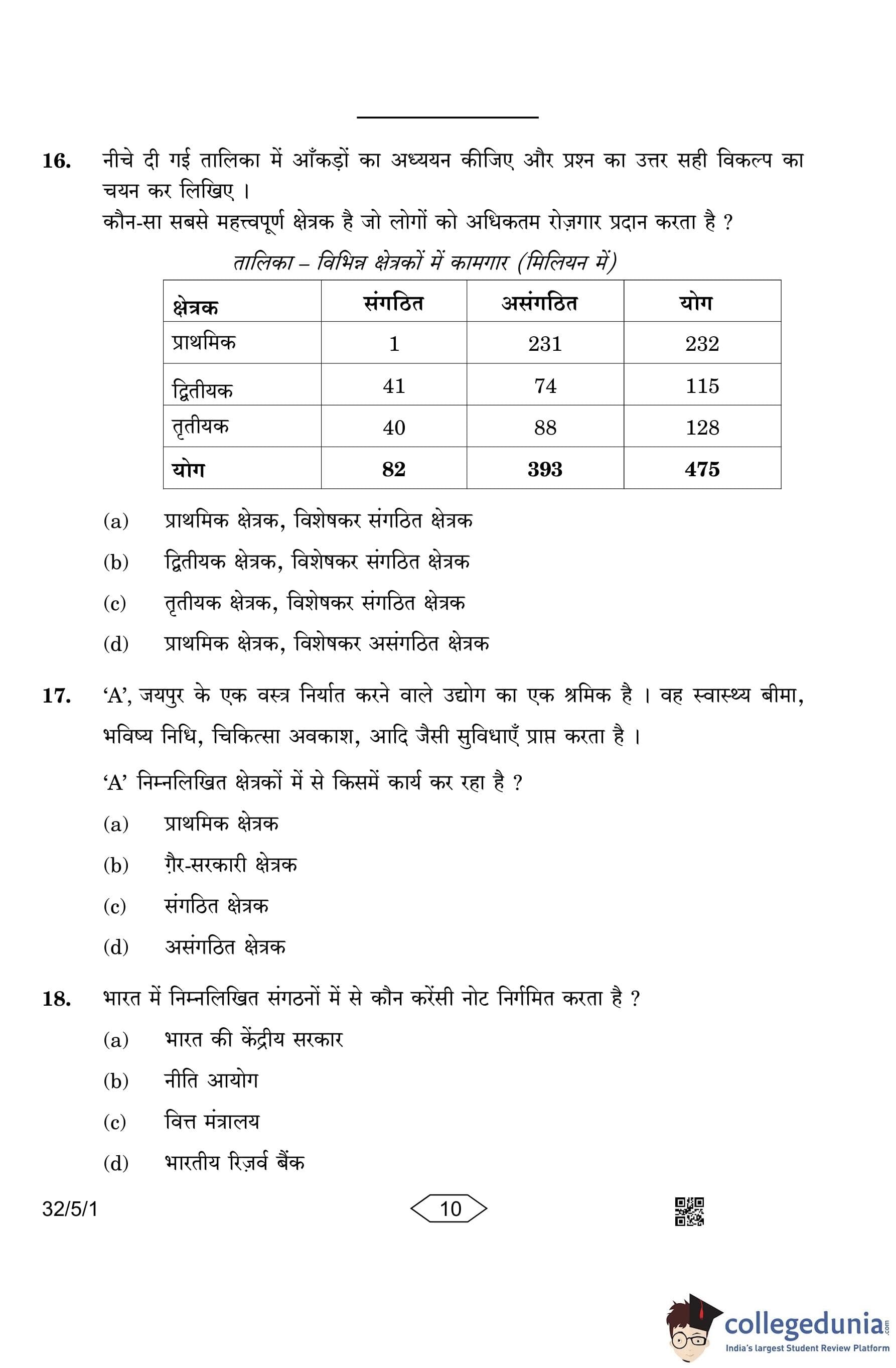 CBSE Class 10 Social Science (Set 1- 32/5/1) Question Paper 2023 with Answer Key
