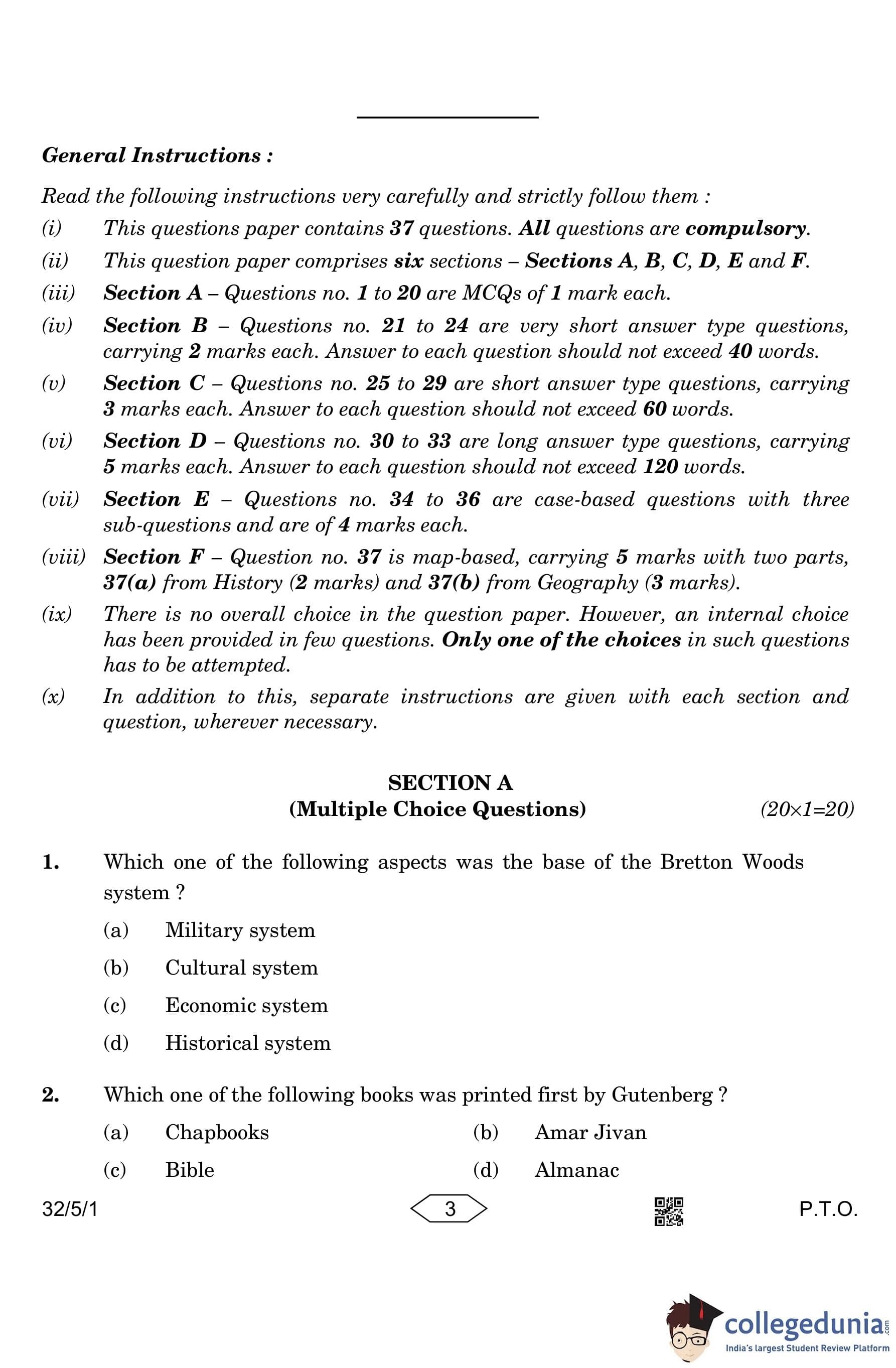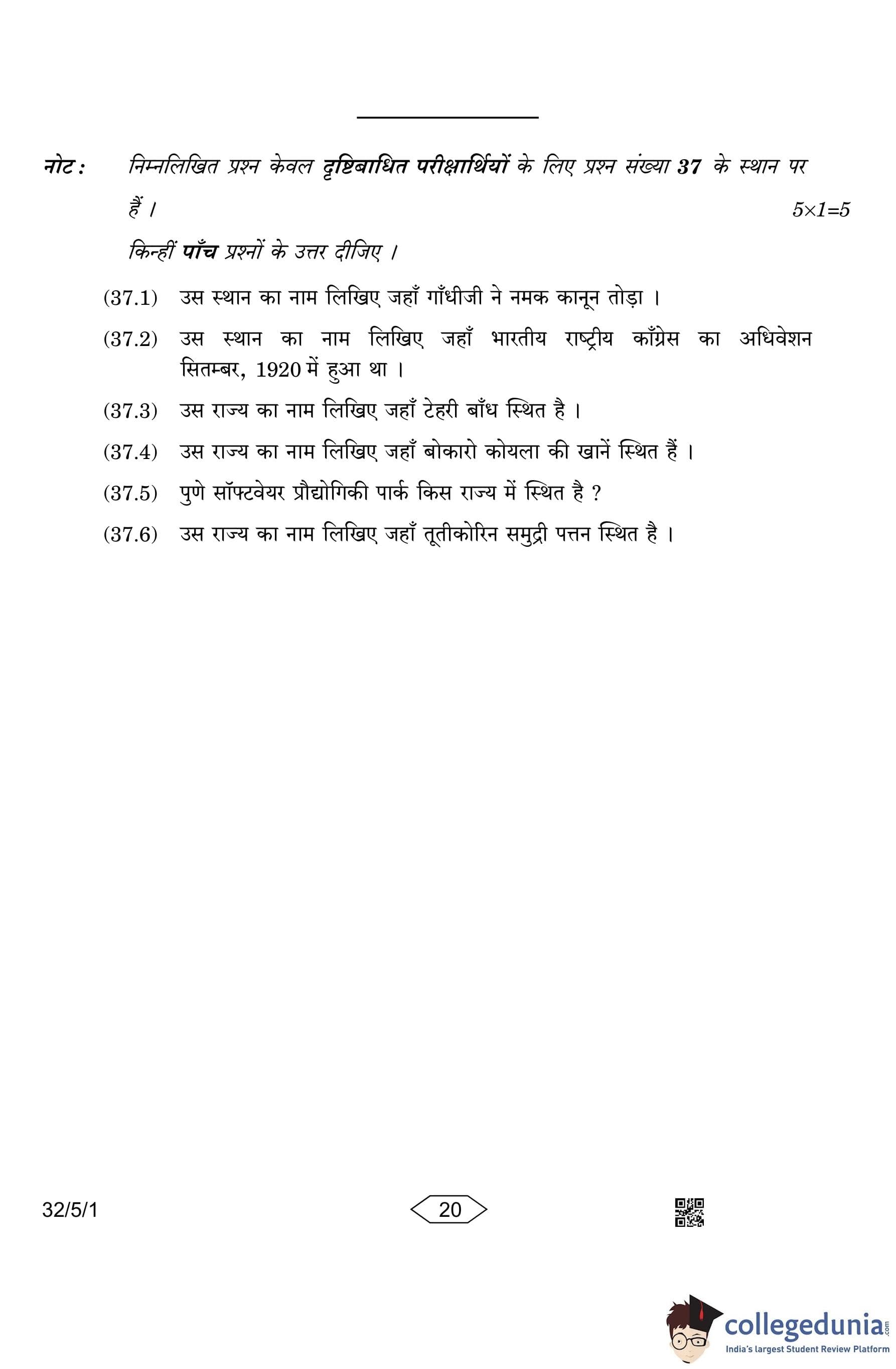 CBSE Class 10 Social Science Question Paper 2023 with Answer Key (Set 1- 32/5/1) is available for download here. The exam was conducted by the Central Board of Secondary Education on March 15, 2023 in the Morning Session 10:30 AM to 1:30 PM. The medium of paper was English & Hindi. According to initial student reaction, the CBSE Class 10 Social Science Paper was rated as Moderate in difficulty level. The question paper comprised a total of 37 questions divided among 6 sections.