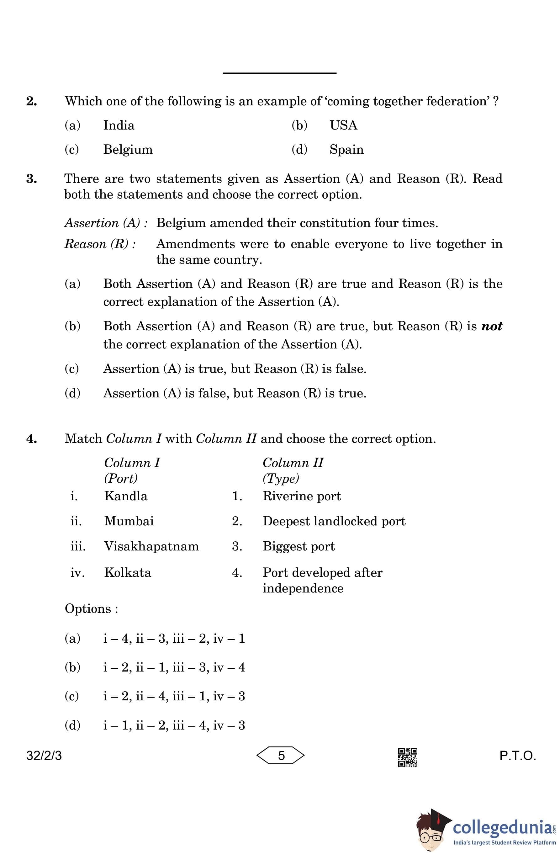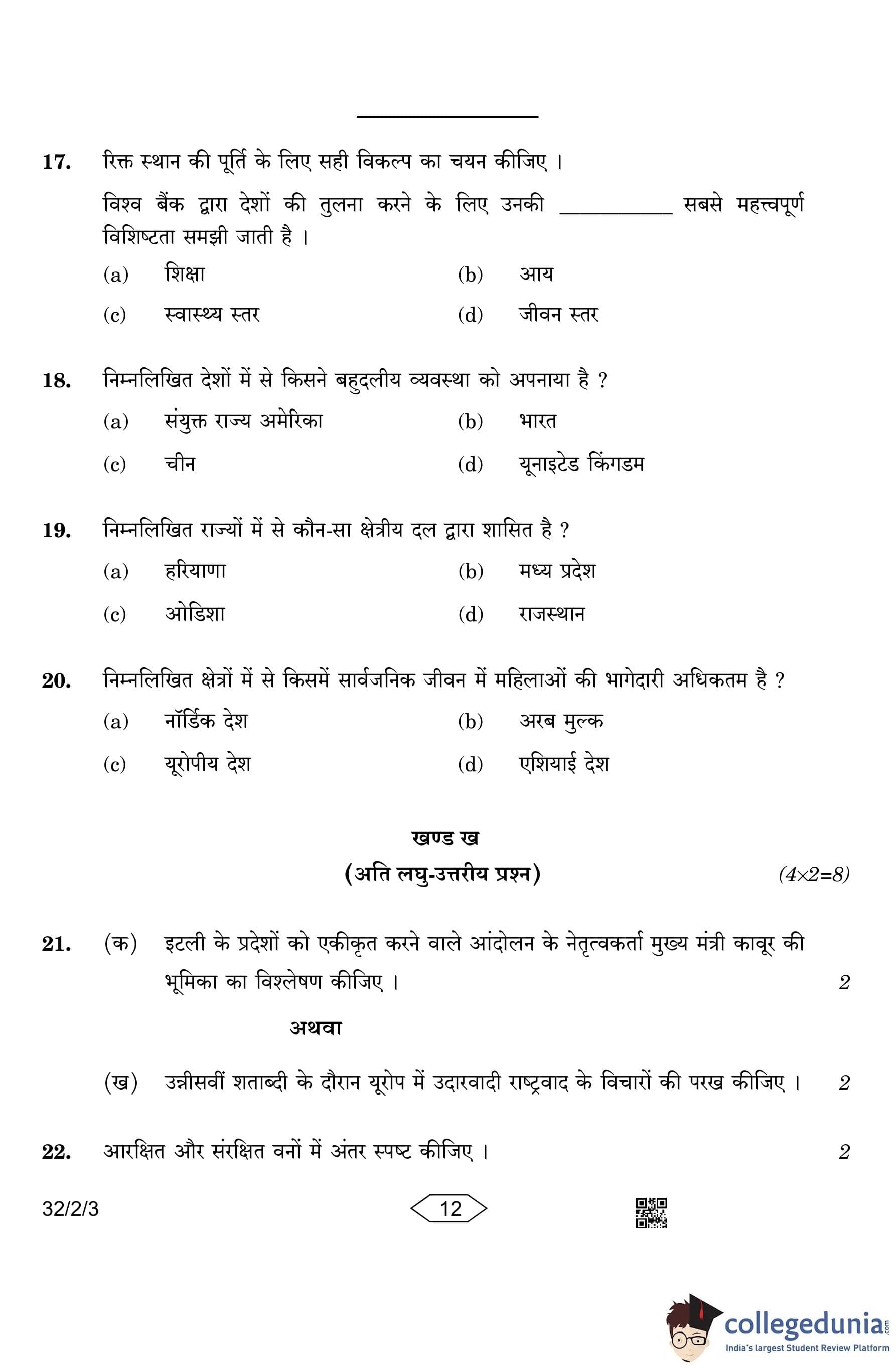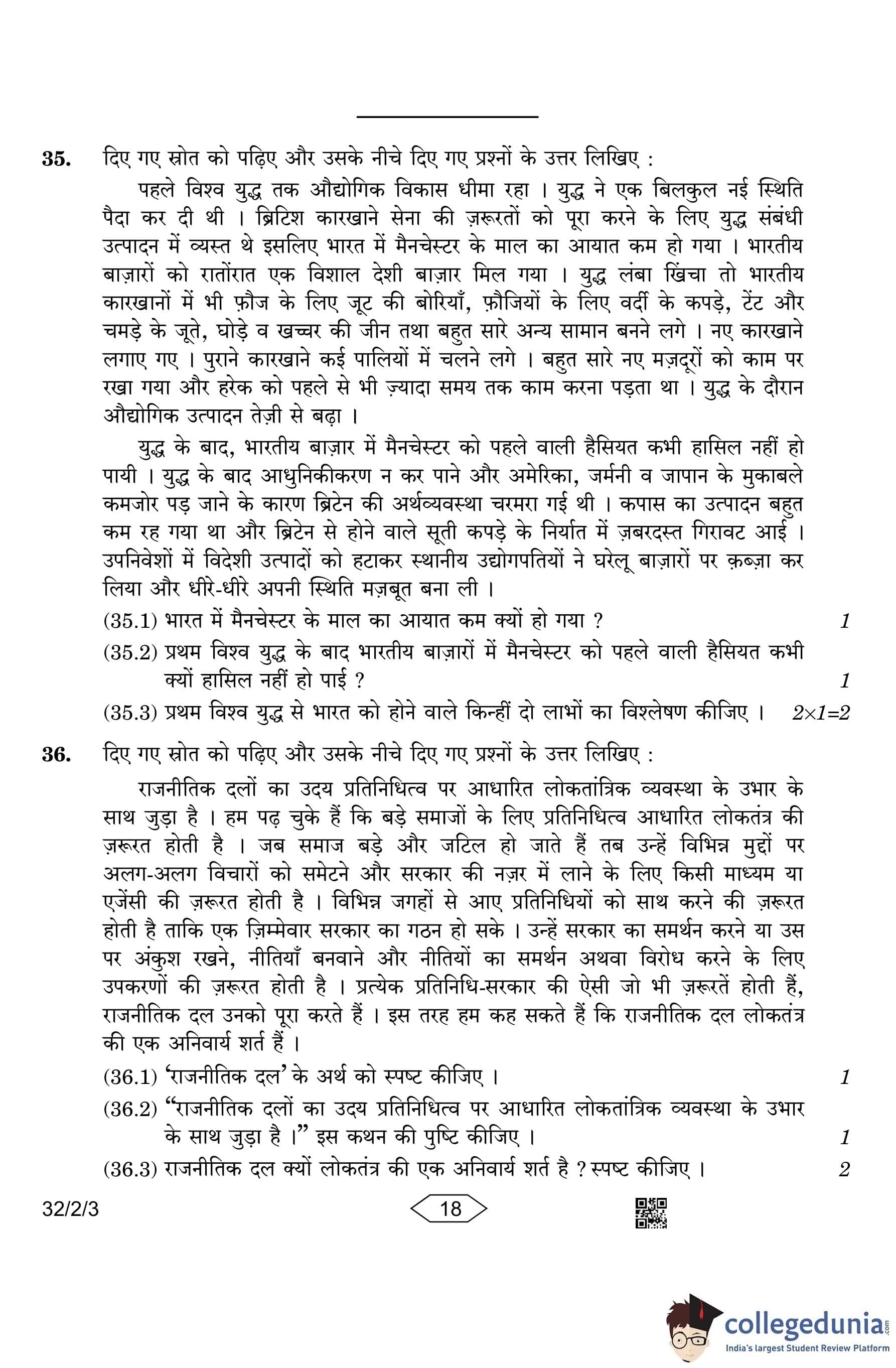 CBSE Class 10 Social Science (Set 3- 32/2/3) Question Paper 2023 with Answer Key